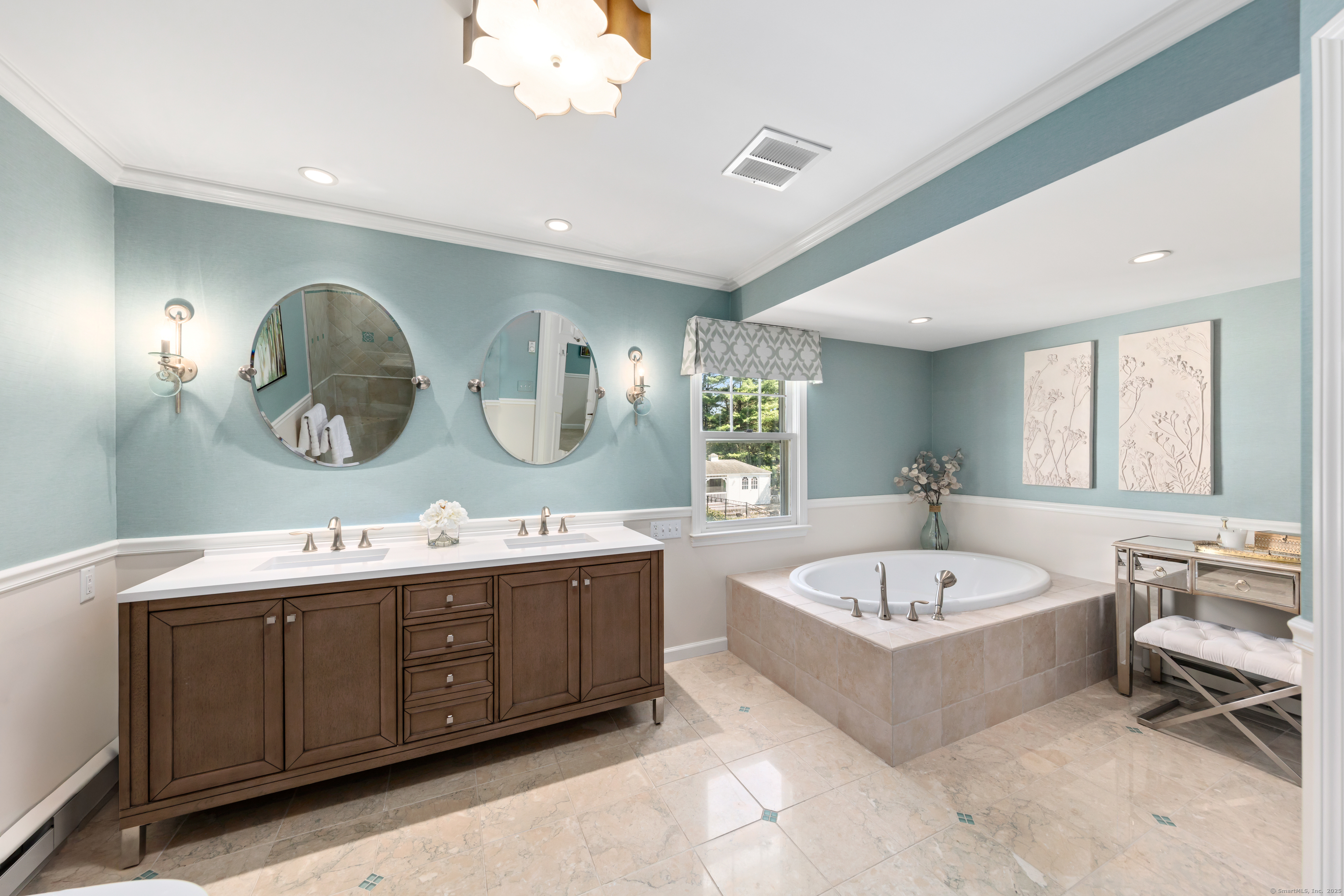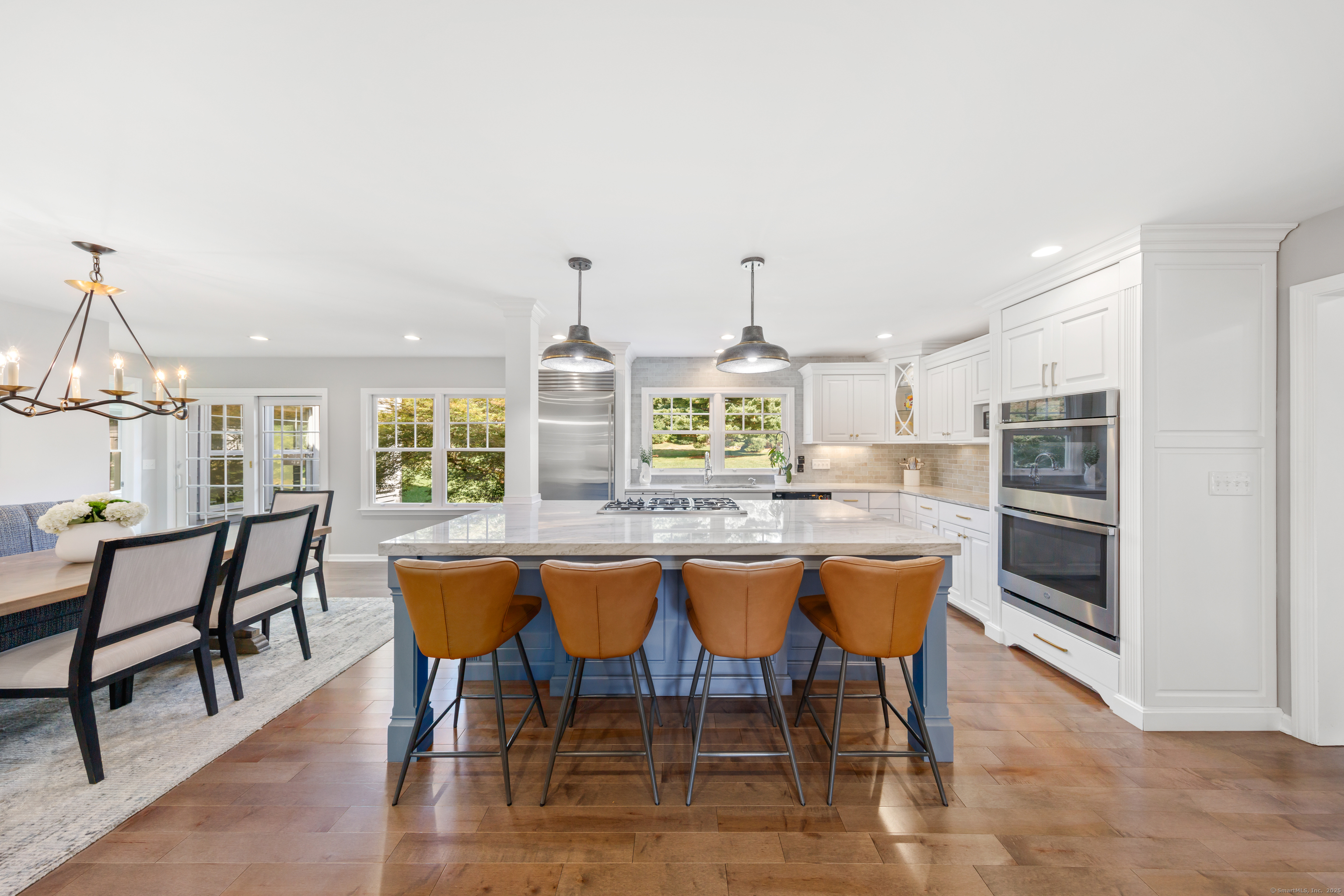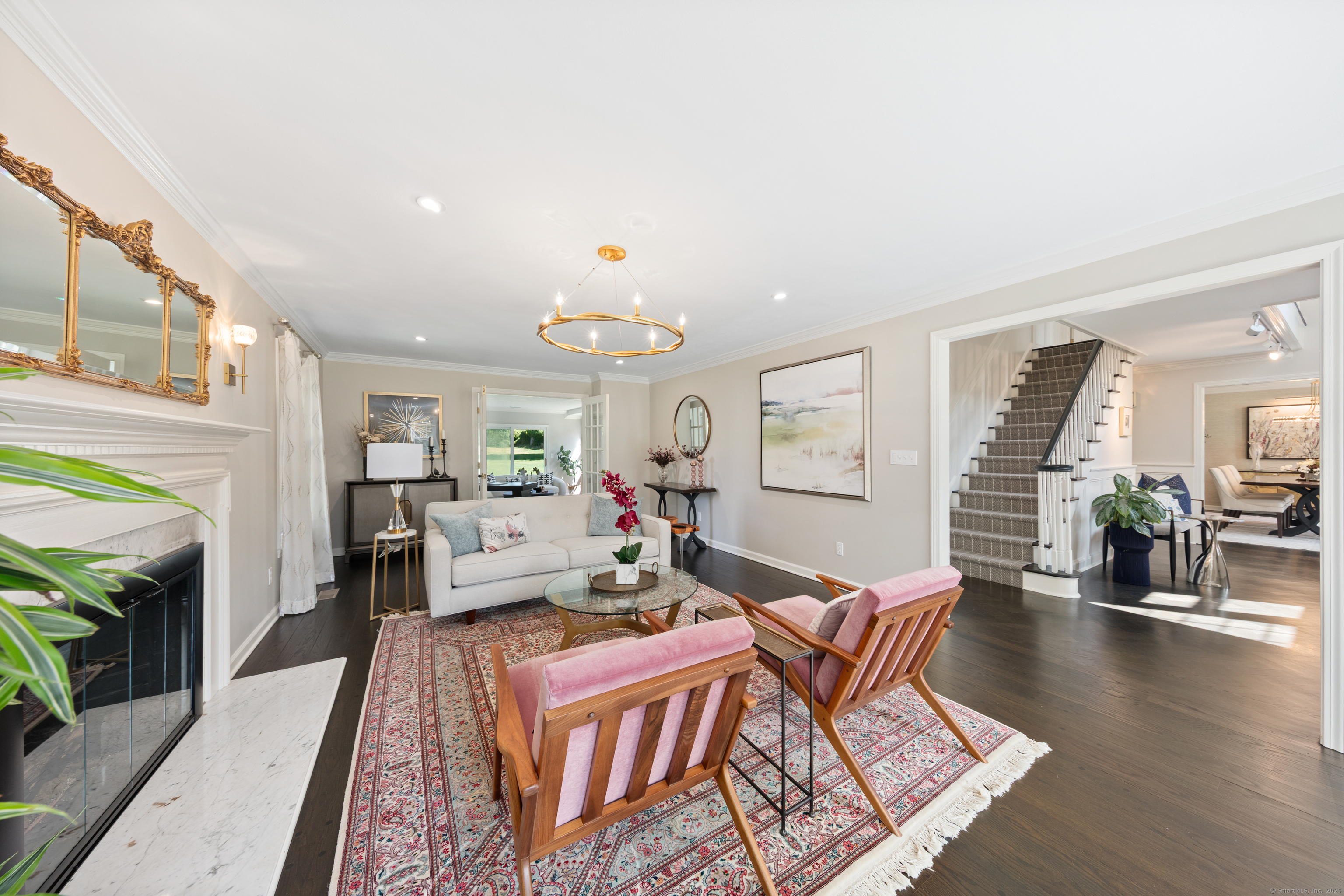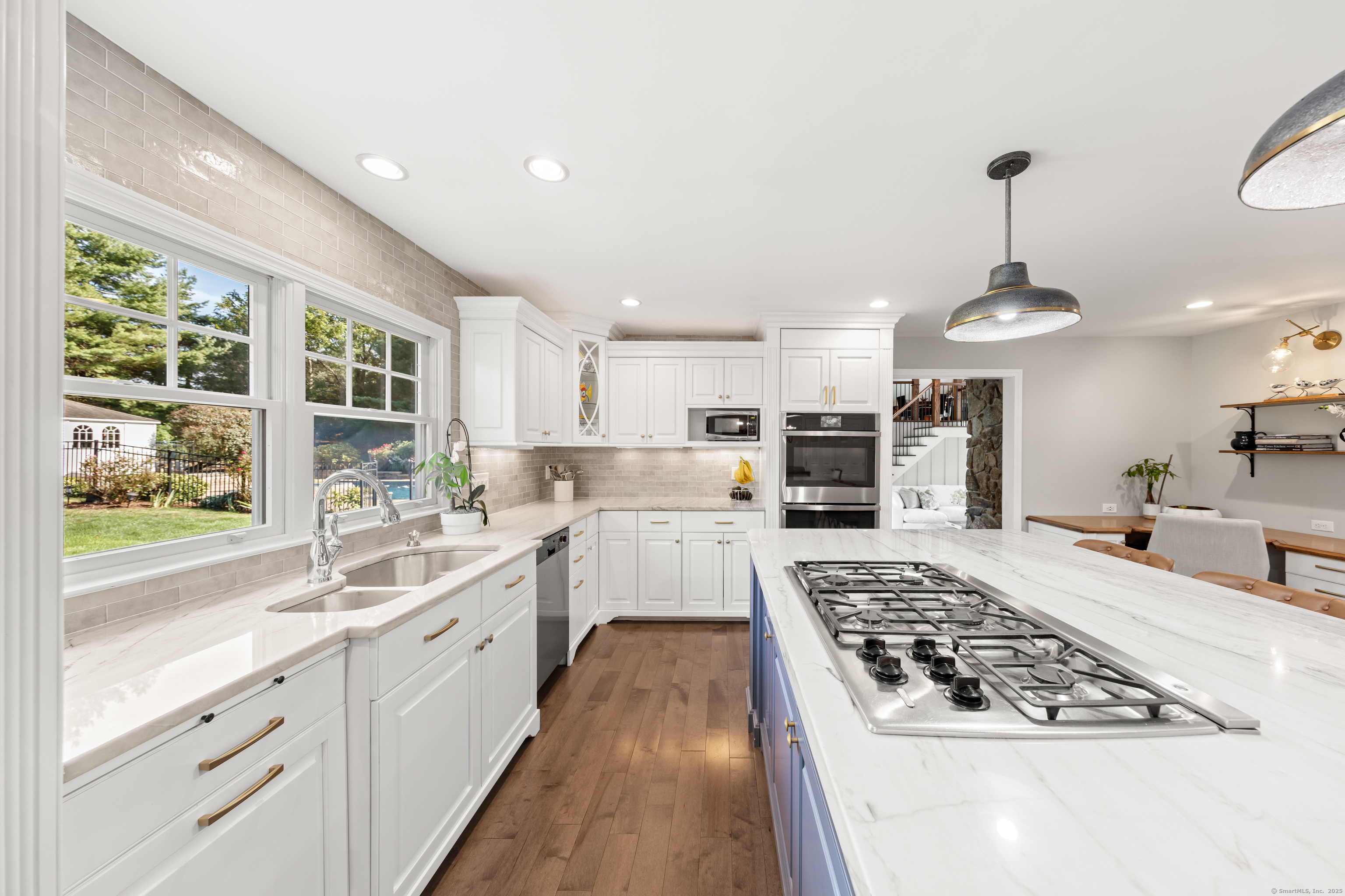 Discover this Connecticut Colonial, now with a dramatic price improvement, nestled on a peaceful cul-de-sac. This gem sits on two acres of meticulously landscaped, flat grounds, free from wetlands, showcasing vibrant gardens, stone walls & bluestone walkways. Indulge in the heated saltwater pool and spa with a waterfall feature, and unwind in the inviting cabana/pool house. A full house generator ensures your peace of mind. Inside, the grand three-story foyer w/herringbone wood floors welcomes you into spacious, open living areas. The family room impresses w/ a vaulted ceiling & a stunning fieldstone fireplace, seamlessly connecting to a den/media room w wet bar. The living room offers elegance with a gas fireplace & French doors leading to a versatile office/den space. The modern kitchen, featuring a 9 ft quartz island, built-in bar & wine fridge, overlooks a breathtakingly beautiful backyard. Upstairs, the primary suite is a retreat, complete with a spa bath and cozy fireplace. Additional bedrooms and the potential for a fourth bath enhance the home's functionality. With a home office, multiple entertaining areas, and a Tesla charger, this residence offers both style and convenience. Truly the best value in Fairfield!