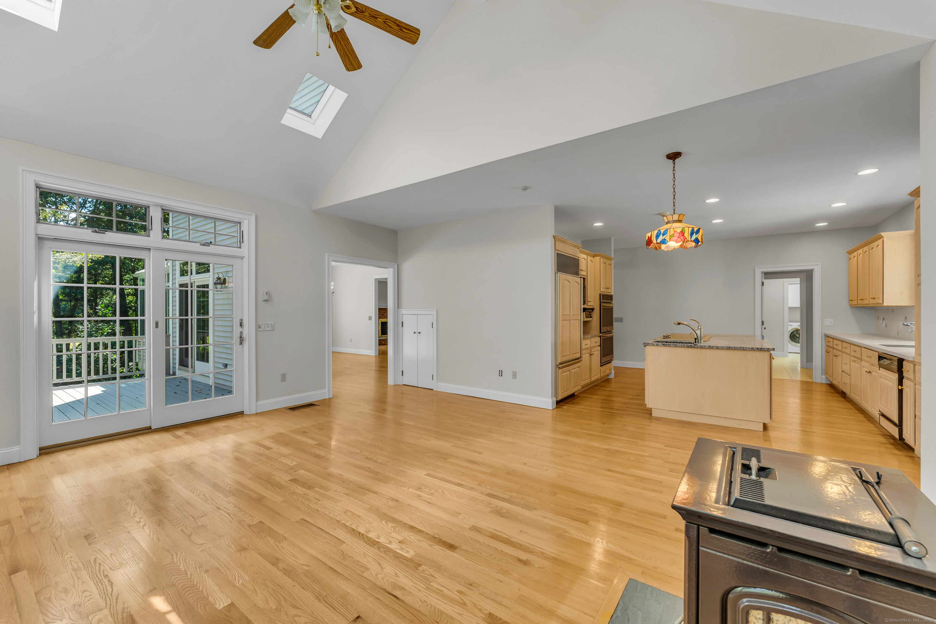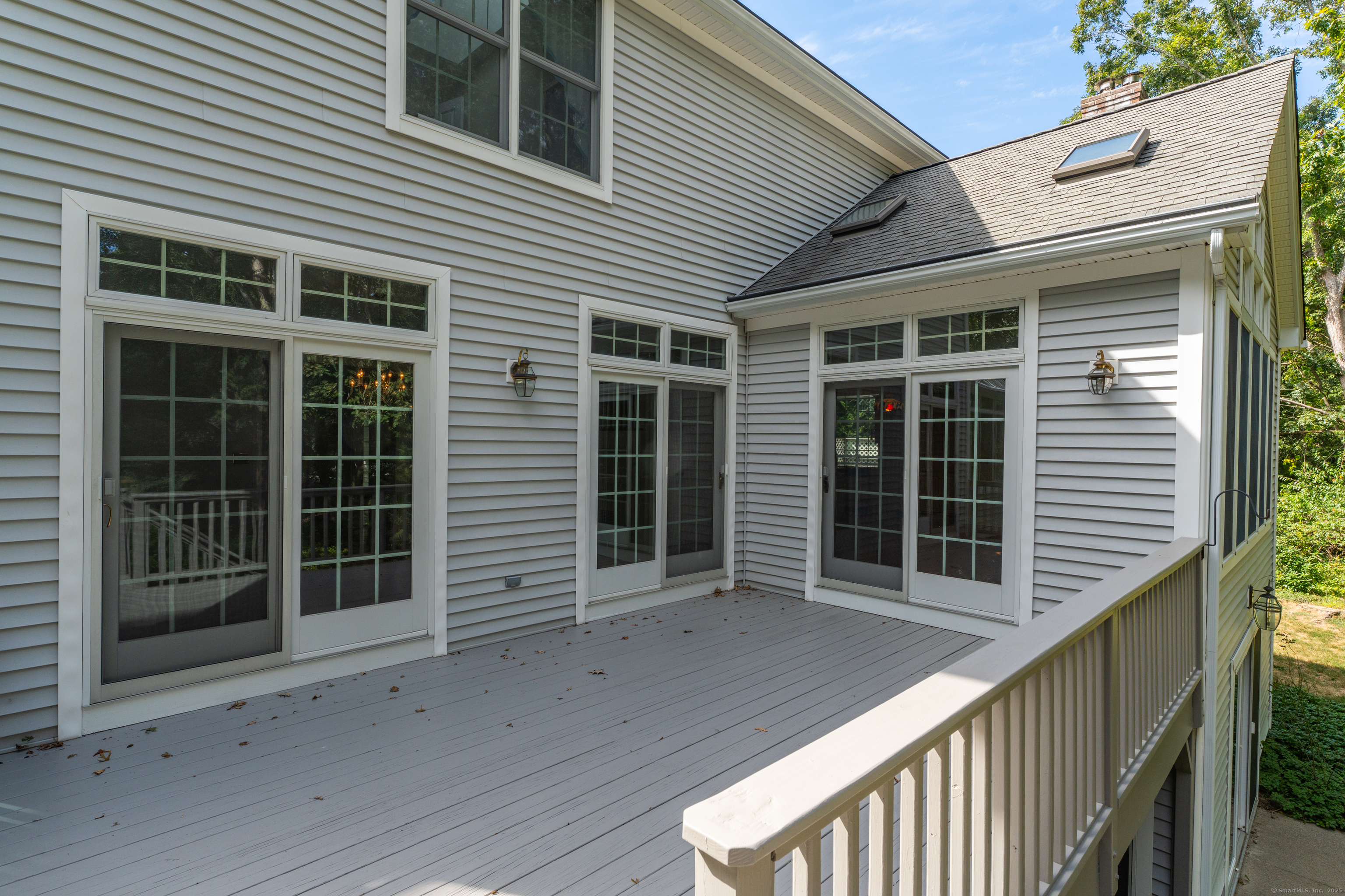 Welcome to 22 Riverdale Landing, this custom-built New England home combines timeless charm with modern comfort. Set on a serene, park-like landscape on the outer banks of Four Mile River and belonging to neighboring Oakridge Forest Association with private beach rights. Pride of ownership is apparent inside and out of this meticulously maintained property. Step inside to an airy space that flows seamlessly from room to room. The freshly painted first floor features gleaming hardwood floors and an abundance of windows. A classic brick fireplace is the focal point of the living room, accented with tray ceilings, while the solarium provides your very own sanctuary. A gourmet kitchen anchors the heart of the home and opens to a vaulted ceiling room with pellet stove, overlooking the backyard and with deck access. The front den/office with full bath could be converted into a first floor primary or guest suite. Follow the central staircase up to the bedrooms including a spacious primary with en-suite and adjoining room with balcony. The partially finished walk-out basement with full bath & woodstove provides great bonus space. 3 bedrooms, 4.1 baths and over 4,400 square feet in total. Other highlights include an unfinished walk-up attic for storage or future expansion, whole-house generator and nearby marina & boat launch. Conveniently located midway between NYC & Boston and minutes to downtown Old Lyme & Niantic Villages, this home offers privacy and lifestyle in equal measures.