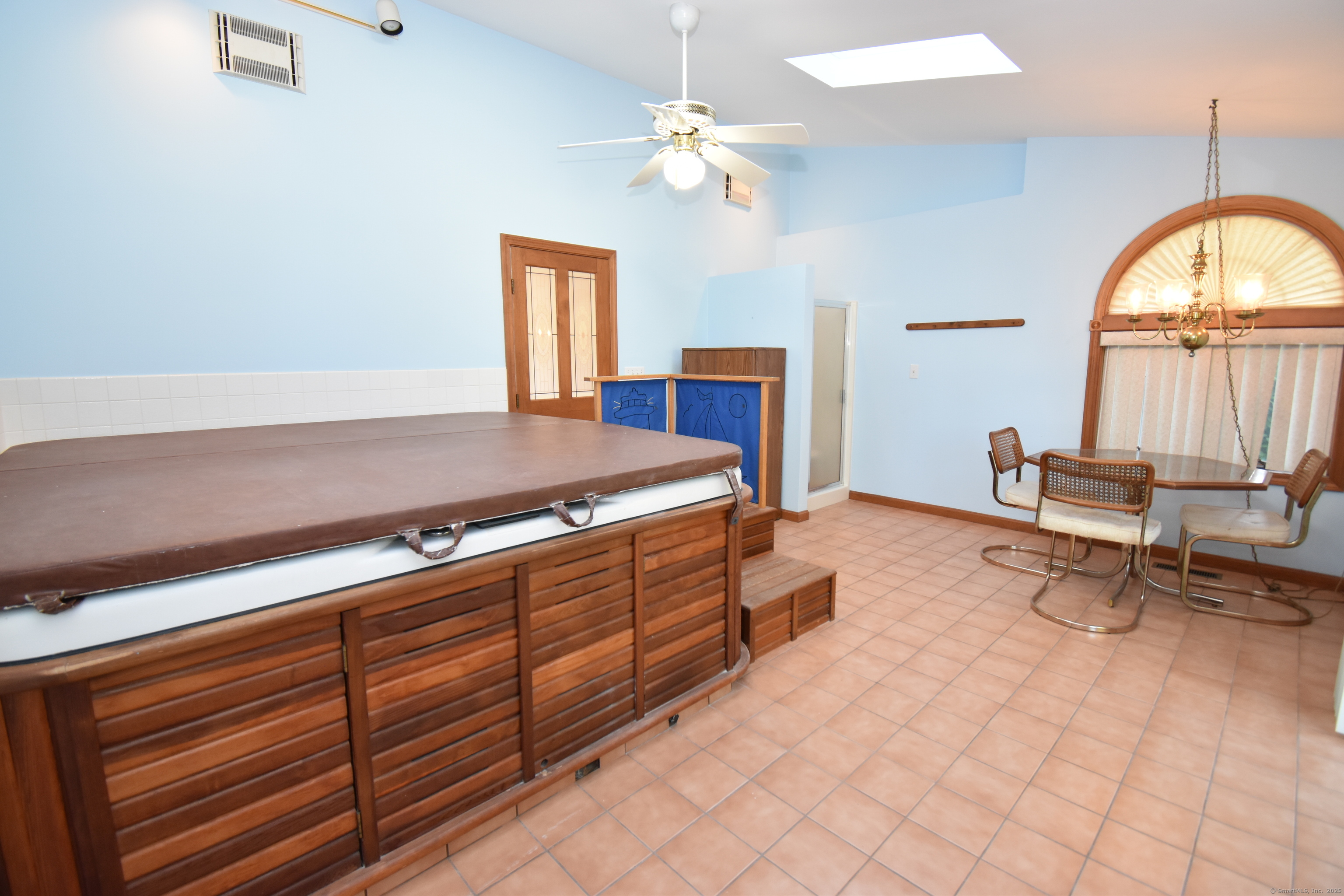Back on the market due to buyer's health issues. Welcome to this expanded Cape, perfectly situated in the desirable Town Plot neighborhood. Offering 4 to 5 bedrooms and multiple living spaces, this home is ideal for multi-generational living, or those who love to entertain. Step inside to discover a warm and inviting layout, featuring a front-to-back living and dining room, both enhanced by sun-filled bay windows and a table to seat 12 guests. The cozy main-floor family room is centered around a charming wood-burning fireplace-perfect for chilly evenings. The versatile office can easily serve as a 5th bedroom, and the full bath and kitchen add to the main level. But the real standout? The spa room, featuring a luxurious 8-person hot tub-a perfect retreat for relaxation or casual game nights at the card table. From here, step through sliding doors to your own private backyard oasis. Enjoy lush perennial gardens, a covered patio, open deck, storage shed with arbor, and a permanent basketball hoop-ideal for friendly games or solo practice. Upstairs, you'll find four spacious bedrooms with hardwood floors, built-ins, a convenient half bath, and a large hall closet for additional storage. The finished lower level expands your living space with a summer kitchen, laundry area, dining space, and a cozy family room complete with a bar-ideal for entertaining.