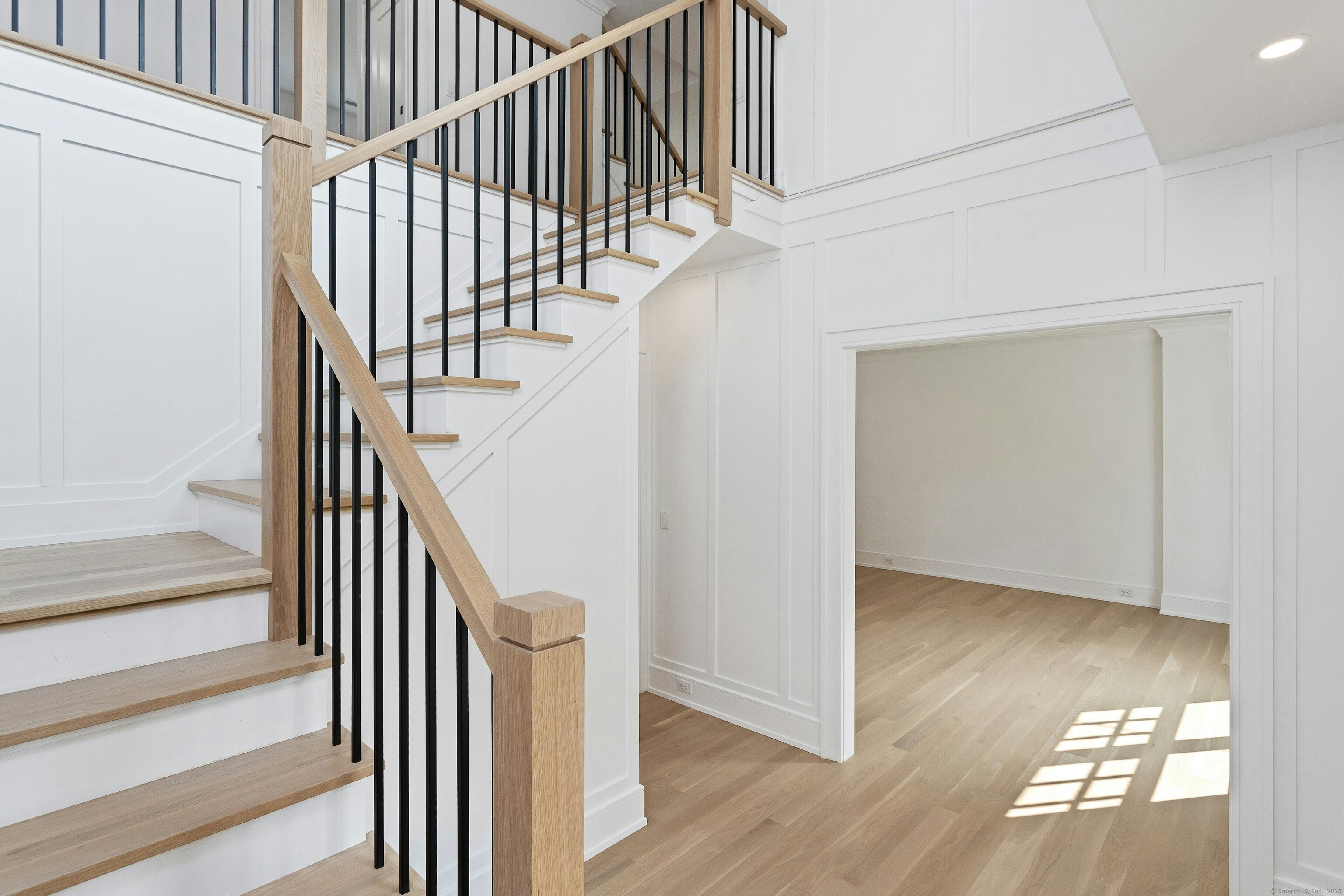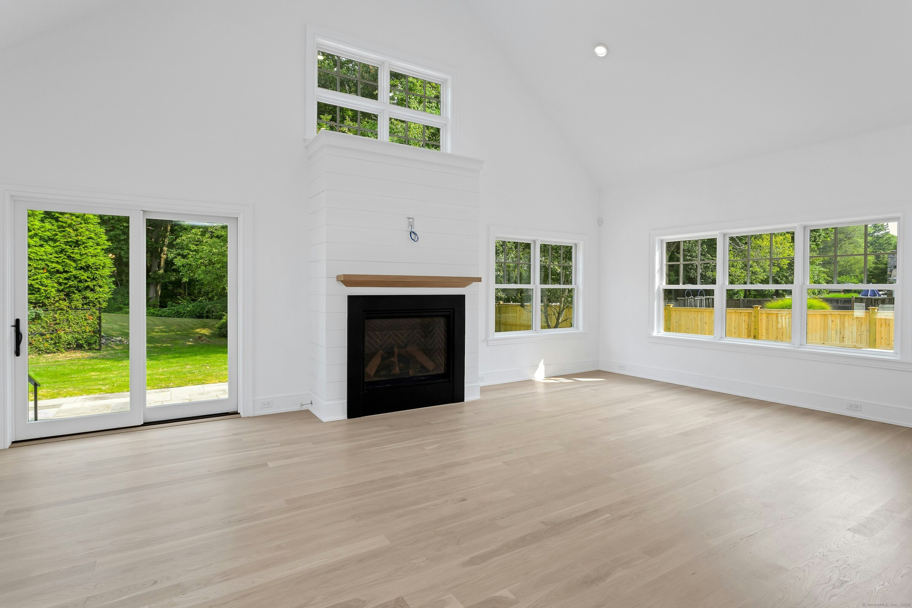 Spectacular, luxury new construction nestled in one of Darien's most lovely neighborhoods. Thoughtfully designed and impeccably crafted, this home combines timeless sophistication with modern comforts. A dramatic double-height paneled foyer welcomes you inside, leading to a soaring vaulted ceilinged living room, which is anchored by a refined shiplapped gas fireplace. The space opens seamlessly to a spacious stone patio and level yard, creating the perfect setting for elegant indoor-outdoor entertaining. The gourmet kitchen is a true centerpiece, featuring Thermador appliances, exquisite quartz countertops, custom cabinetry, and a sunlit eating area. The serene primary suite offers a generous walk-in closet and a spa-inspired bath complete with a soaking tub, glass-enclosed shower, and dual-sink vanity. ADDITIONALLY, there is an option to use the second floor suite as your primary which includes its own private balcony. The 3rd floor has an expansive extra room ready to make your own as a gym or playroom. Convenient mudroom off the 2-car garage features a special touch for EV owners: 220V service. Attention to detail and fine millwork are showcased in every corner. Enjoy neighborhood block parties and walkability to the Middlesex Club and the Holmes school! This residence presents an extraordinary opportunity to own a beautifully conceived new home in a truly coveted setting!
