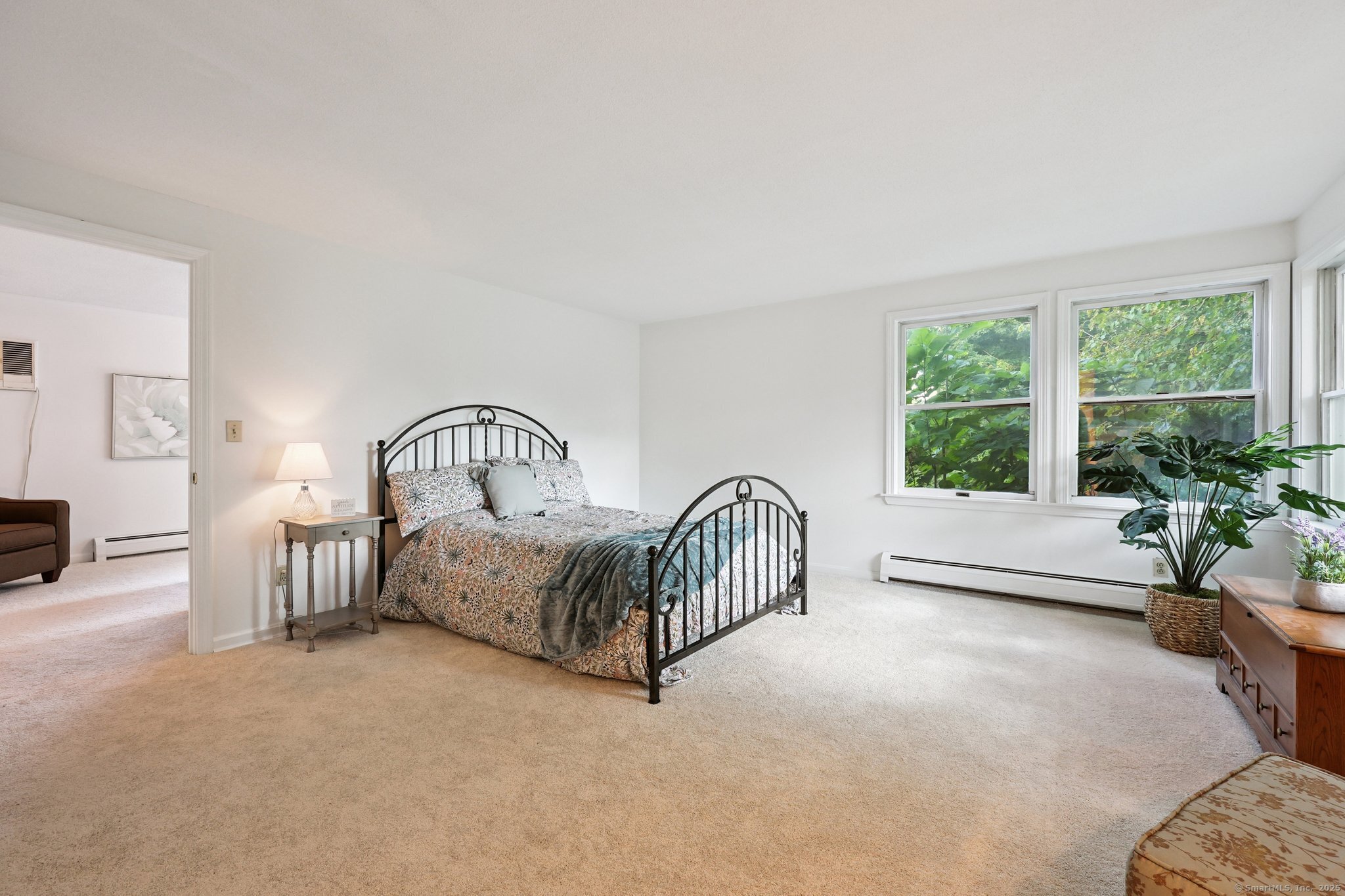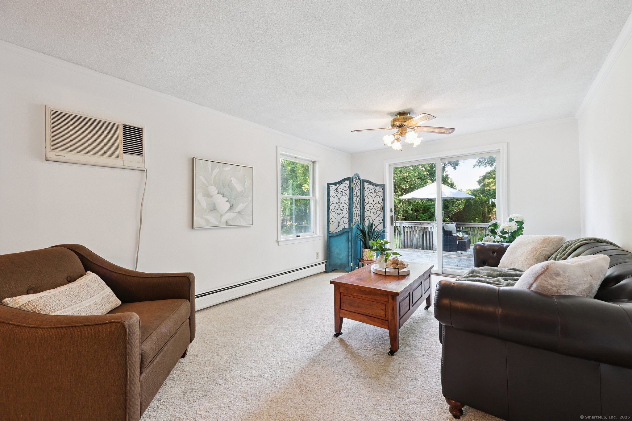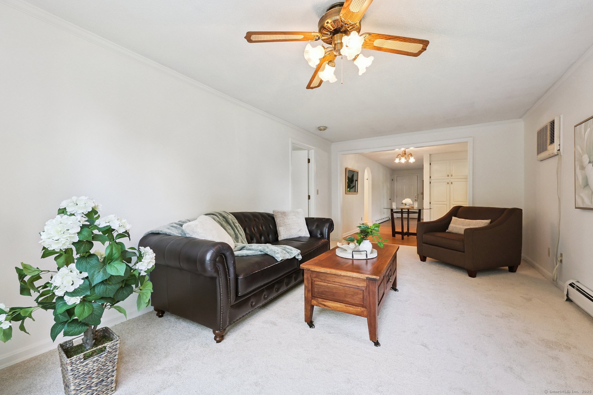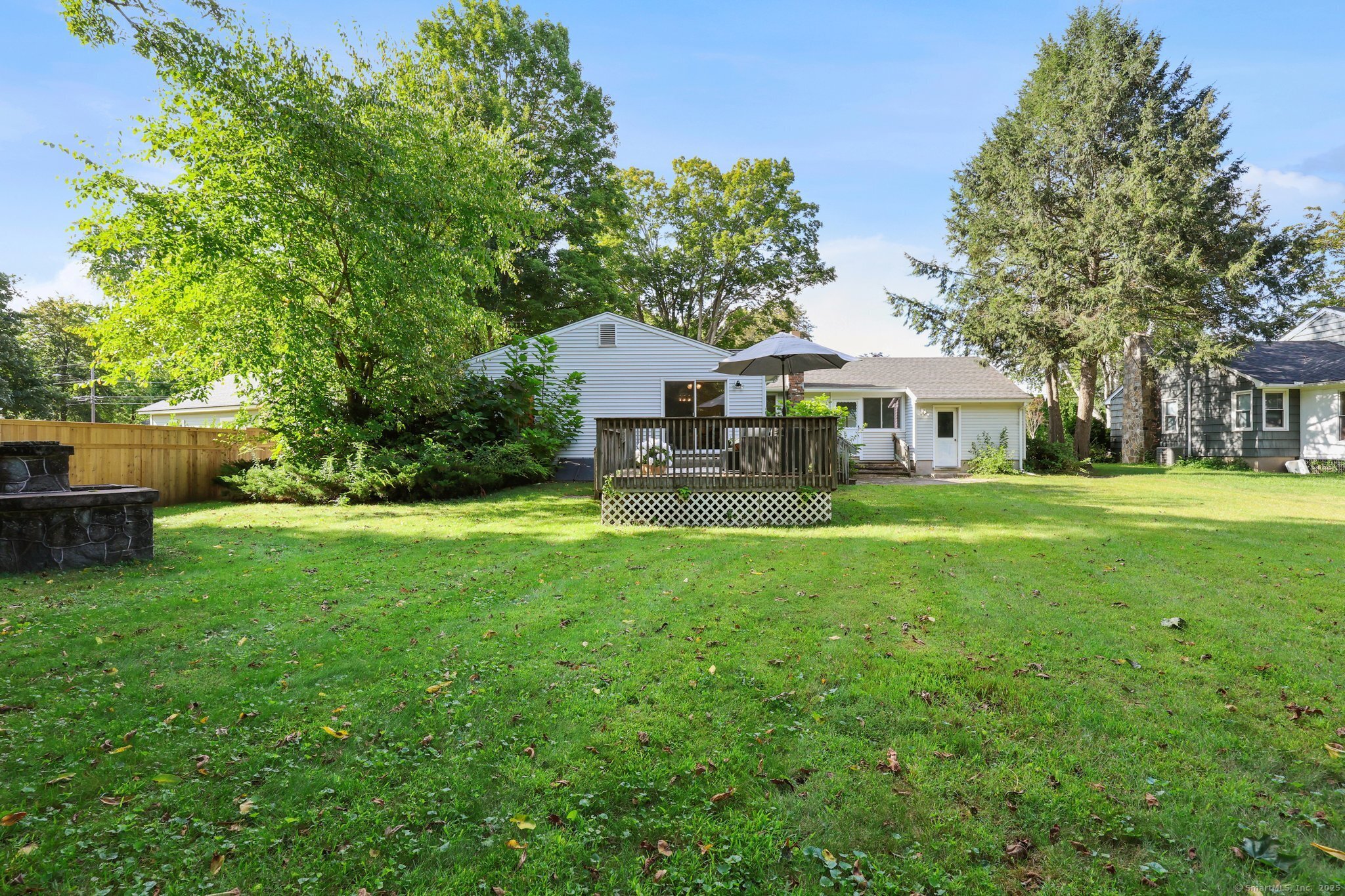 Ease of living. Shopping, parks, and recreation oh my! Enfield has everything you could ask for in a community. Sidewalks for safe walking, all the shops you can dream of, recreation and activities at The Enfield Annex. Indoor and outdoor sports, parks, aquatic activities at indoor pool, and classes for both adults and youth. This is a town that knows how to play together whether it is yoga, volleyball, beginner or advanced pickleball lessons, just to name a few for the adults. There are even more activities for youth. This home offers first floor living with outdoor stone fireplace and sliding glass doors leading to the deck for relaxation and entertaining. The flat open yard is your canvas. Two spacious bedrooms. Primary bedroom has ensuite bathroom. Galley style kitchen. A mix of hardwood and new wall to wall carpeting makes this home move in ready. The basement is expansive with a new dedicated Ct Basement SaniDry dehumidifier. Home is also equipped with spacious enclosed breezeway for inclement weather abutting single car attached garage. Come live the simple life!