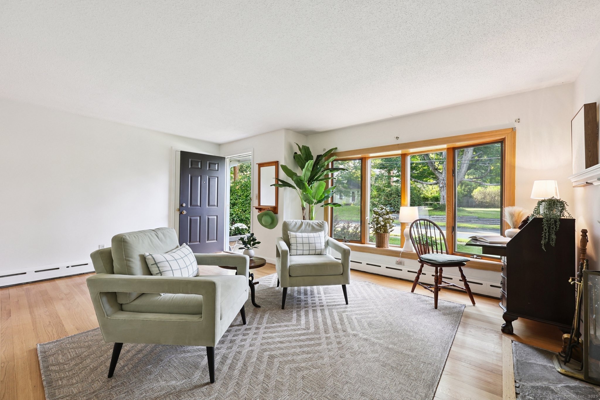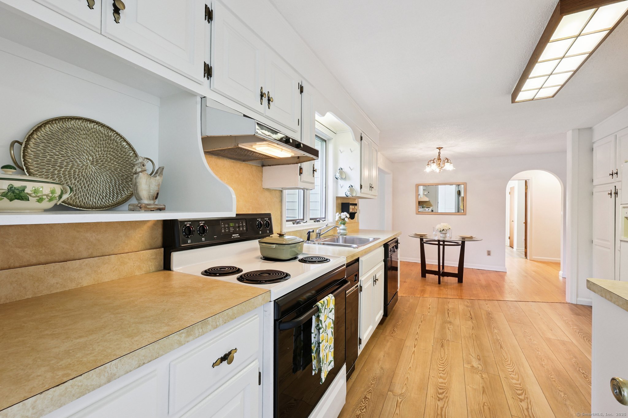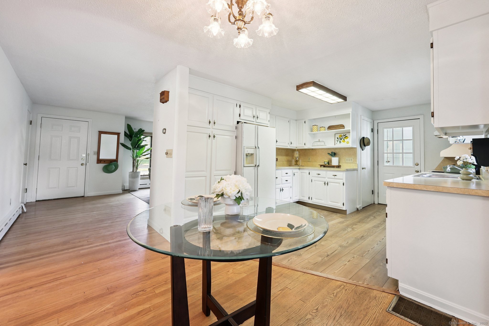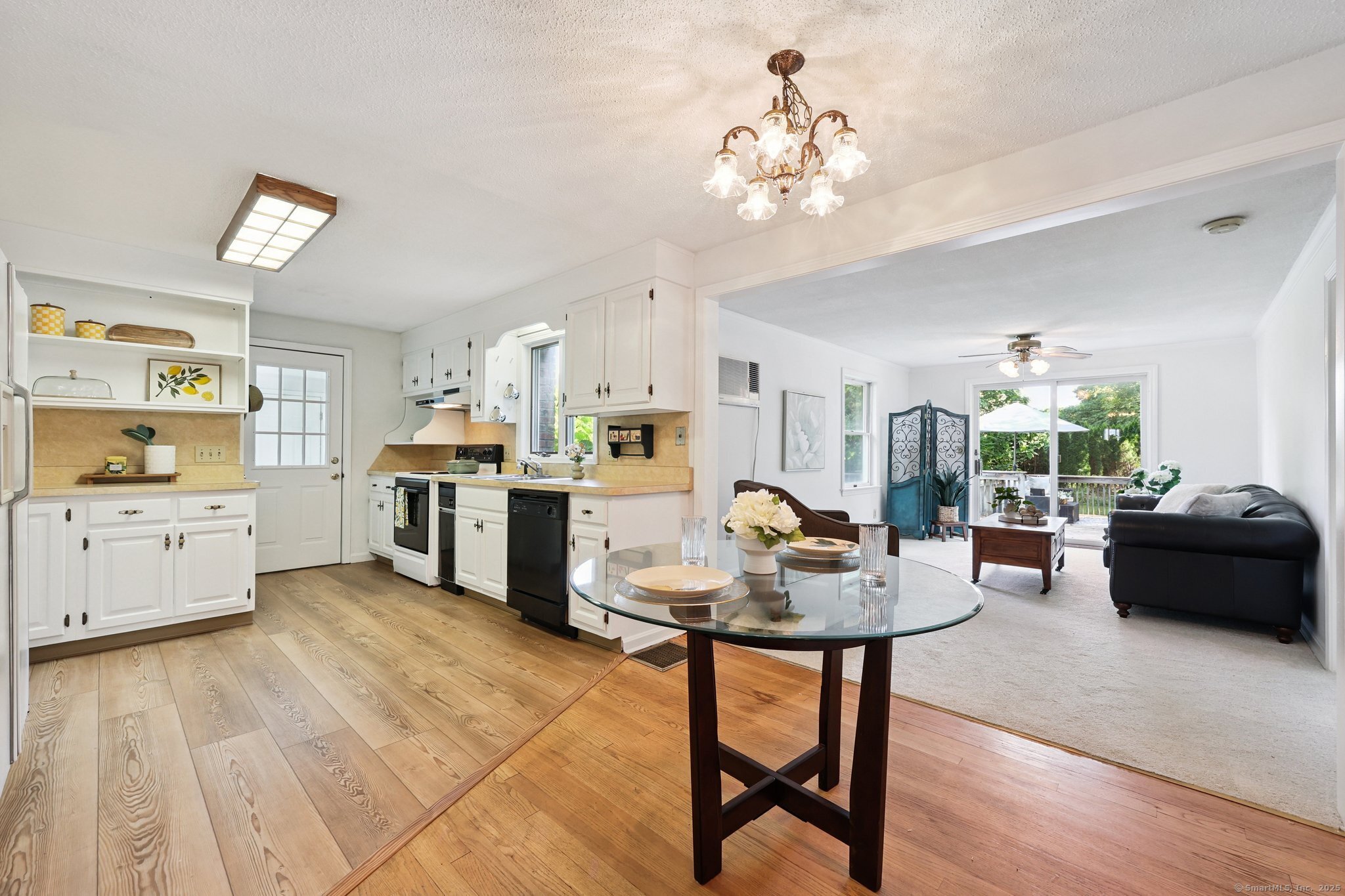 Ease of living. Shopping, parks, and recreation oh my! Enfield has everything you could ask for in a community. Sidewalks for safe walking, all the shops you can dream of, recreation and activities at The Enfield Annex. Indoor and outdoor sports, parks, aquatic activities at indoor pool, and classes for both adults and youth. This is a town that knows how to play together whether it is yoga, volleyball, beginner or advanced pickleball lessons, just to name a few for the adults. There are even more activities for youth. This home offers first floor living with outdoor stone fireplace and sliding glass doors leading to the deck for relaxation and entertaining. The flat open yard is your canvas. Two spacious bedrooms. Primary bedroom has ensuite bathroom. Galley style kitchen. A mix of hardwood and new wall to wall carpeting makes this home move in ready. The basement is expansive with a new dedicated Ct Basement SaniDry dehumidifier. Home is also equipped with spacious enclosed breezeway for inclement weather abutting single car attached garage. Come live the simple life!