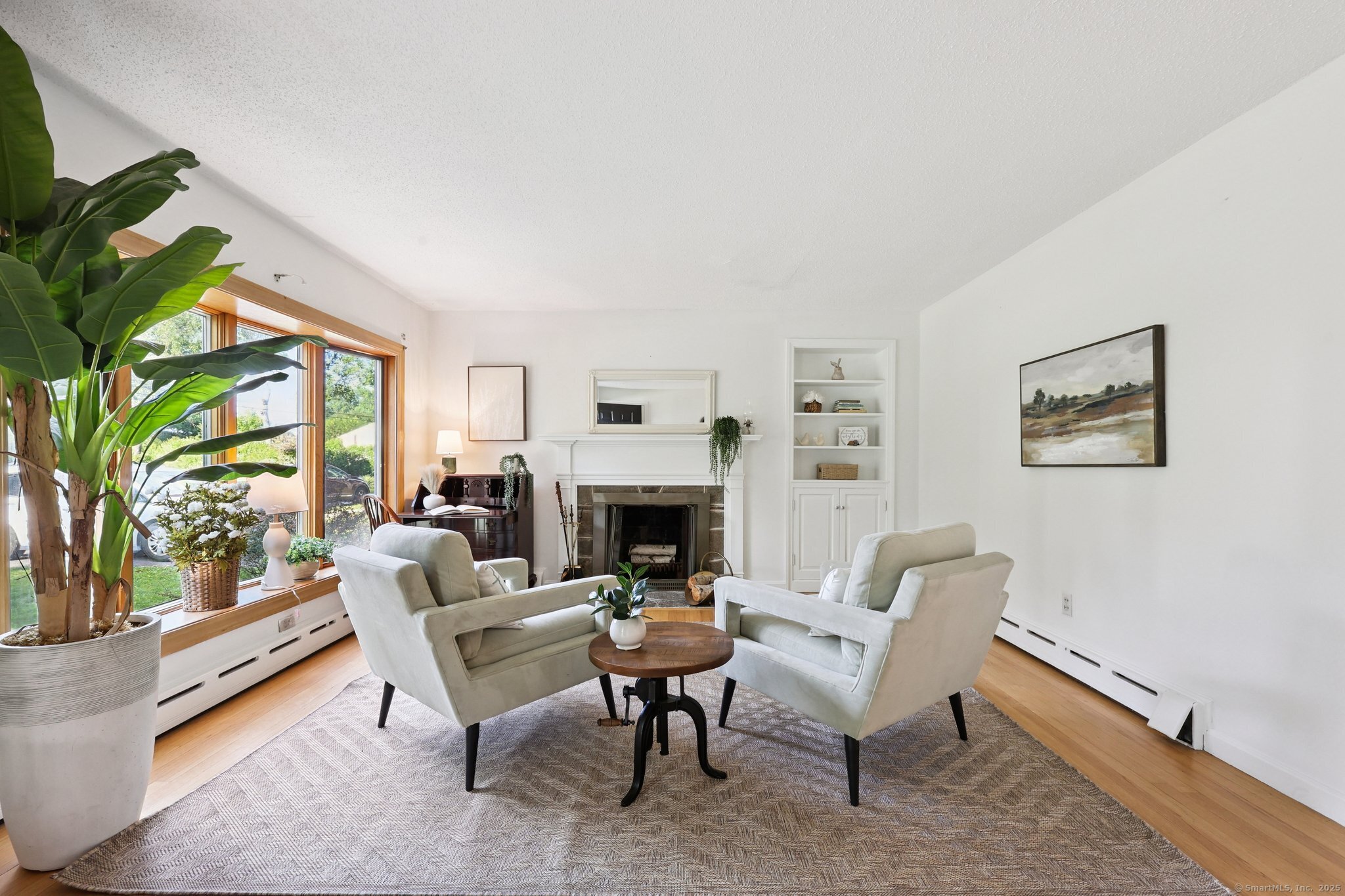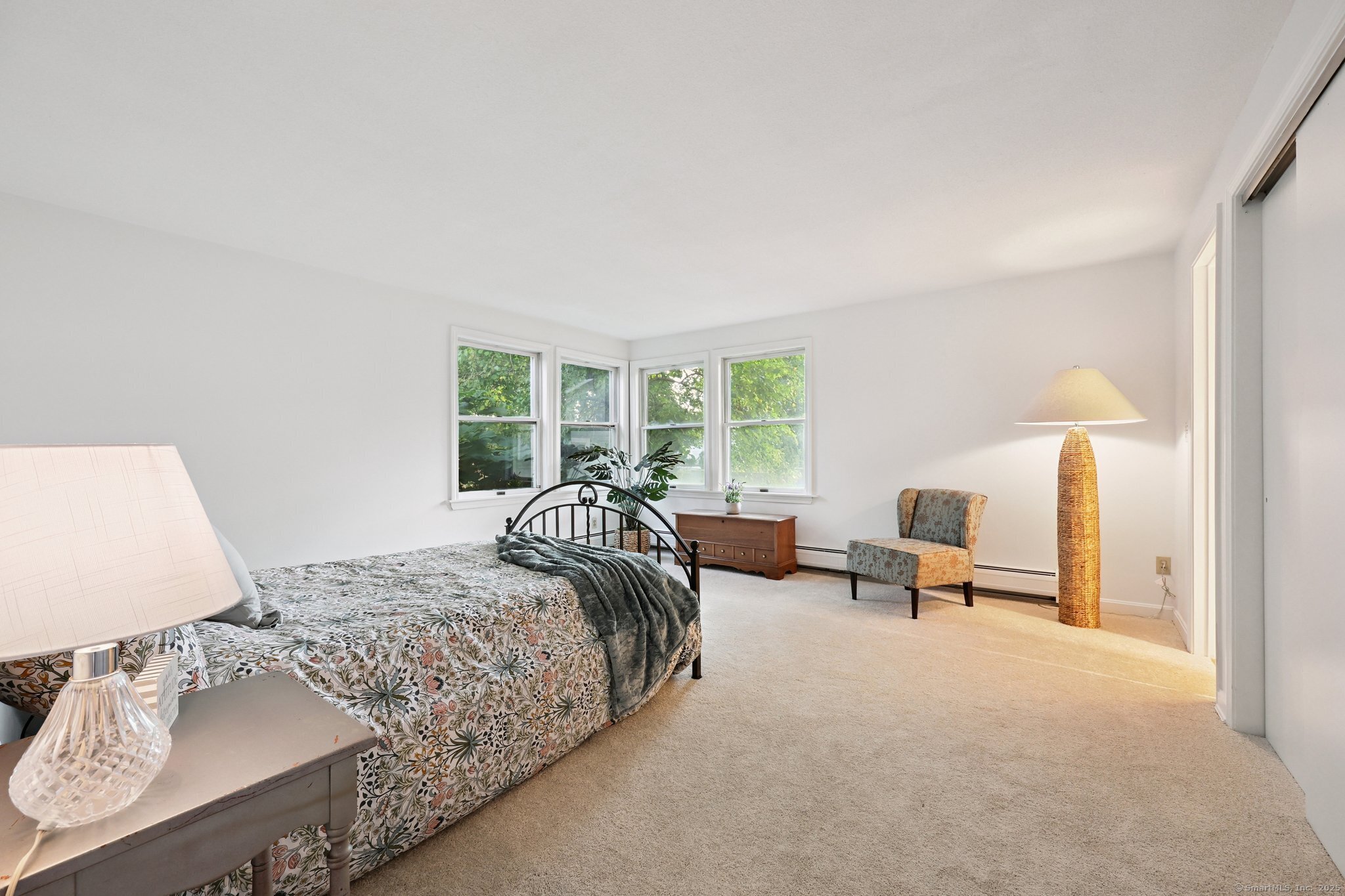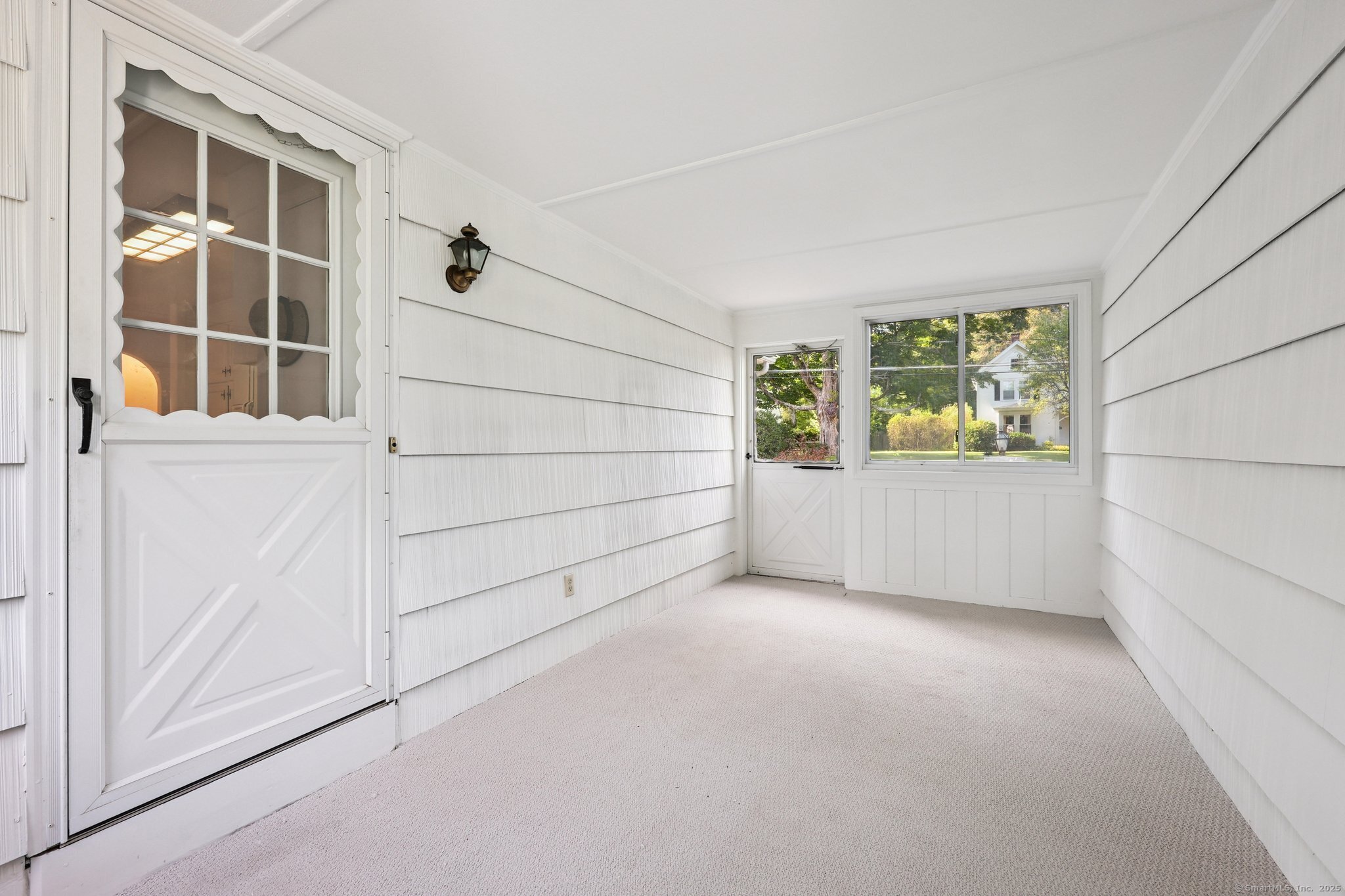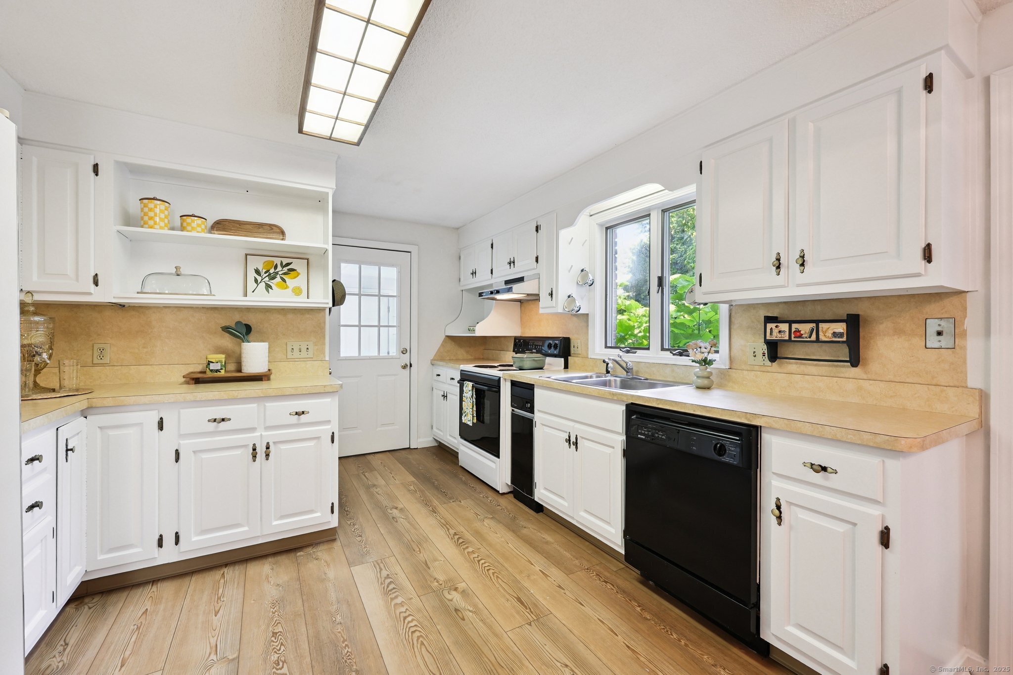 Ease of living. Shopping, parks, and recreation oh my! Enfield has everything you could ask for in a community. Sidewalks for safe walking, all the shops you can dream of, recreation and activities at The Enfield Annex. Indoor and outdoor sports, parks, aquatic activities at indoor pool, and classes for both adults and youth. This is a town that knows how to play together whether it is yoga, volleyball, beginner or advanced pickleball lessons, just to name a few for the adults. There are even more activities for youth. This home offers first floor living with outdoor stone fireplace and sliding glass doors leading to the deck for relaxation and entertaining. The flat open yard is your canvas. Two spacious bedrooms. Primary bedroom has ensuite bathroom. Galley style kitchen. A mix of hardwood and new wall to wall carpeting makes this home move in ready. The basement is expansive with a new dedicated Ct Basement SaniDry dehumidifier. Home is also equipped with spacious enclosed breezeway for inclement weather abutting single car attached garage. Come live the simple life!