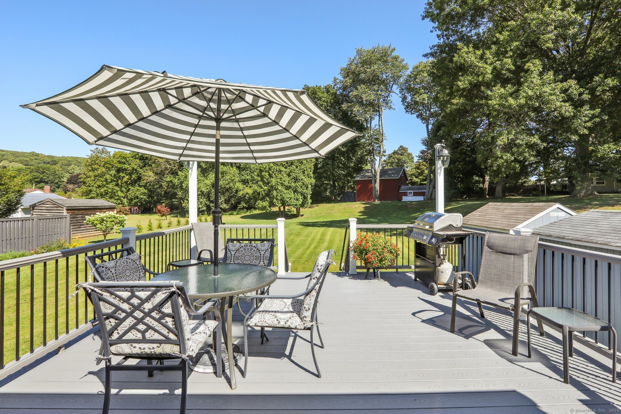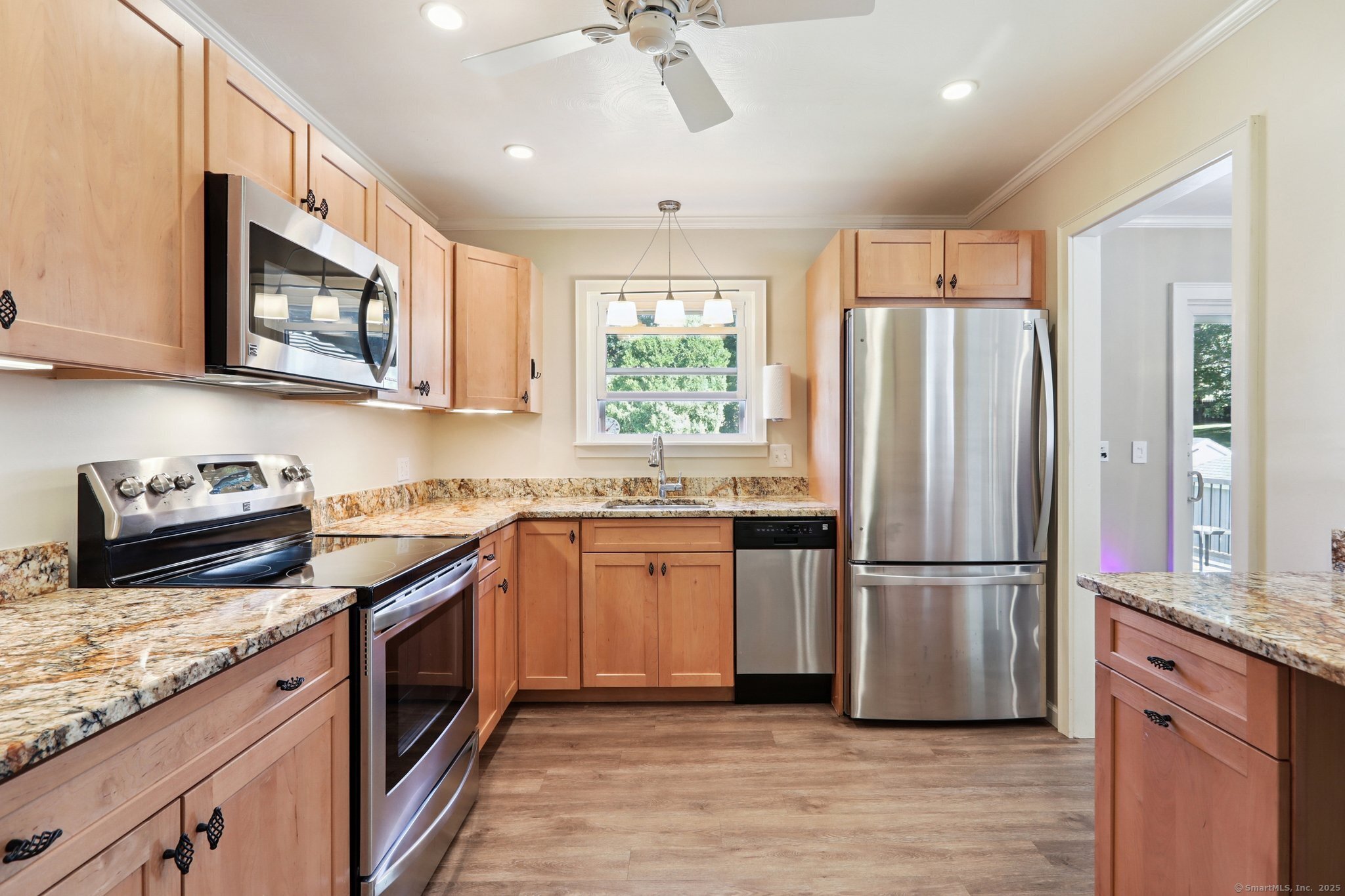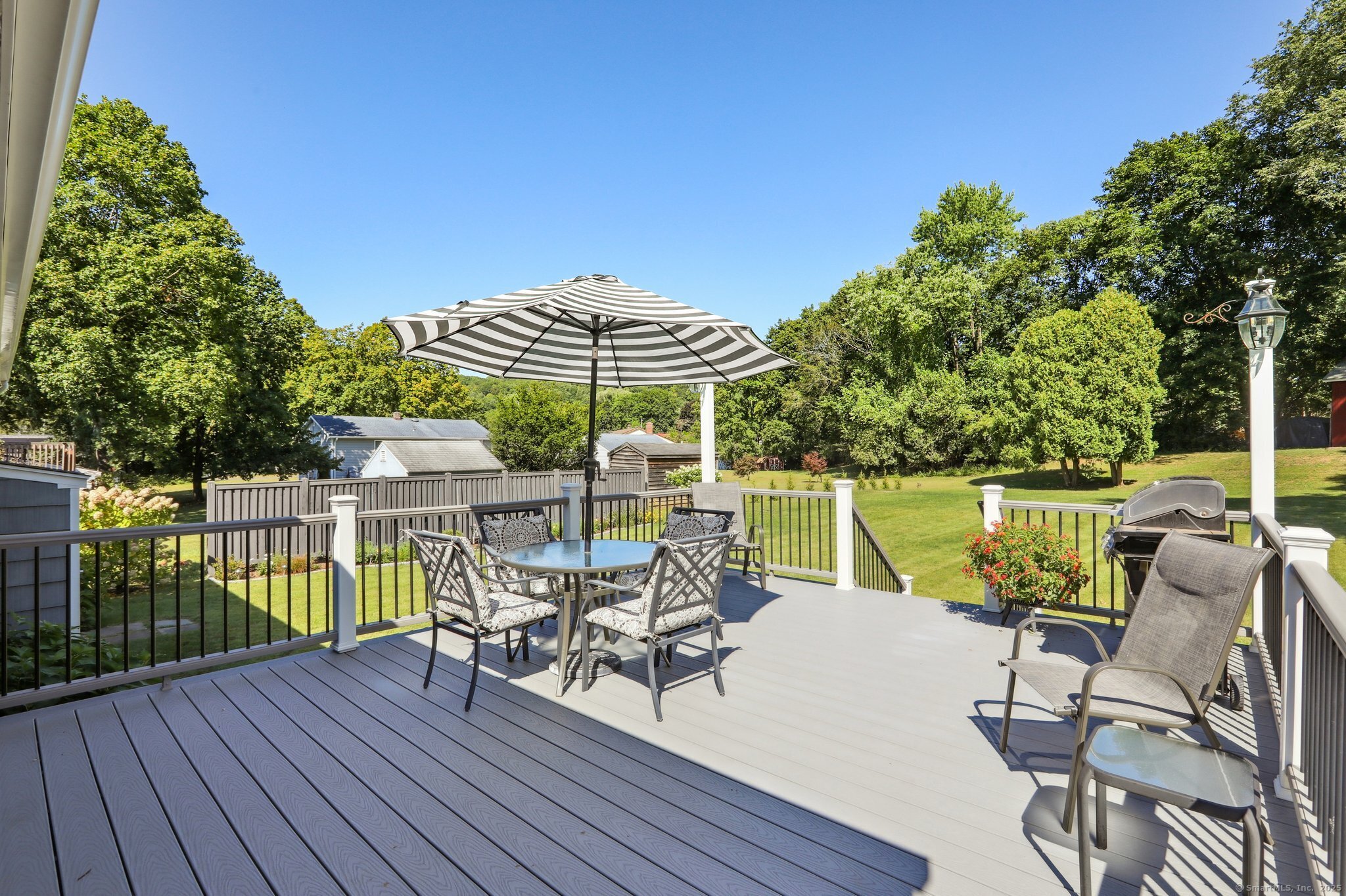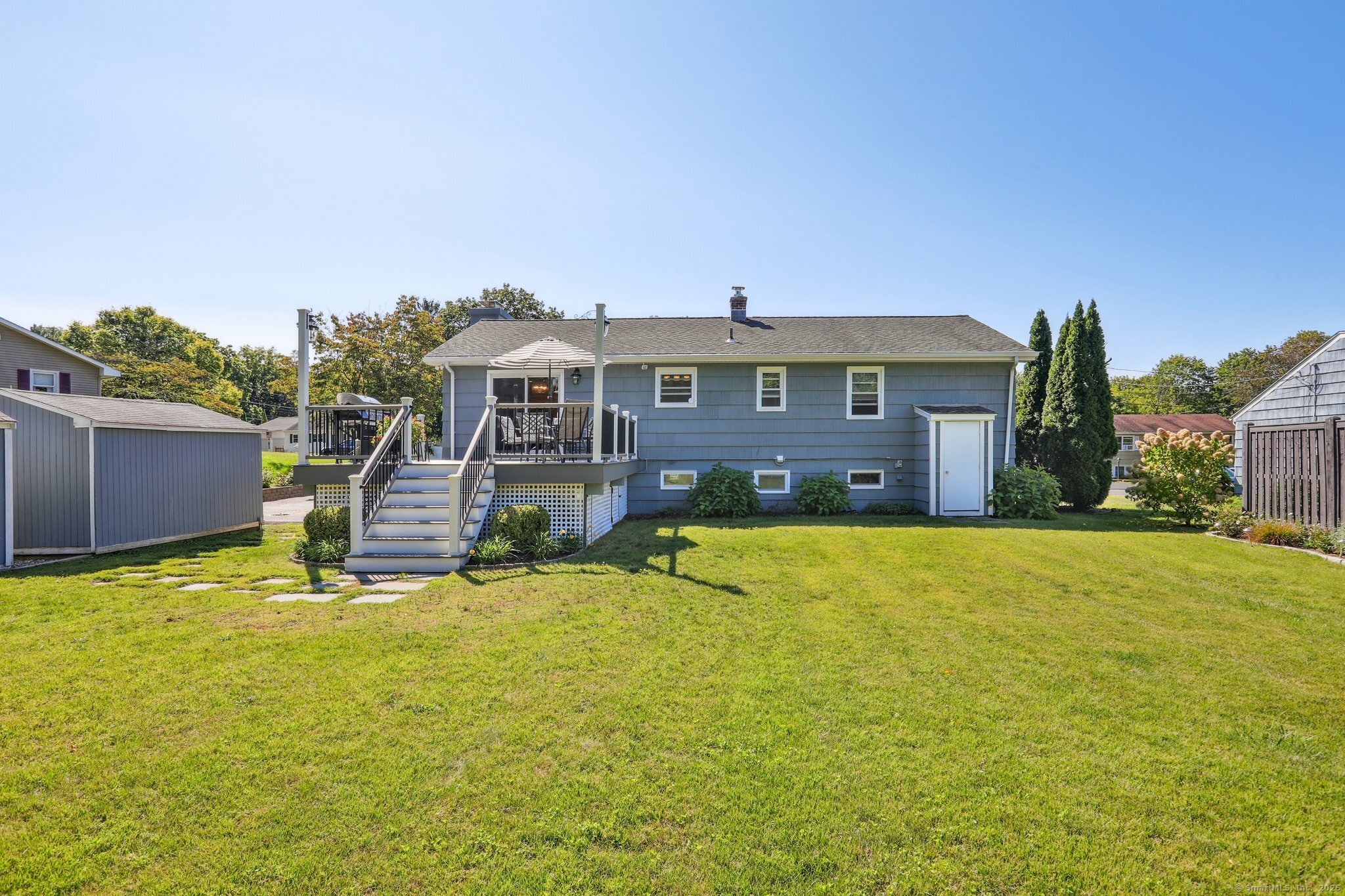 Welcome to this impeccable, remodeled raised ranch set in a beautiful neighborhood on a level, park-like lot. Surrounded by lush perennials, bluestone walkways, and a spacious Trex deck, this home offers both curb appeal and a private backyard oasis perfect for entertaining and everyday enjoyment. The interior features a remodeled kitchen with granite countertops, SS appliances, bar height counter/eating space, new flooring, warm maple cabinetry. The kitchen, living room and dining area all flow seamlessly, and the dining room has glass slider access to large, maintenance free deck and gorgeous backyard. The main level provides 3 spacious bedrooms, all with ceiling fans, fresh paint and luxury vinyl plank flooring. The main level full bath boasts a large double sink vanity with quartz top, shower/tub combo with pretty tile, new lighting and double mirrored medicine cabinets - excellent bath storage. A new set of pull down stairs provides easy access to the unfinished attic space, which provides additional storage.