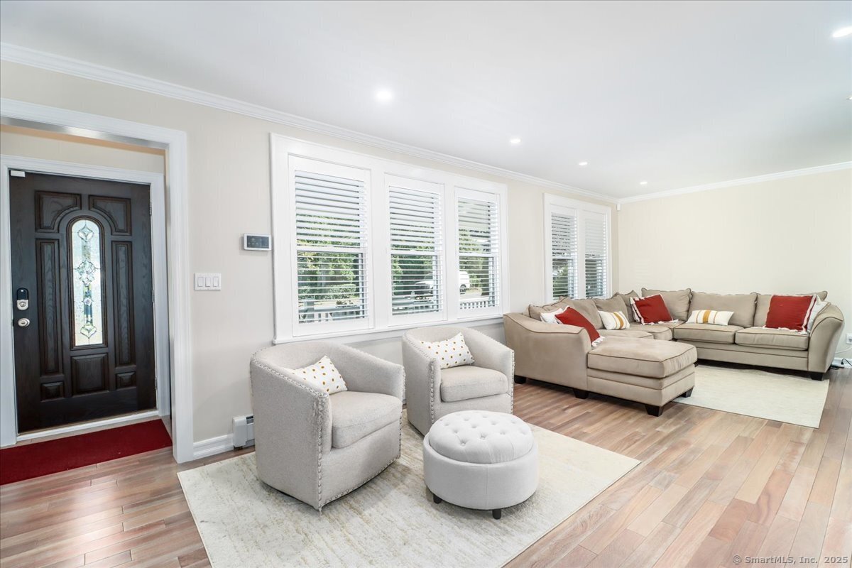 Welcome to this beautifully renovated Shippan Colonial that perfectly blends modern updates w/classic charm. With 5 BRs, 2.5 baths, & multiple flex spaces, this home offers comfort & versatility. An inviting front porch sets the tone, while inside, the open flow allows light to pour in from all windows. The spacious LR flows seamlessly into the DR & showstopping kitchen w/quartz waterfall countertops, s/s appls, pantry & abundant cabinetry-perfect for everyday living & entertaining. Beyond the kitchen are 2 BRs & a full bath creating the perfect opportunity for a 1st flr primary suite, guest space, or home office. Upstairs, offers 3 add'l BRs & an updated bath plus a finished walkup attic ideal as an office, hangout space or gym plus add'l storage. The fully finished LL w/ separate entry & garage access, expands your options w/ a half bath, kitchenette, laundry & oversized media/family room-great for entertaining or multi-gen living. The attached 2 car heated & insulated garage is large enough to accommodate add'l storage. Outside, enjoy an oversized yard w/ plenty of room to play, garden, or relax. A covered patio provides a cozy retreat for outdoor dining & lounging or can be used as a carport. While perfect the way it is, there is also plenty of expansion potential. Minutes from I-95, Metro North & Downtown, the highlight is a short walk to Brennan's, Cummings Park & West Beach! Don't miss your chance to own in one of Stamford's most sought after communities! R6 zoned.