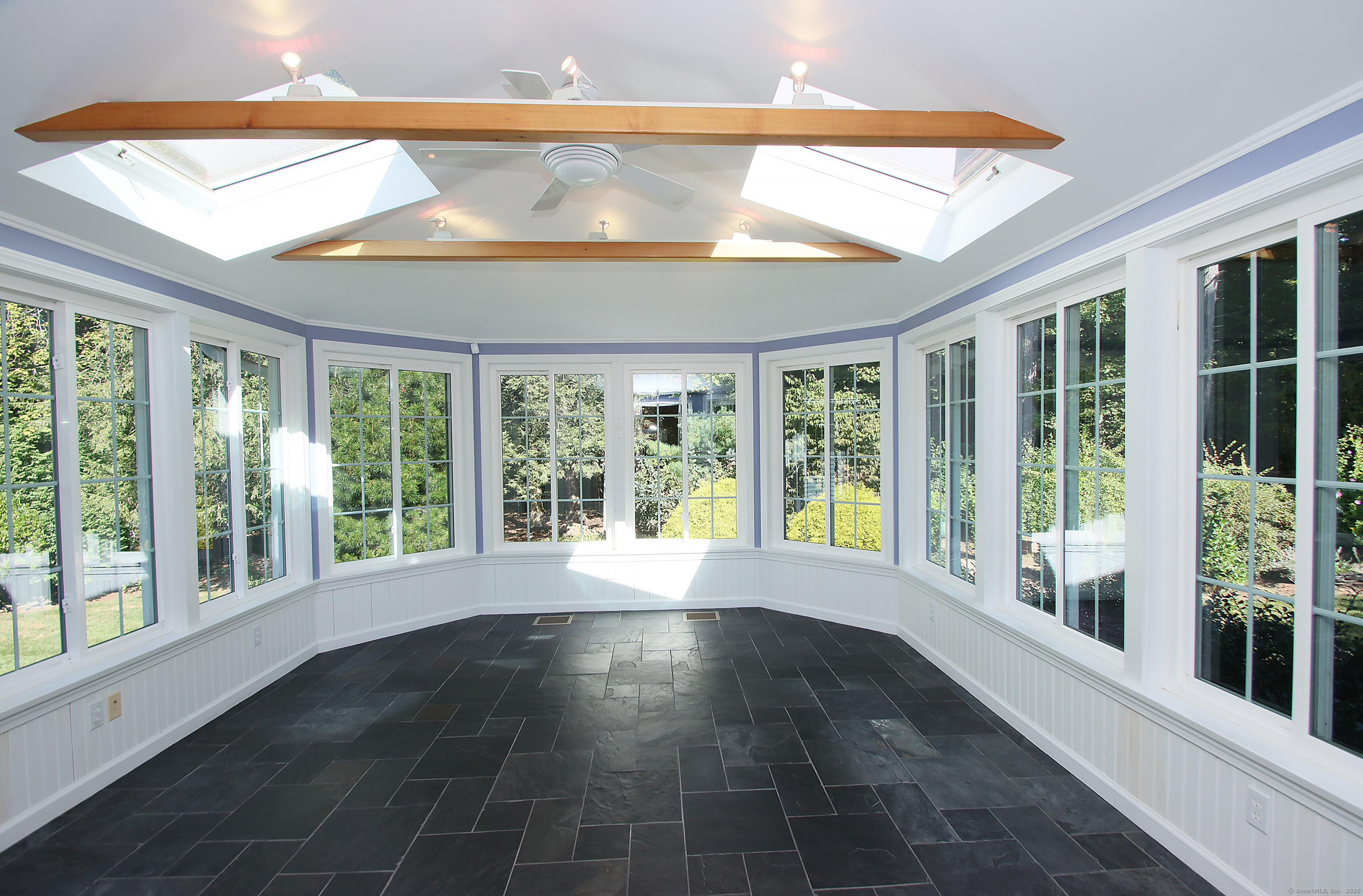A Very Special Home on a Wonderful Street! Step inside this show-stopping property and experience all it has to offer. A sun-filled two-story foyer with skylights greets your guests in style. The living room features a large wall of windows, fireplace, and custom built-ins. The formal dining room is ready for those special parties! The heart of the home is the chef's kitchen, complete with a granite center island, custom West Hartford Stair butternut cabinetry, breakfast bar, spacious pantry, and fresh stainless steel appliances. An oversized breakfast nook flows into the heated/cooled sunroom with skylights and private views of the stunning yard and brick patio. Just off the kitchen is a flexible extra room-perfect for a private office, home gym, or game room. The spacious family room offers a wet bar, floor-to-ceiling fireplace, three skylights, and French doors to the patio, making it the ideal gathering spot. A luxurious first-floor primary suite provides comfort and convenience, with a spa-like bath with heated flooring and generous closets. Upstairs, you'll find three additional bedrooms, (with one having a full bath), 2 full baths, hardwood floors, and excellent storage. This property offers an oversized private lot which is nicely set back from the road and includes an updated fresh walk-way, pretty gardens and a front and side entry. This property offers quick occupancy if needed and is located close to all major routes.