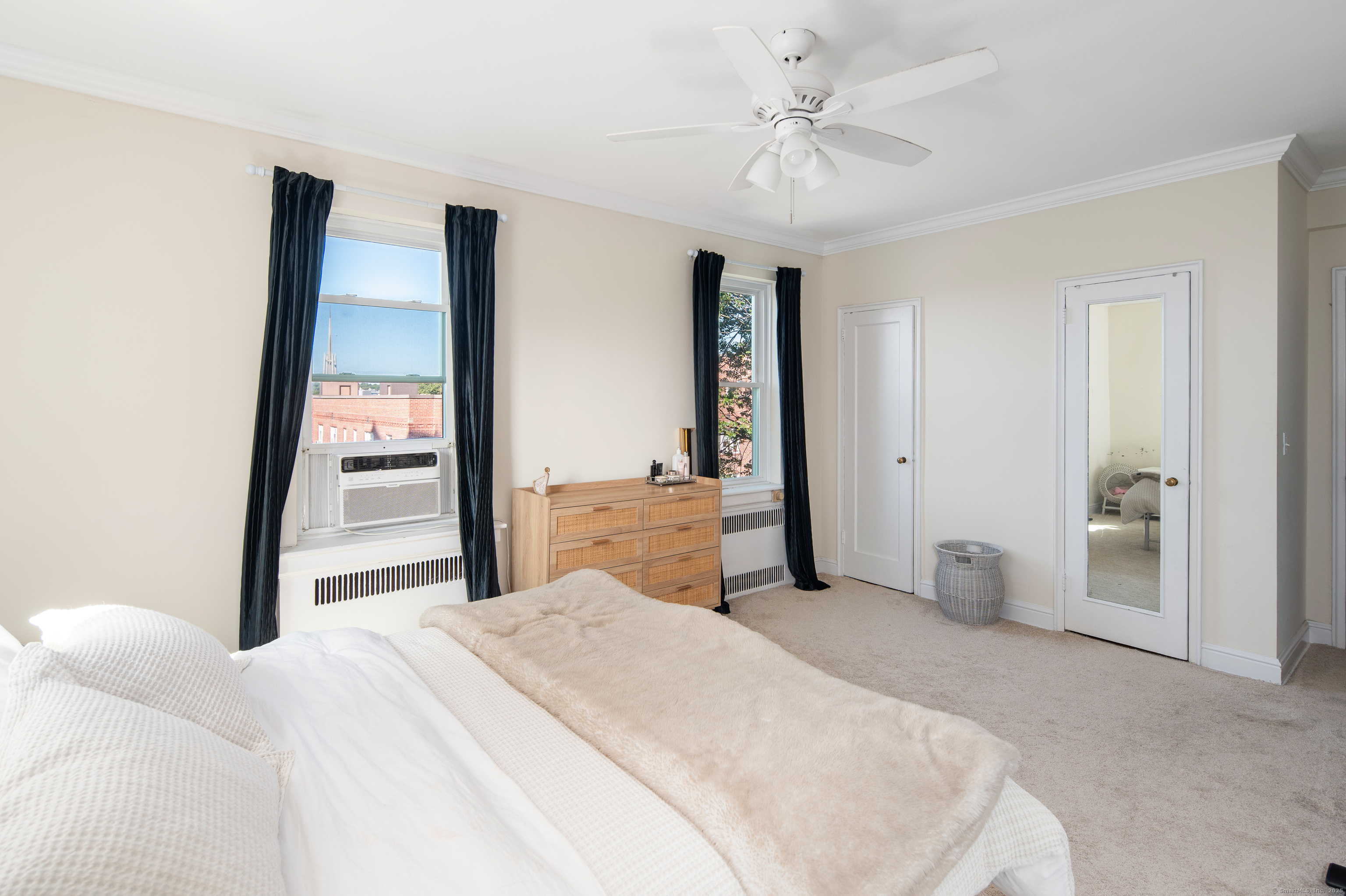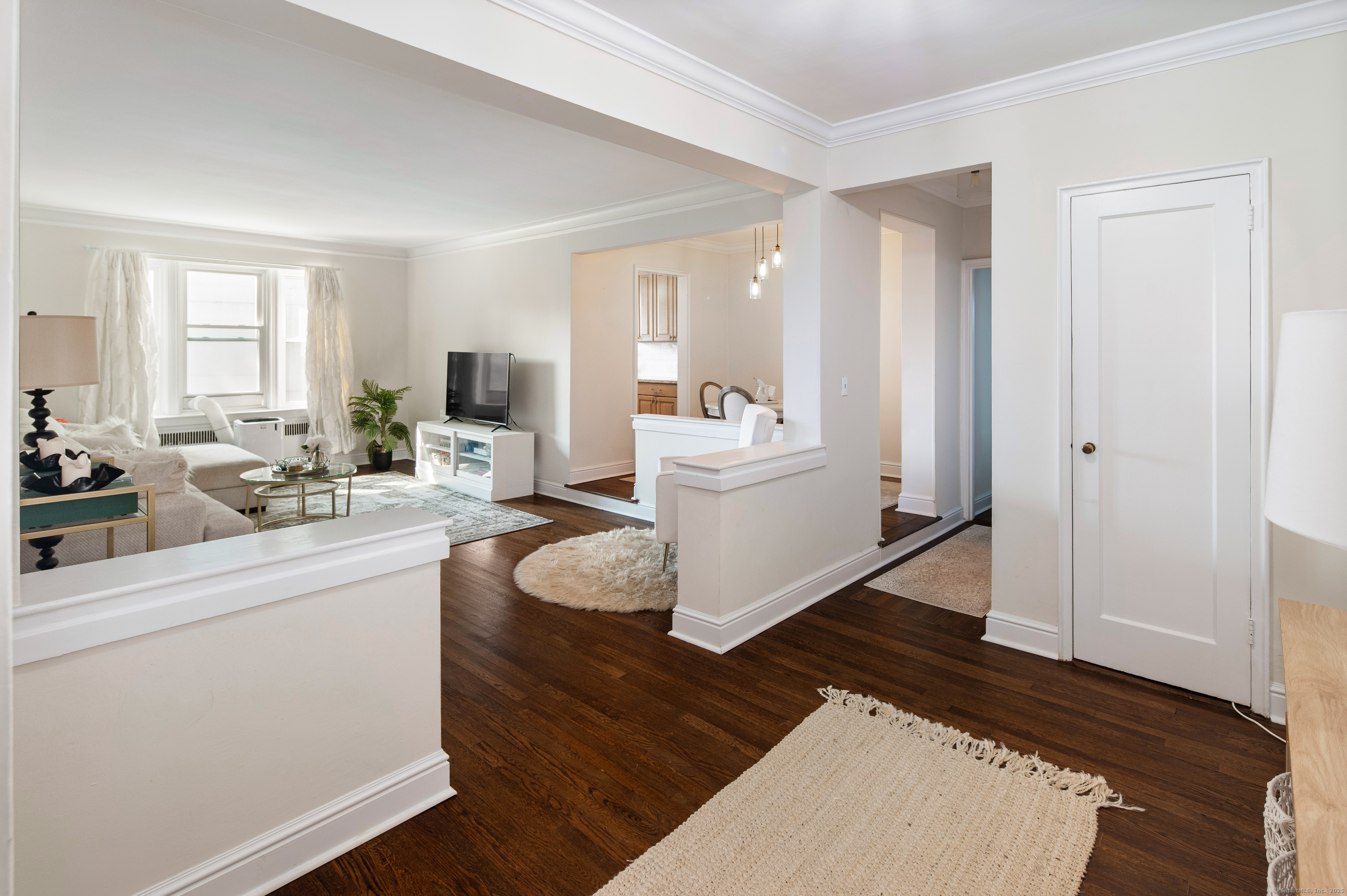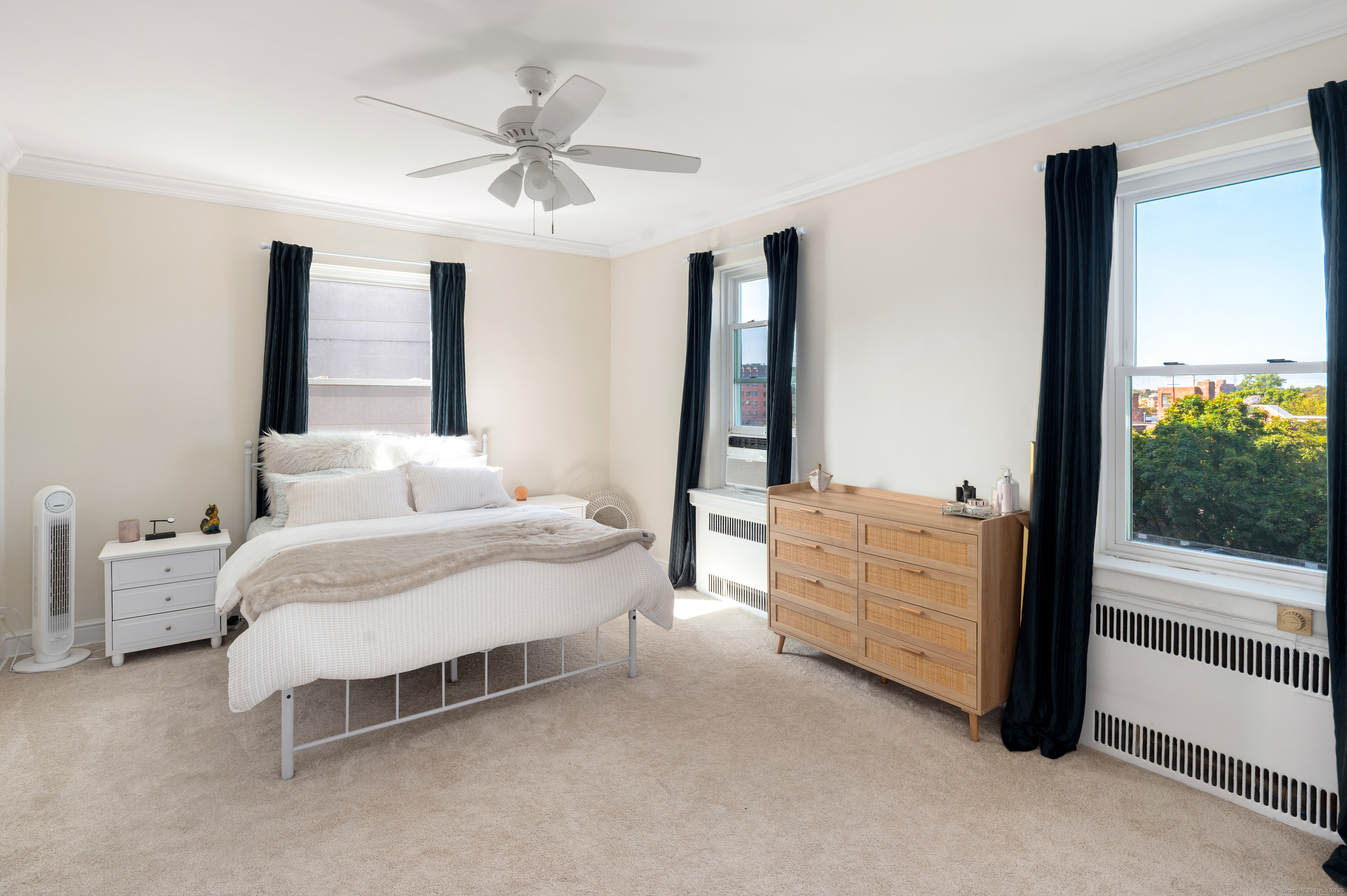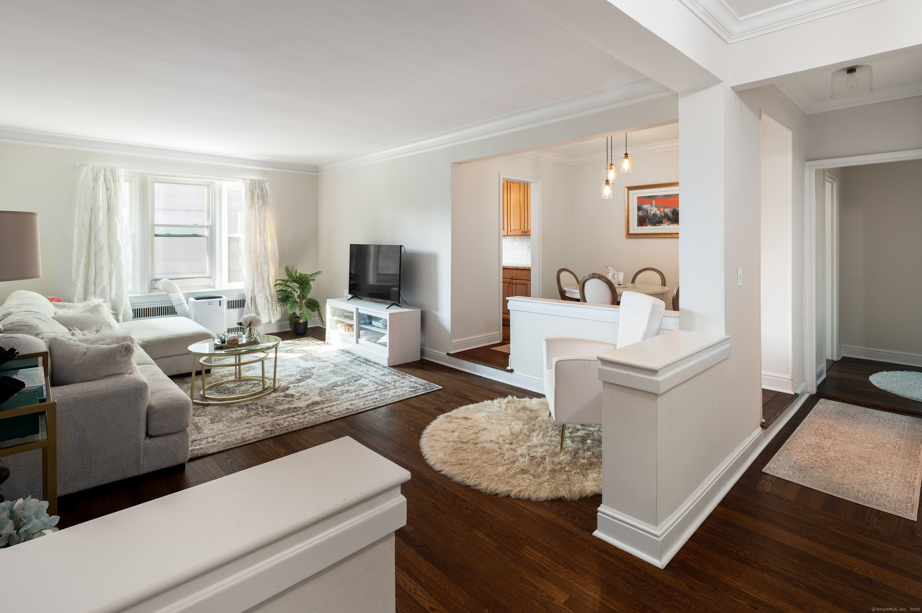 One of the largest one bedroom corner units in the complex at 934 square feet in up to the minute, move in ready condition! Imagine an English style courtyard entrance with ivy covered brick exterior and port-cochere in this pre war building where charm and character abound. A wonderful east/west exposure floods the unit with natural light all day long and the evening hours give you sparkling city views. A defined entry foyer, 9' ceilings and a long list of recent improvements including all new windows, bathroom renovation, kitchen updates, refinished hardwood floors and more. An easy walk to downtown and CT Transit has a stop practically at your front door. A wonderful city gem.