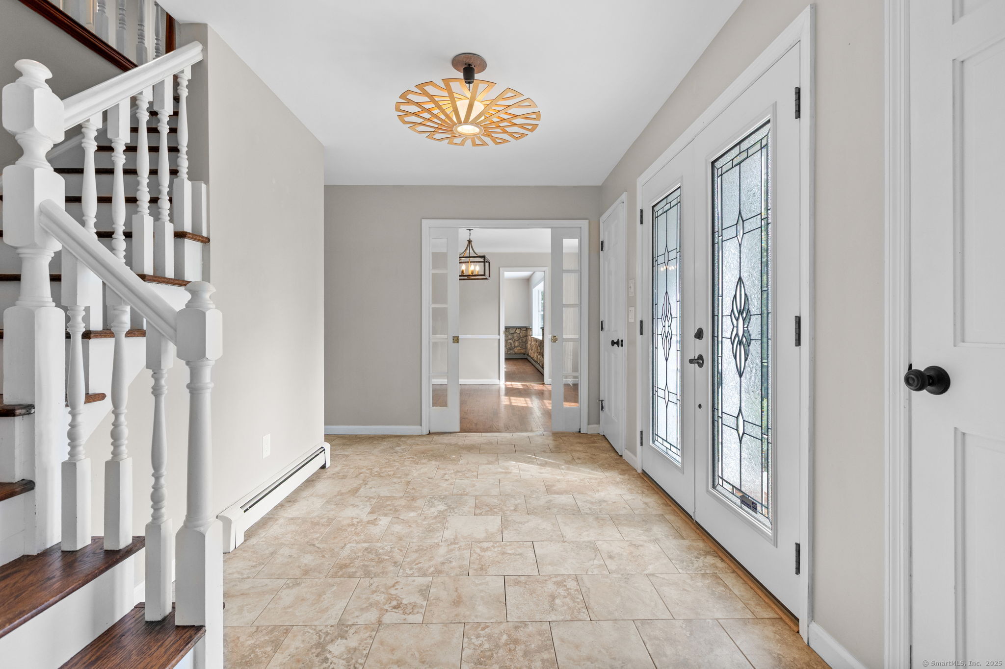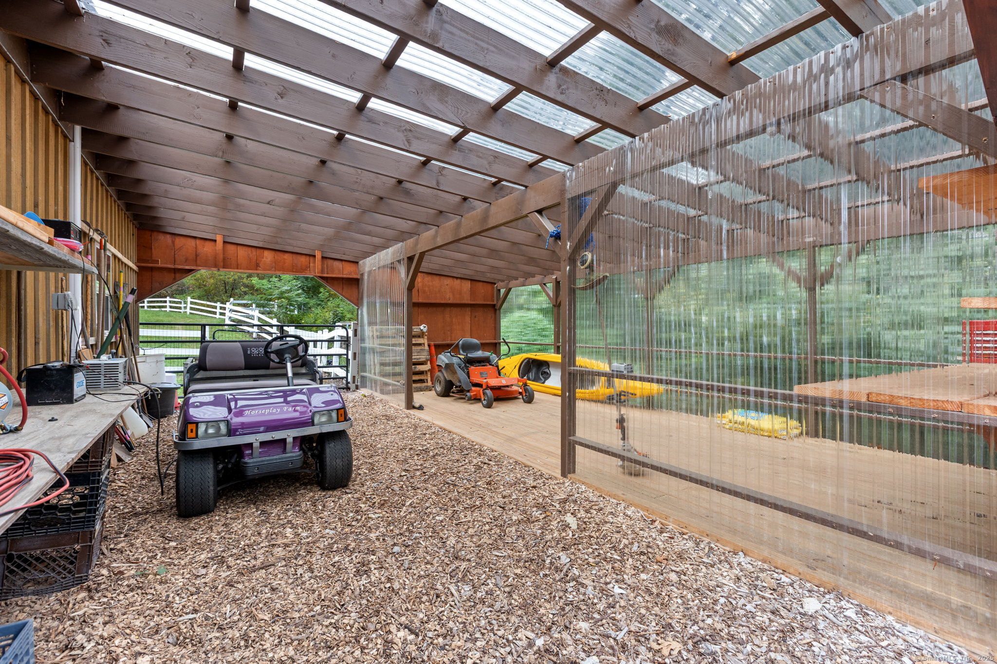 Tucked away at the end of a quiet cul-de-sac in one of New Fairfield's westside neighborhoods, this exceptional 5.08-acre equestrian property offers the perfect blend of rural tranquility, modern comfort, and functional design. Ideal for horse lovers, hobby farmers, or anyone seeking privacy and open space, the property features a professionally equipped three-stall barn with 10x10 matted stalls, individual walkouts, hay drops, a spacious loft with fan for hay and bedding storage, a tack/feed room with private changing area and sink, an outdoor wash station, and a dedicated space for a portable toilet. The grounds are thoughtfully laid out with a sand riding ring, several paddocks, and a turnout field, all surrounded by peaceful woods, offering both beauty and practicality. The stunning four-bedroom, 2.5-bath Colonial home has been tastefully updated with fresh paint and newer flooring throughout, and offers a large eat-in kitchen with top-of-the-line stainless steel appliances, formal living and dining rooms, a spacious laundry area, and an impressive two-story Great Room with a cathedral ceiling, fireplace, built-ins, and an open loft, ideal for a home office, guest space, or playroom. A three-season sunroom and expansive back deck provide the perfect vantage point to relax and take in the views of the landscaped yard and barn. The full walk-out basement offers abundant storage, workshop space, and direct access to the oversized two-car garage, making