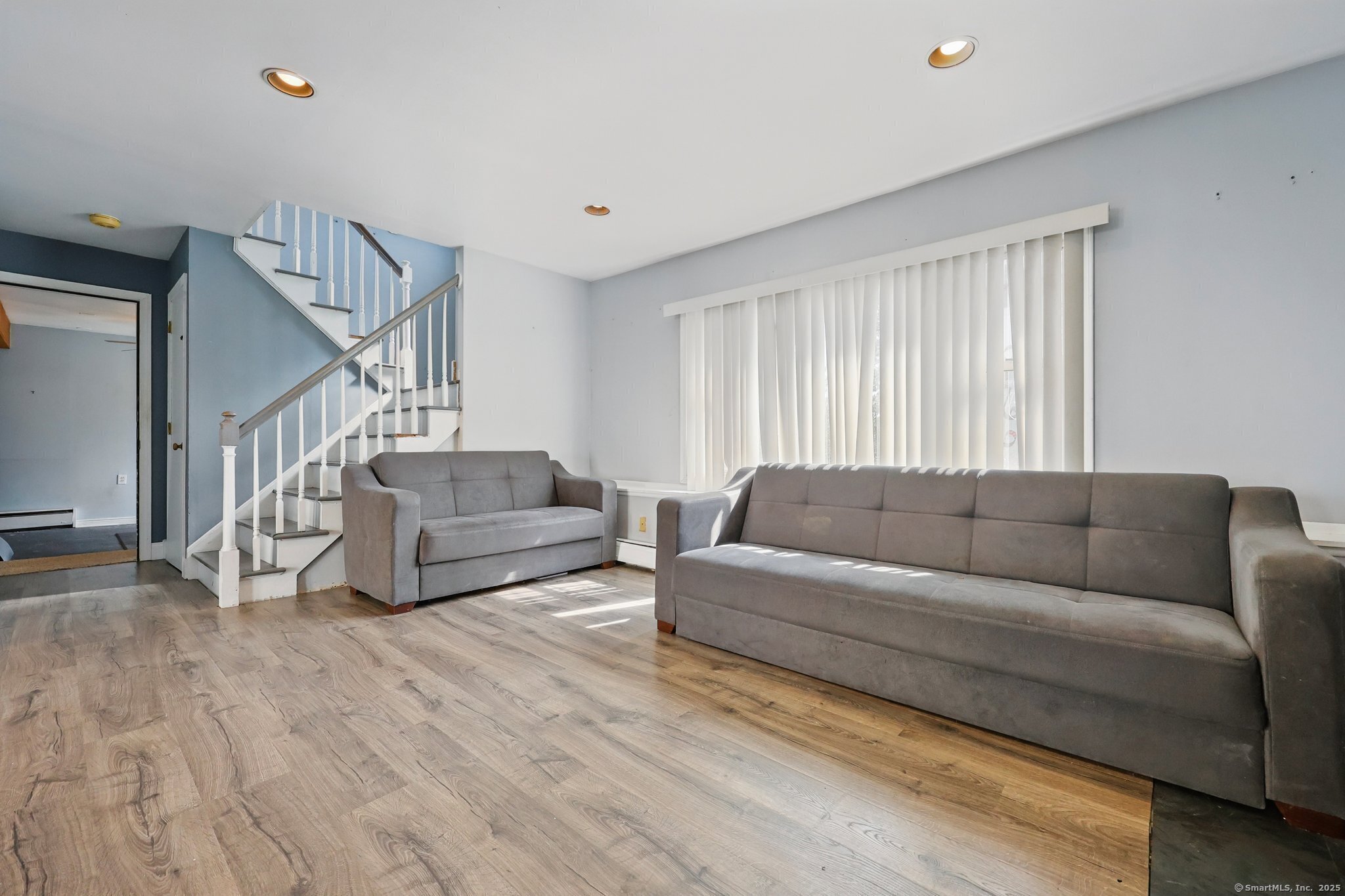 Turnkey Raised Ranch in Prime North End Location! Welcome to this move-in ready 3 bedroom raised ranch nestled in the highly convenient North End. Just minutes from the train, public transportation, shopping, parks, and major highways. Step inside to soaring vaulted ceilings and sun-filled living spaces that create a warm and inviting atmosphere. The spacious kitchen features quality GE appliances, while the dining area shines with hardwood floors with a deck. The upper level offers three generously sized bedrooms, including a primary suite with its own private full bath. The fully finished lower level adds incredible versatility, with two oversized recreation rooms ideal for a home office, gym, guest space, or potential in-law setup. You'll also find a cozy fireplace, a stylish half bath, and direct walk-out access to a private patio, perfect for outdoor entertaining and relaxing. Solar Panels from Sunnova. With numerous upgrades throughout and flexible living options, this home shows well!