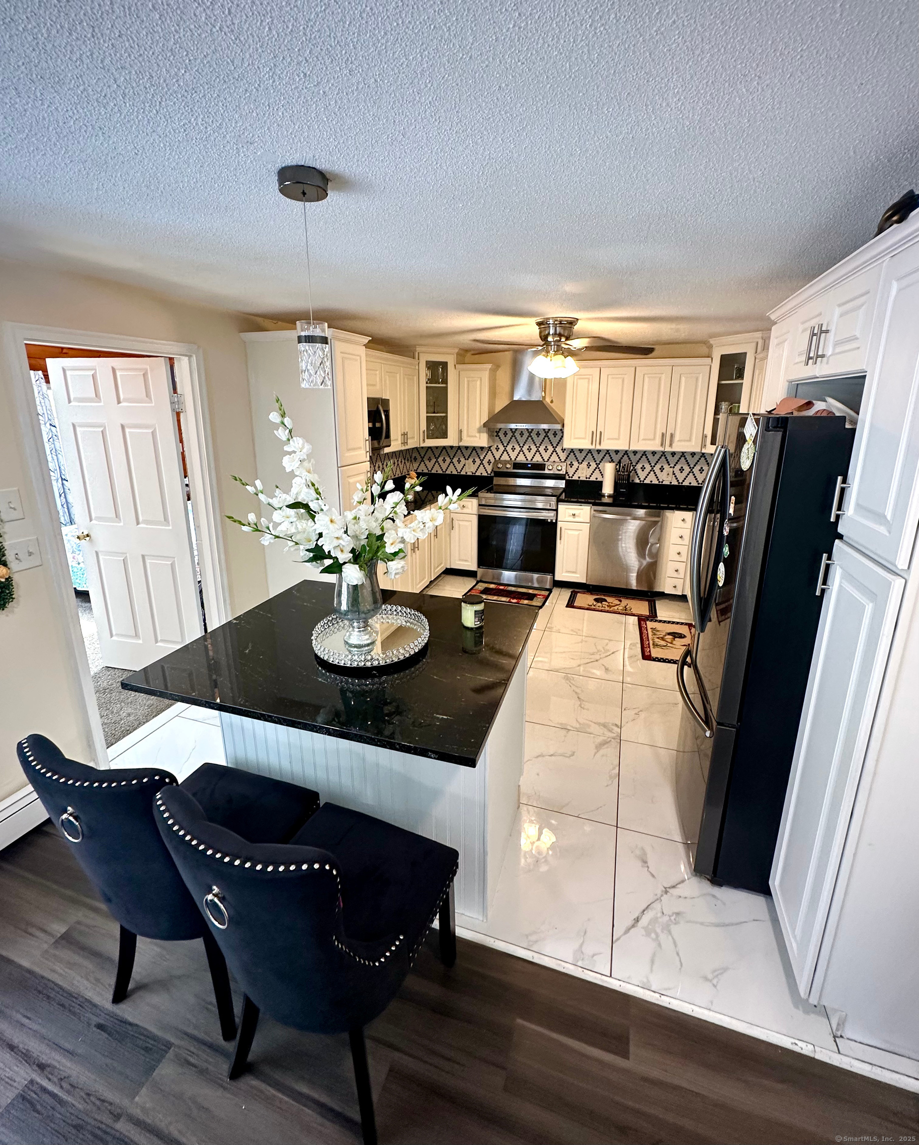 Welcome to 24 Bel Aire Circle, a beautifully renovated home in Windsor Locks. The owners have created a true oasis, thoughtfully expanding the home with additional bedrooms and another full bathroom (all permitted and reflected on town records). Each room offers tons of natural lighting, seamlessly blending style and comfort. The brand-new kitchen boasts stainless steel appliances, granite countertops, shaker cabinets, a new pantry, and a center island overlooking the dining area. Back door opens to a spacious backyard with pool-perfect for entertaining. The basement is roomy and has finished epoxy floors, framed for additional space of your choice; family room, gym, guest suite, etc. Don't miss an opportunity to take a look at this move in ready home.
