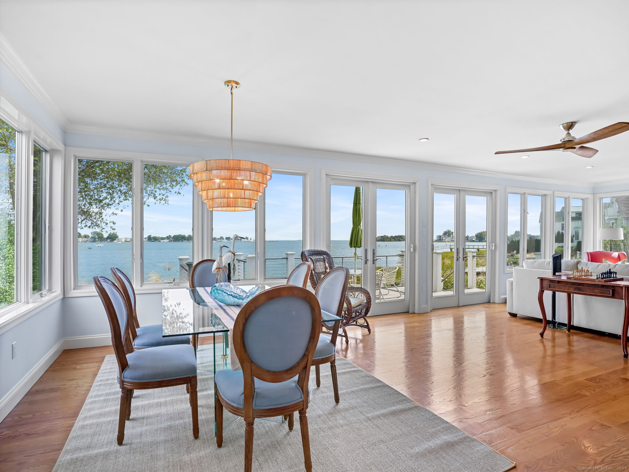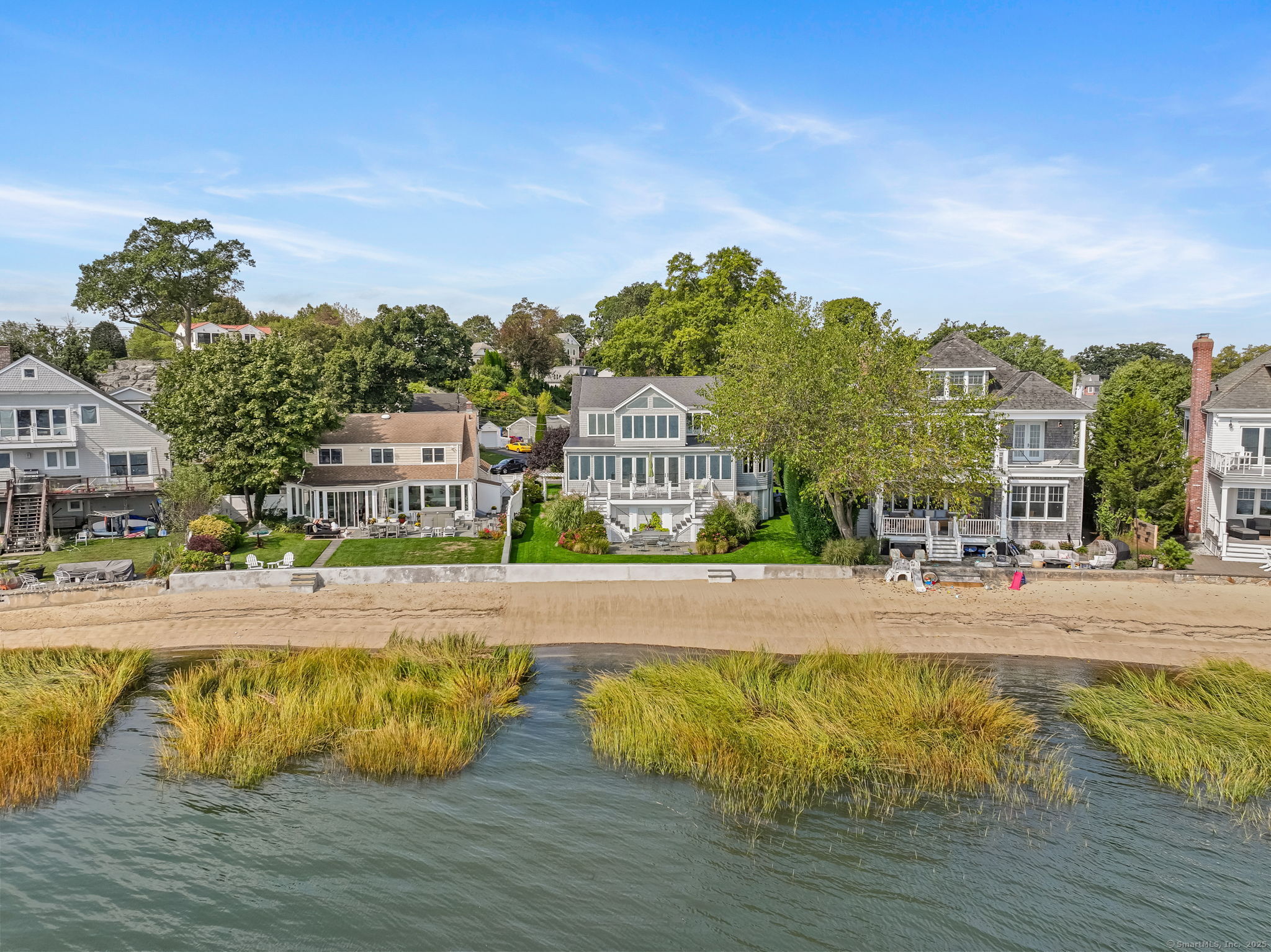 Charming, Curb Appeal & Casual Elegance throughout this elevated DIRECT WATERFRONT property! Superb location offers a BEACH and WATER ACCESS in the delightful community of Shorefront Park close to restaurants, MetroNorth, museums and nightlife. Expansive Views of vibrant Norwalk Harbor, Long Island Sound and Long Island from majority of rooms. A gracious open floorplan with generous scaled rooms combined with the exquisite view, will make your day! The sparkling kitchen with Dolce Vita Quartzite counters, 5 burner gas cooktop, large island with Walnut countertop, New Dishwasher in 2024 and bountiful cabinets provides a great kitchen opportunity for guest participation. This leads to a mudroom/laundry room that can also act as a Butlers pantry with wet bar. From the front and rear Ipe-planked decks, the world of relaxation is always accessible. Beautiful property and gardens enhance what nature provides so spectacularly with this home! Upstairs the Primary with its sitting room has wrap-around windows to bring you to the heart of nature. There are 3 additional bedrooms, bath and attic space. Shorefront Park is a well-loved community with a Beach Lot and a Kayak Park to launch kayaks, etc. Ask about amenities and social activities.