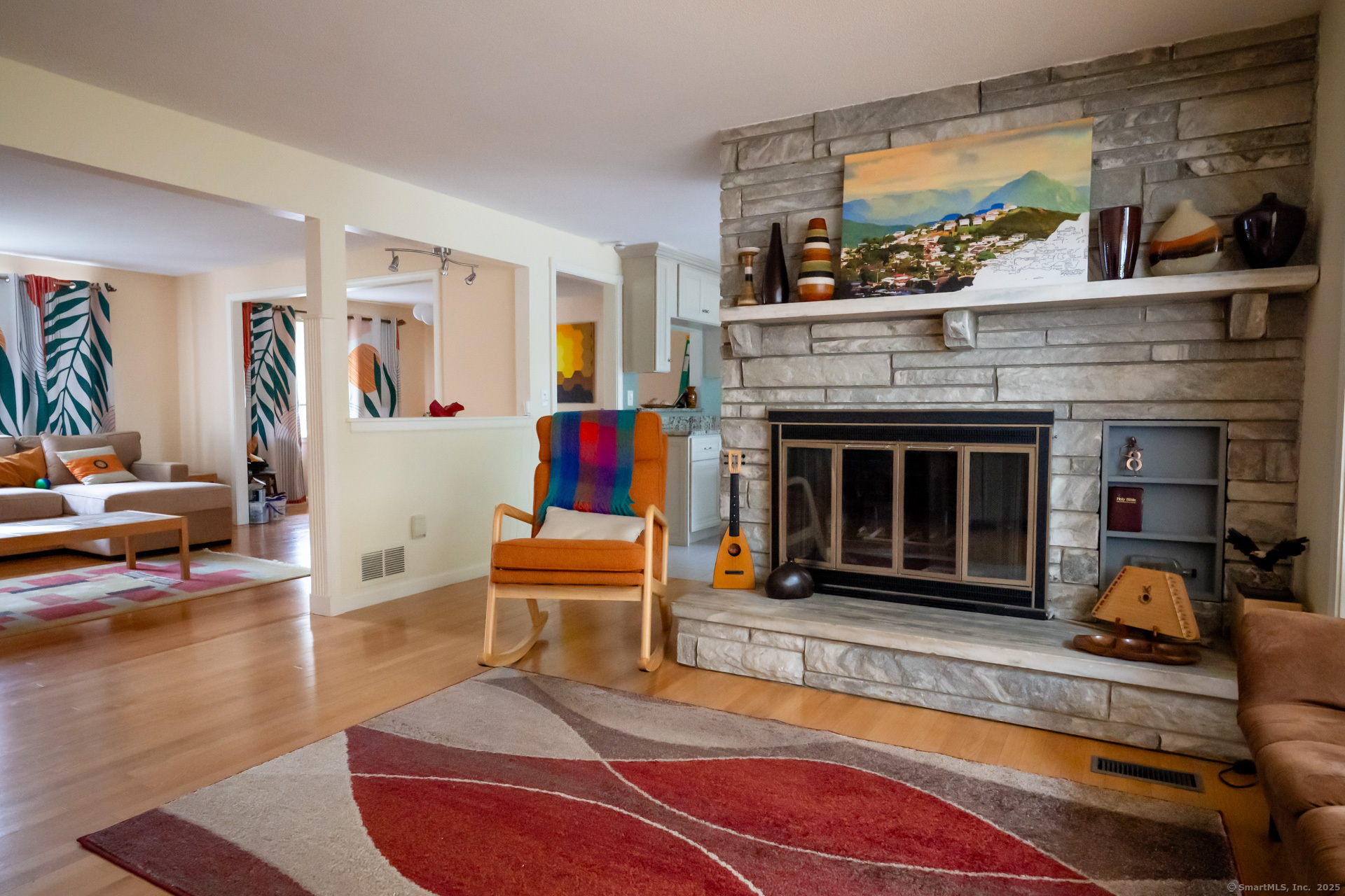 BEST AND FINAL DEADLINE OF SATURDAY, SEPTEMBER 20 BY END OF DAY. This cheerful, updated ranch is a must see. Plenty of natural light and an open floor plan make it a welcoming home, perfect for entertaining and everyday living. The entry foyer is open to the living room which features a charming bay window. A formal dining room is open to both the living room and kitchen. The remodeled kitchen features white cabinets, granite countertops, an island with seating space, a pantry, and stainless steel appliances. Around the corner is a powder room with laundry area, access to the 2-car attached garage, and a door to the rear yard. The kitchen's interior stone accent wall backs to the statement fireplace which anchors the adjacent family room. A bright sunroom completes the common living area and French doors lead to a spacious deck. The primary bedroom has a walk-in closet and en-suite bathroom. There are two additional bedrooms and a full bathroom in the hallway. Outside, the deck is a fantastic place to relax. It overlooks the expansive backyard with full sun. You'll appreciate that all the mechanical updates are done- 200amp electrical, newer windows, heating and cooling (2018), gas hot water heater (2023), and roof and skylight (2024). With a great layout and location, you'll want to see this home soon!