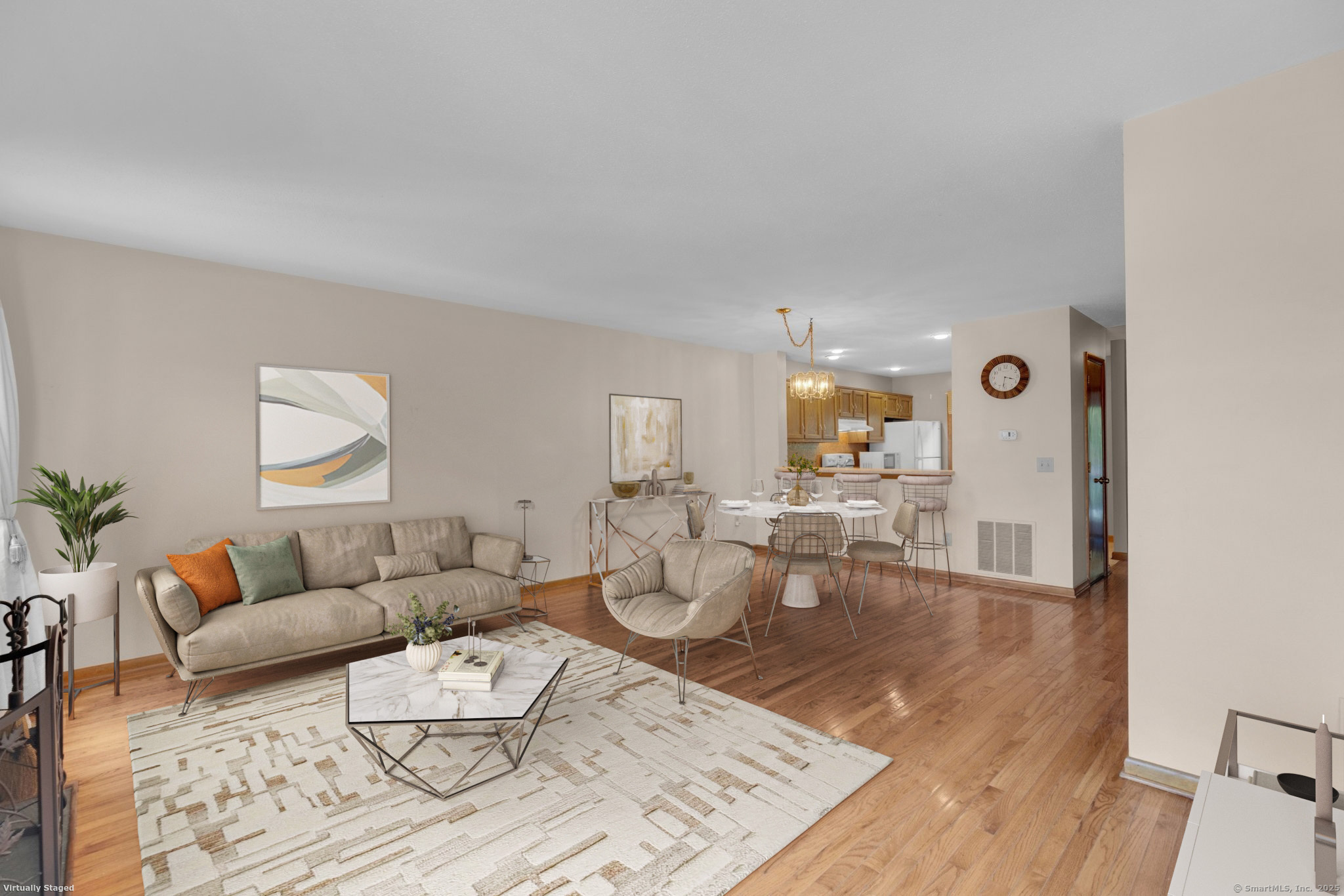 WANT THE MOST AFFORDABLE 2BR TOWNHOUSE WITH 2-CAR GARAGE IN DANBURY?.....Discover comfort and convenience in this move-in-ready end unit townhouse with 2-bedrooms, 1.5-baths and a 2-car garage, located in the desirable Good Shepherd Hill Community. Perfect location for commuters-minutes from major highways. A wide variety of shopping and dining is within a short distance. This bright and well-maintained home contains true hardwood flooring on the first level, 2025 dishwasher, 2025 hot water heater and 2025 water filtration system. This practical layout and the ease of low-maintenance living is perfect for first-time buyers and downsizers. Open concept and dining areas with great natural light and balcony. Kitchen with ample cabinetry and breakfast bar. Two generously sized upstairs bedrooms with good closet space and connecting bath. In-unit laundry and central air.