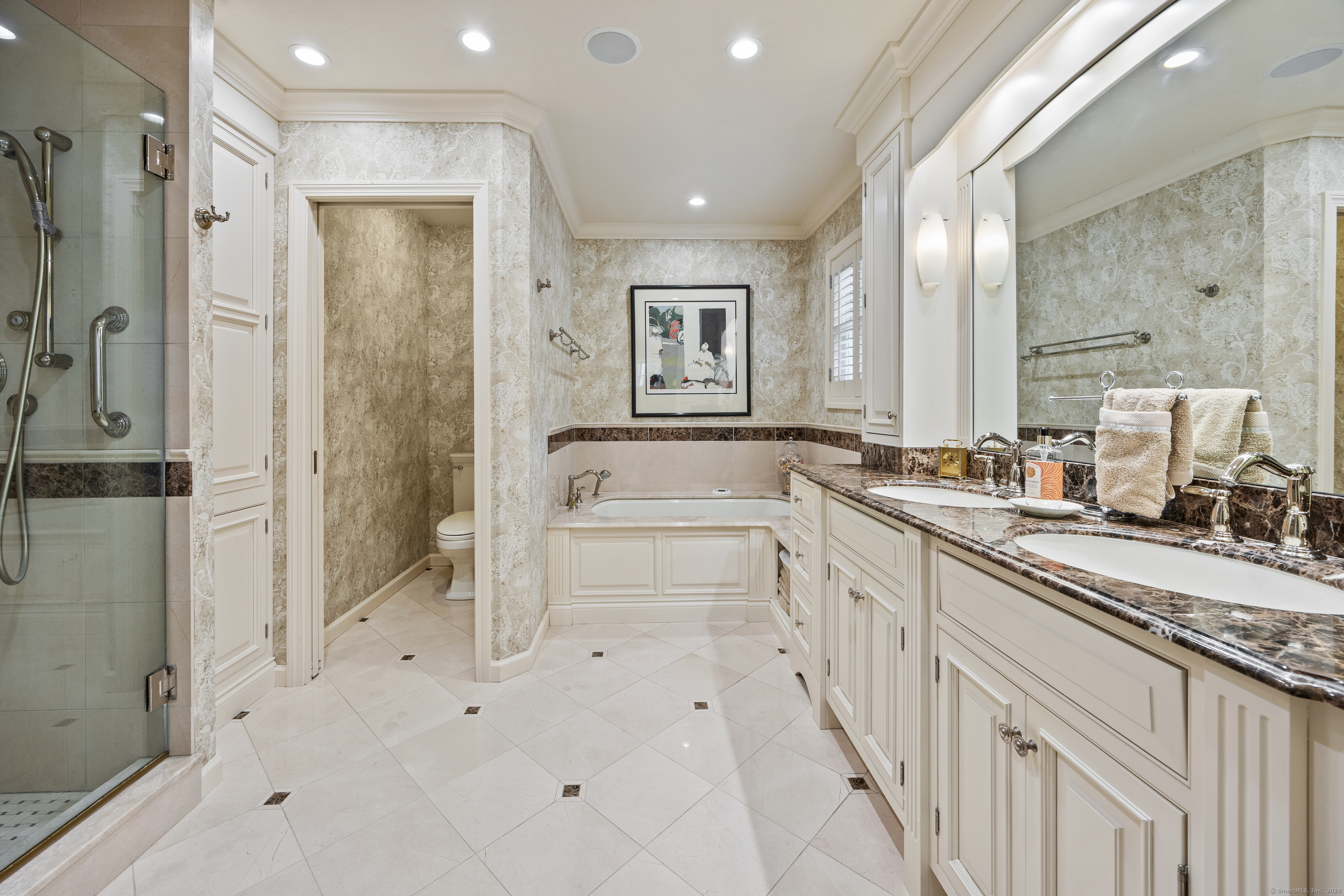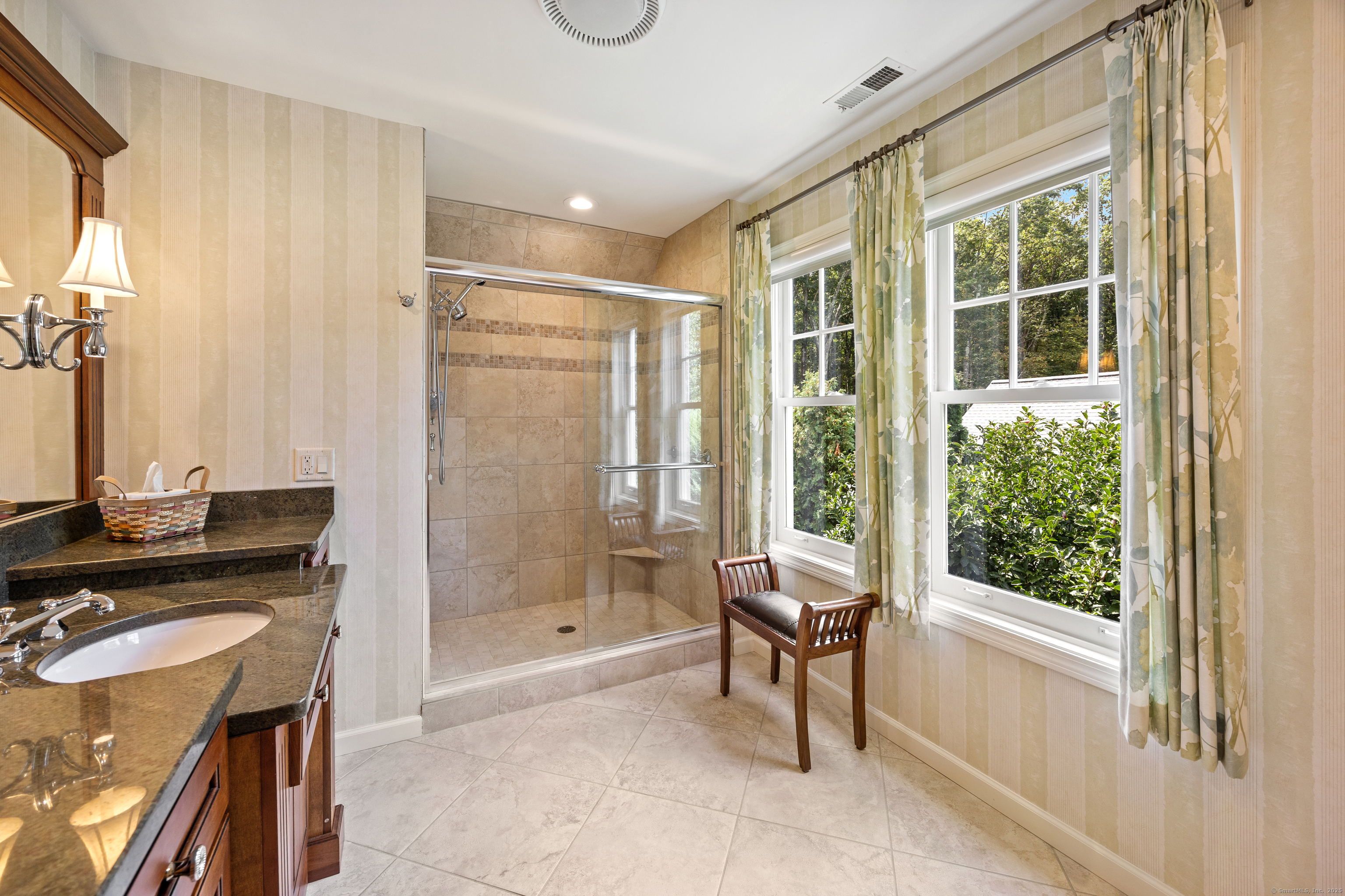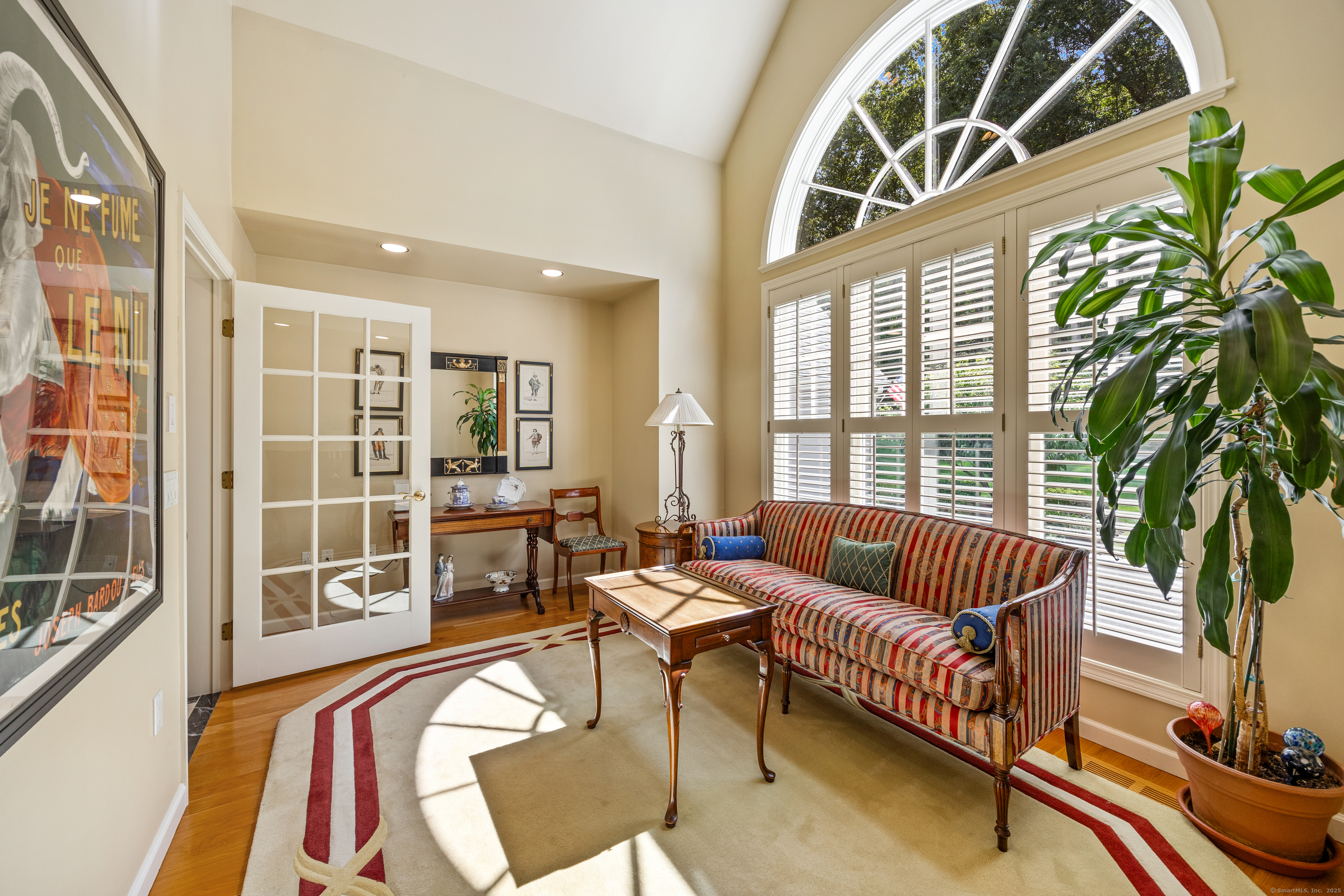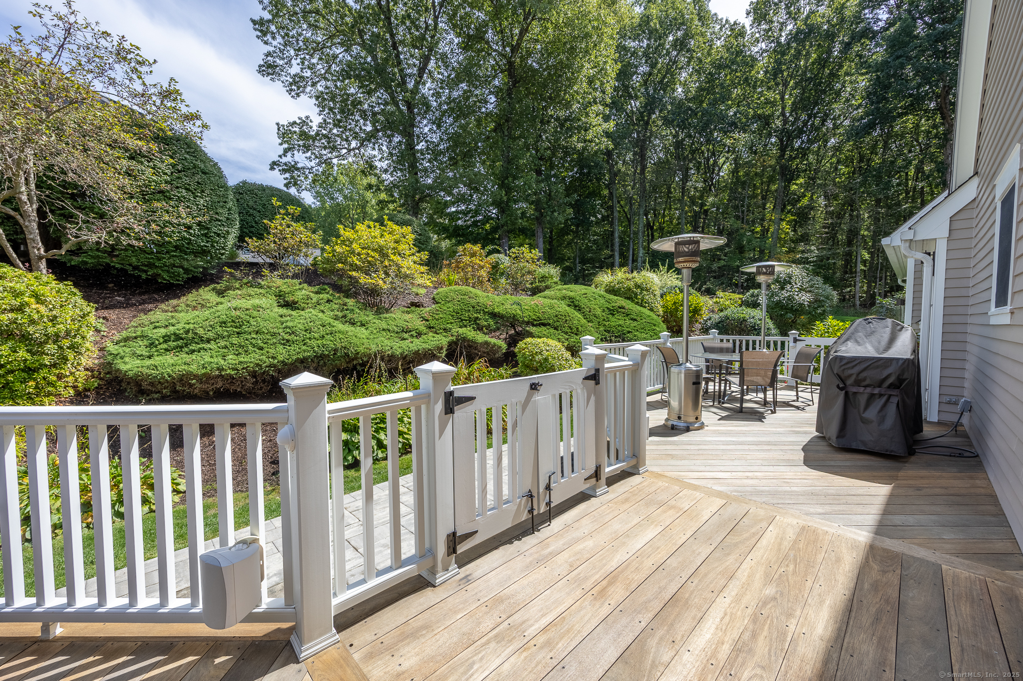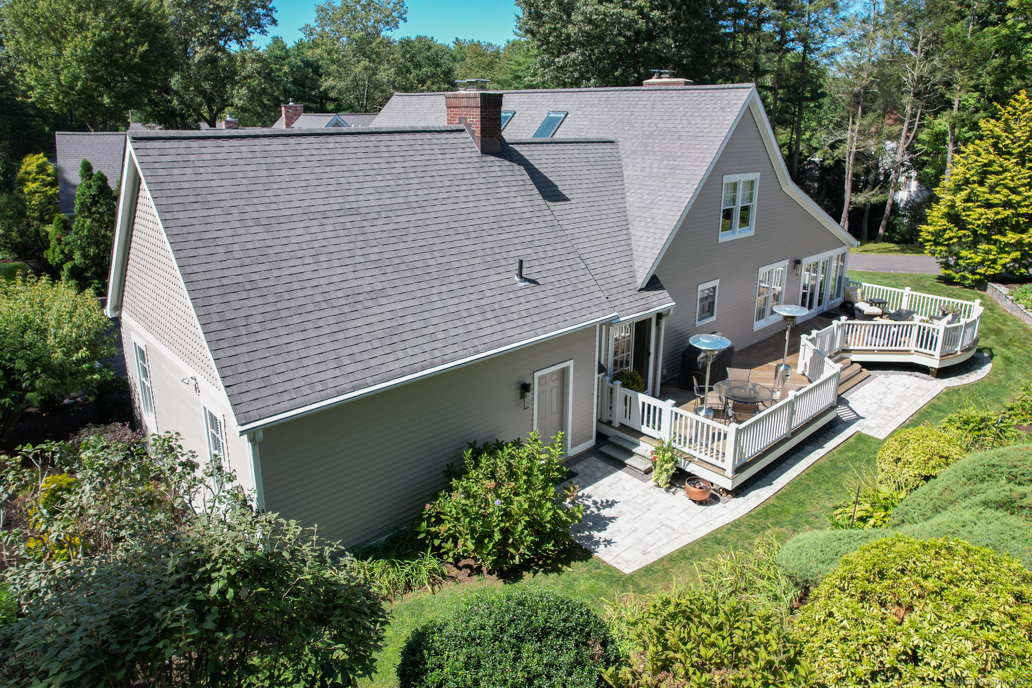 Rare & Stunning - Cheshire Contemporary Cape - Country Living in Town - Move-in Ready Gem! Meticulously maintained in serene, carefree Castle Glenn Association with a pool, adjacent nature trails, steps from town. Modern elegance, timeless charm. Updated, redesigned, elevated and transformed for today's lifestyle. Multiple flex spaces. First-floor living, open-concept paired with private spaces, spacious rooms, hardwood floors, plantation shutters, French doors, crown molding, audio system, 2 propane/wood fireplaces. Gourmet Kitchen: 9' island, full dining, FP setting area, custom cabinets, granite, premium appliances, wine chiller, slider to deck. Luxurious First Floor Primary Suite w/outstanding custom closet, spa-like bath: dual sinks, marble counters, air-jetted tub & luxury shower. Family Room w/high ceiling, palladium window. Upper Level: 2 bedrooms, large closets, updated full bath, flex/Office room. Finished Basement w/media/rec area, pantry, wine cellar, laundry. Mahogany deck w/audio, LED-lit railings, manicured yard. Walk to shops, dining, rated schools. Easy highway access to Hartford, New Haven, Danbury, Fairfield Counties. Perfect for refined tastes - high-quality design, material & workmanship. Come see the beauty of what the town of Cheshire offers with its' open space, Roaring Brook Falls, Farmington Canal Heritage Trail, Parks, outdoor recreation and more. Minutes to highly rated schools, new shopping areas, award winning restaurants, and dining.