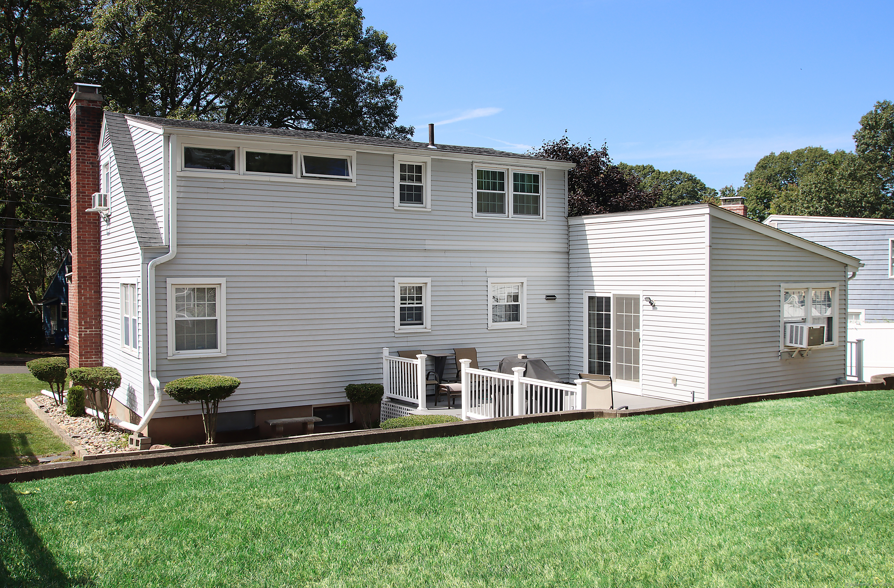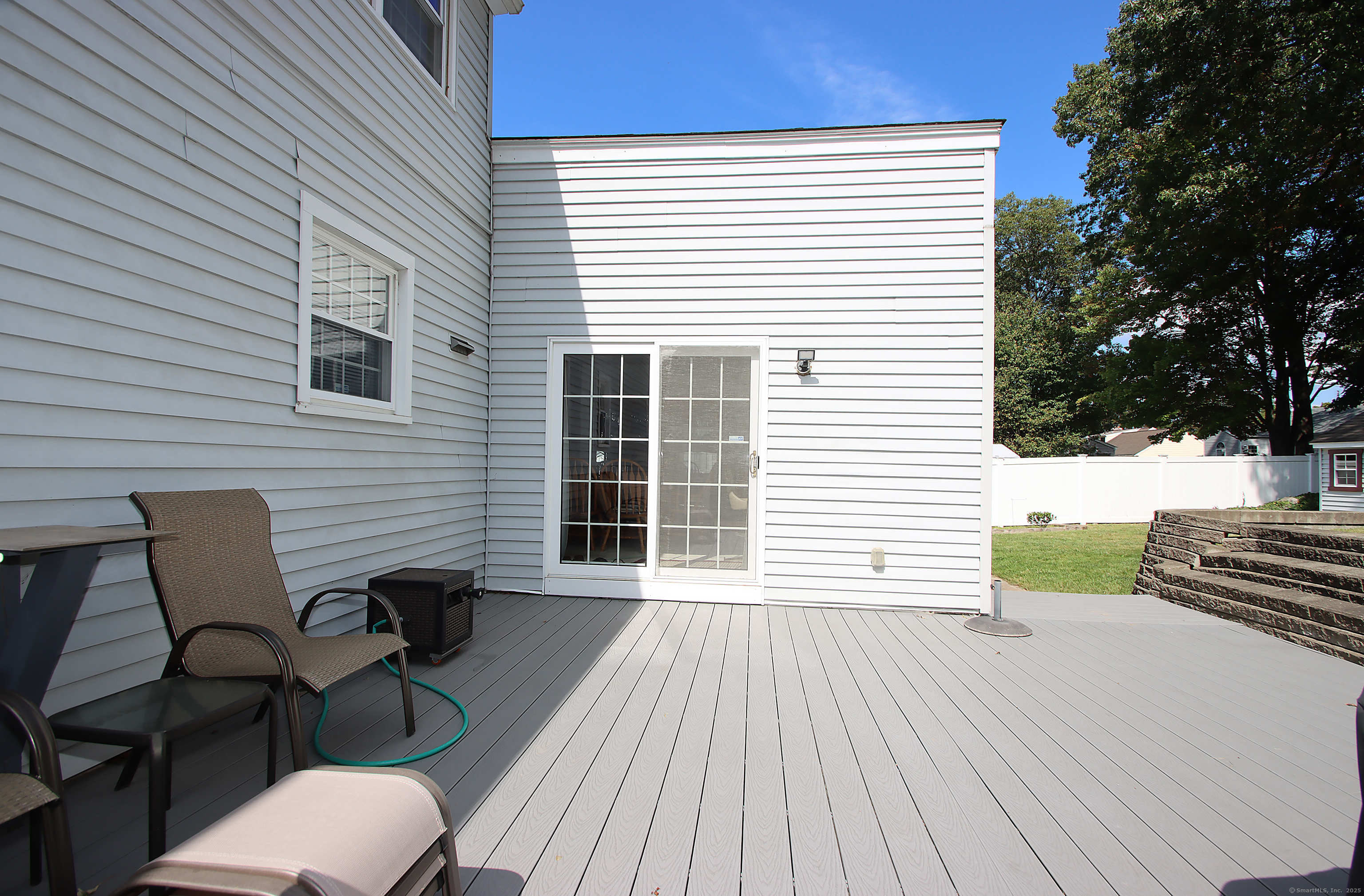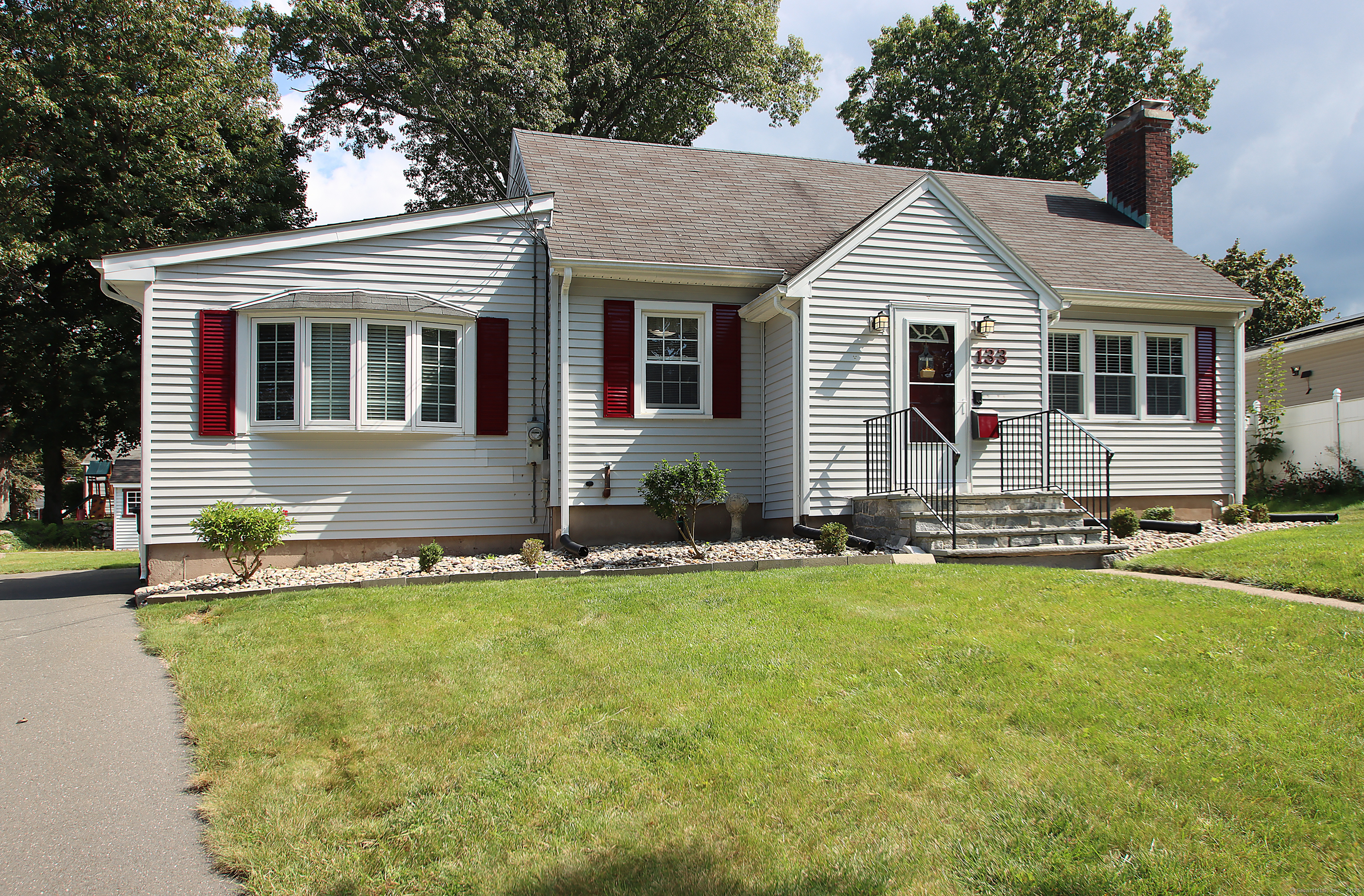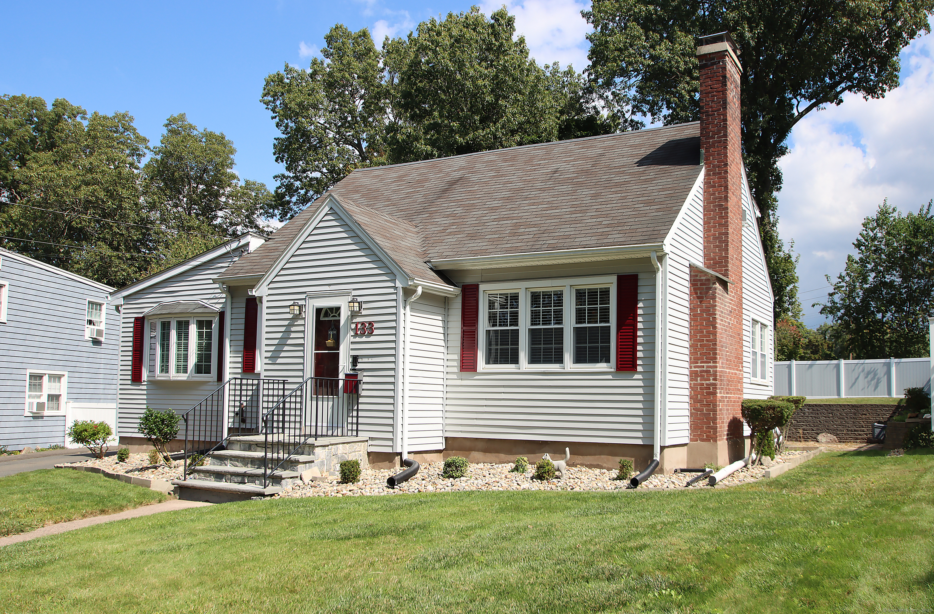 This oversized cape home has been well maintained and updated. The first floor additional Family room adds plenty of space for entertaining with a beautiful fieldstone fireplace. The kitchen features corian counters, hardwood floors and is open to the family room and dining area. The living room also features a fireplace and hardwood floors. The first floor bedroom is being used as an office. A full updated bath with tub/shower completes the first floor. Upstairs are two additional bedrooms with an updated half bath. The basement is partially finished and adds additional living space. The beautiful trek deck and patio adds great space for outdoor entertaining. Kloter Farm shed in back yard for additional storage. Private yard with vinyl fencing and nice lawn area for backyard games. Newer 100 amp Electrical, with generator hook up, newer windows, roof, boiler, oil tank, and granite front steps with railings. Come and see this Beautiful Home!