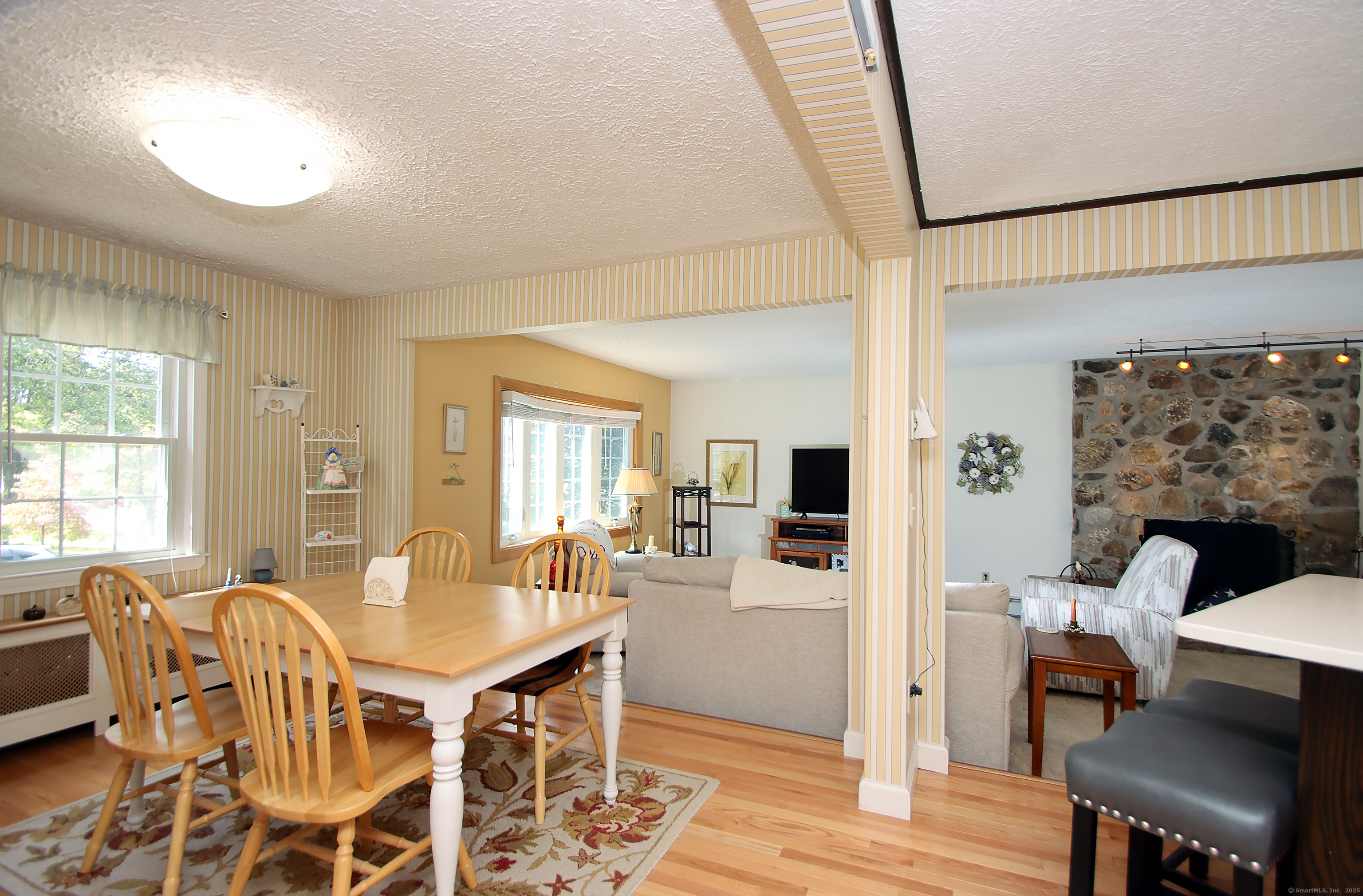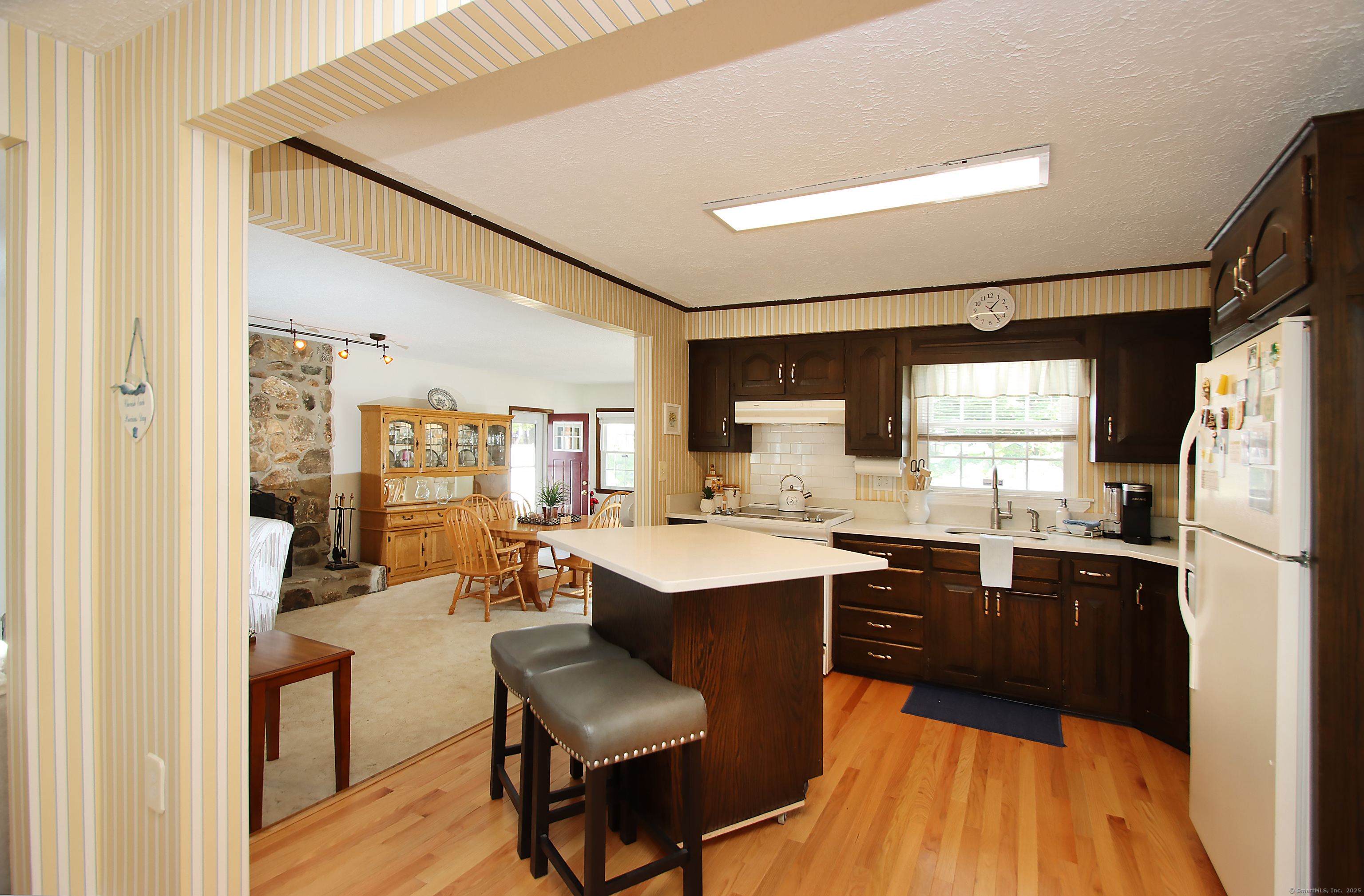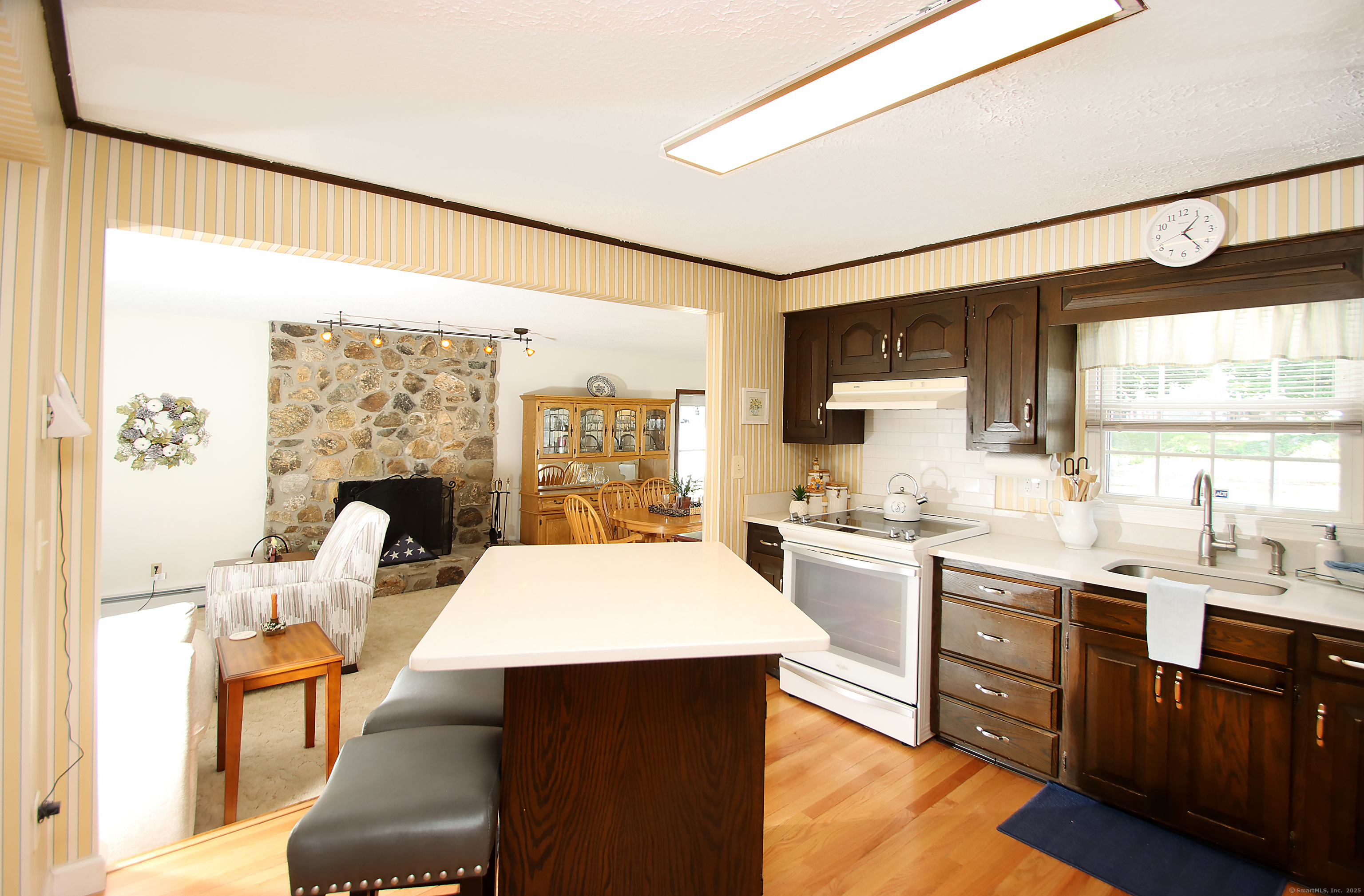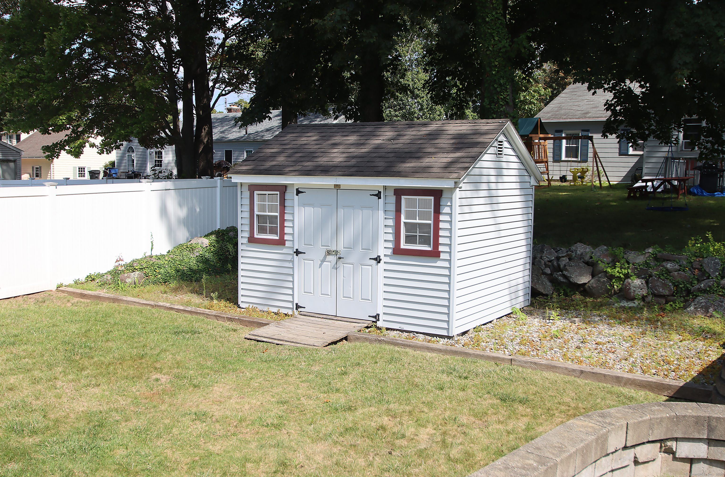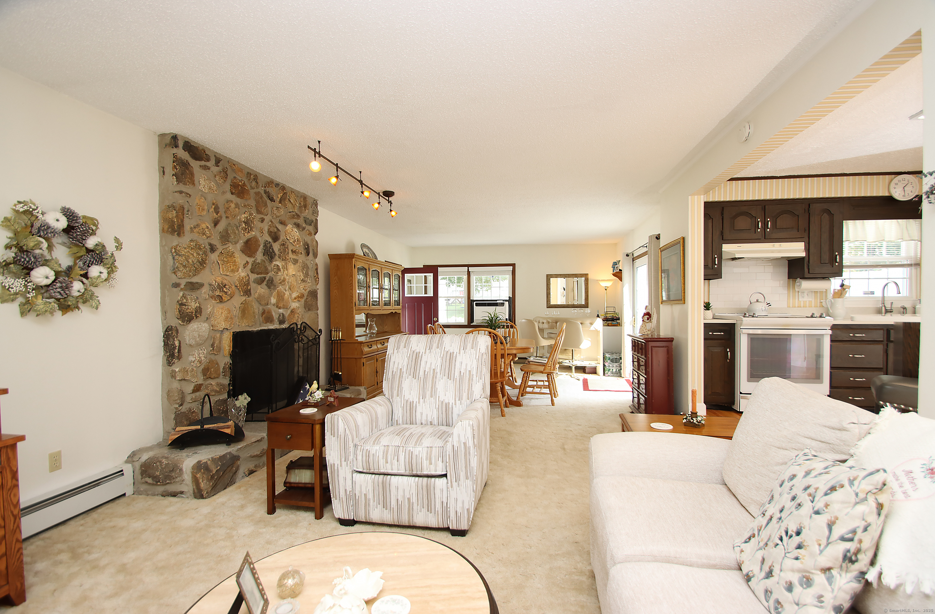 This oversized cape home has been well maintained and updated. The first floor additional Family room adds plenty of space for entertaining with a beautiful fieldstone fireplace. The kitchen features corian counters, hardwood floors and is open to the family room and dining area. The living room also features a fireplace and hardwood floors. The first floor bedroom is being used as an office. A full updated bath with tub/shower completes the first floor. Upstairs are two additional bedrooms with an updated half bath. The basement is partially finished and adds additional living space. The beautiful trek deck and patio adds great space for outdoor entertaining. Kloter Farm shed in back yard for additional storage. Private yard with vinyl fencing and nice lawn area for backyard games. Newer 100 amp Electrical, with generator hook up, newer windows, roof, boiler, oil tank, and granite front steps with railings. Come and see this Beautiful Home!
