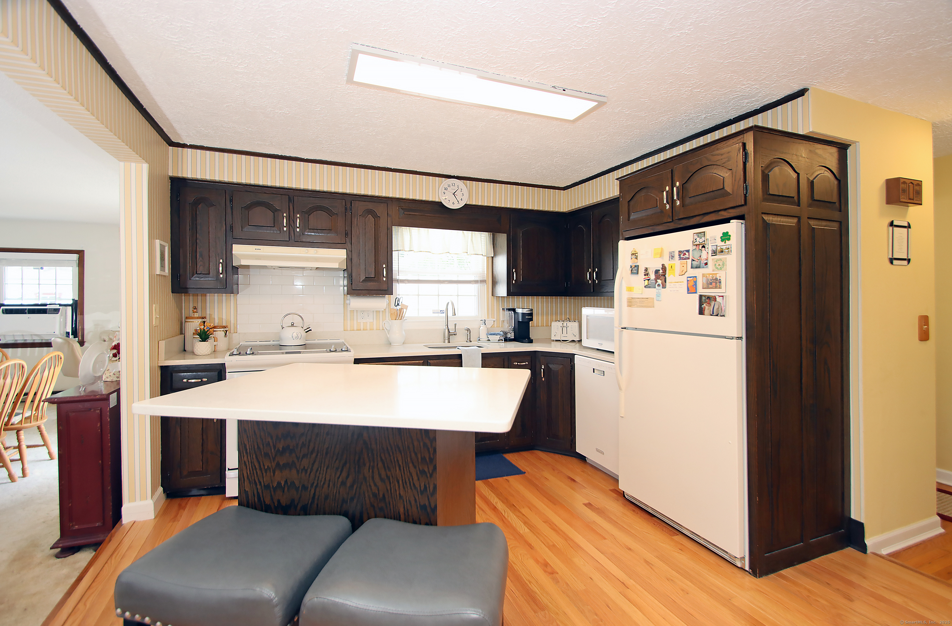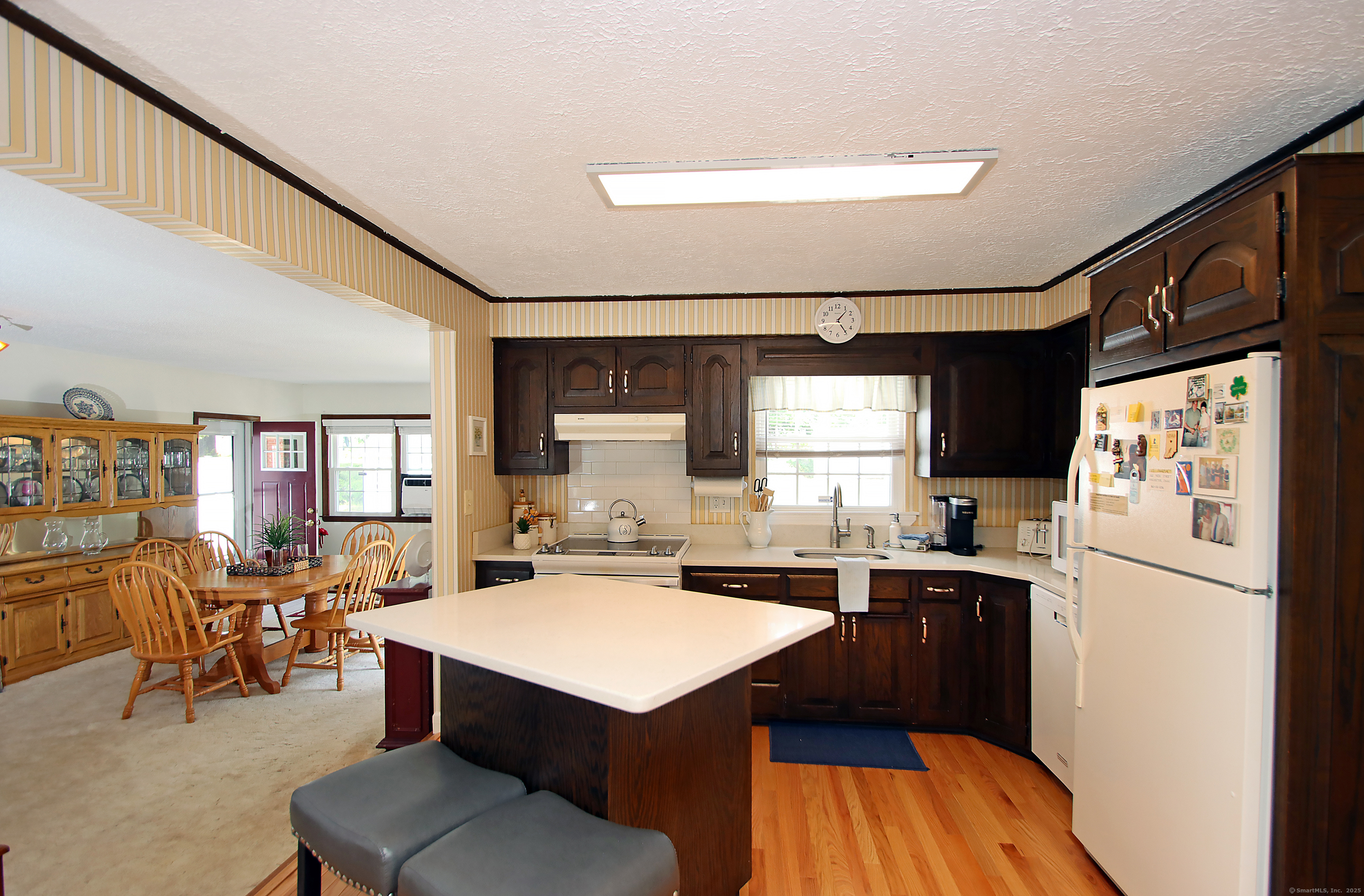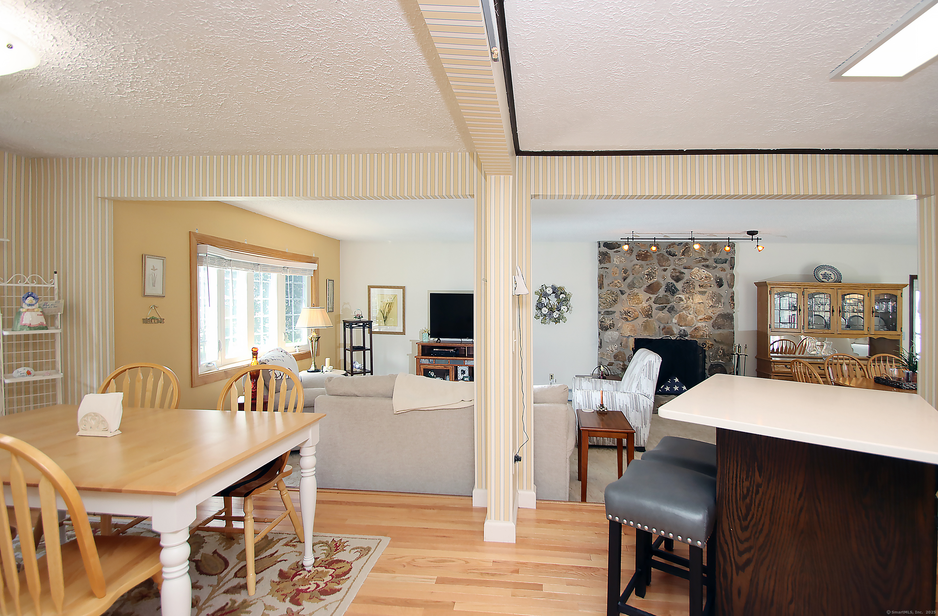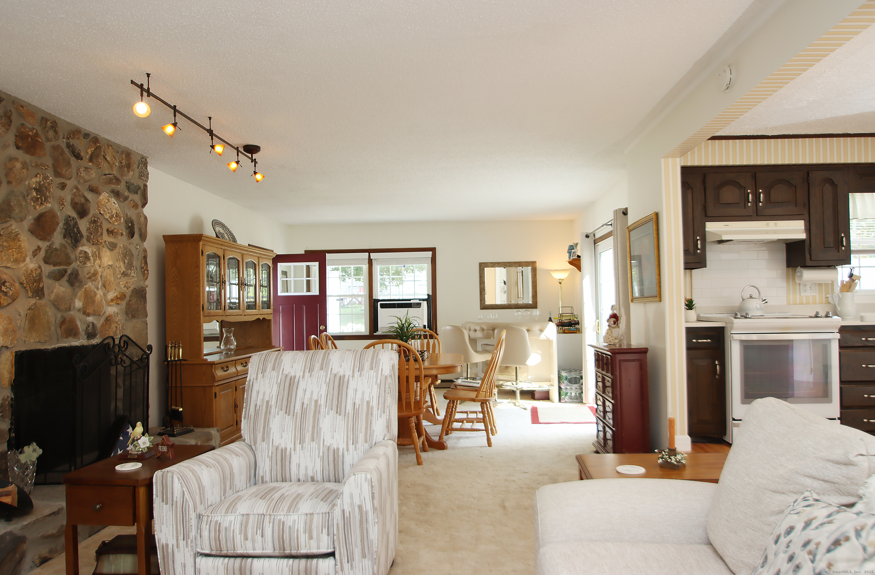 This oversized cape home has been well maintained and updated. The first floor additional Family room adds plenty of space for entertaining with a beautiful fieldstone fireplace. The kitchen features corian counters, hardwood floors and is open to the family room and dining area. The living room also features a fireplace and hardwood floors. The first floor bedroom is being used as an office. A full updated bath with tub/shower completes the first floor. Upstairs are two additional bedrooms with an updated half bath. The basement is partially finished and adds additional living space. The beautiful trek deck and patio adds great space for outdoor entertaining. Kloter Farm shed in back yard for additional storage. Private yard with vinyl fencing and nice lawn area for backyard games. Newer 100 amp Electrical, with generator hook up, newer windows, roof, boiler, oil tank, and granite front steps with railings. Come and see this Beautiful Home!
