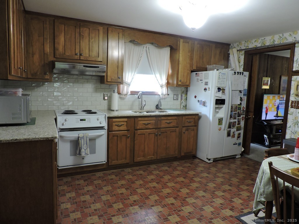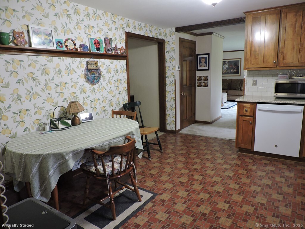 Great location. Close to shopping, highway and much more. When you walk into this house you feel like your already home. Enter through the side door to the den which has a beautiful fireplace. Right off the den is either a first floor bedroom with a full bath, an in home office, in-law or anything else you want to use this room for. Off that room is an enclosed porch. The kitchen offers an updated granite countertop, tile backsplash and appliances. Huge dining room with built-in hutch. The front to back living room has a beautiful fireplace. Upstairs there are three bedrooms. Primary bedroom with 3 closets and two other bedrooms. The closet nears the hall in the primary bedroom is plumbed for a half bath. The basement offers the ptential for a finished room with a fireplace. Two oil tanks, 200 amp service. Just bring your finishing touches to make this home your own.