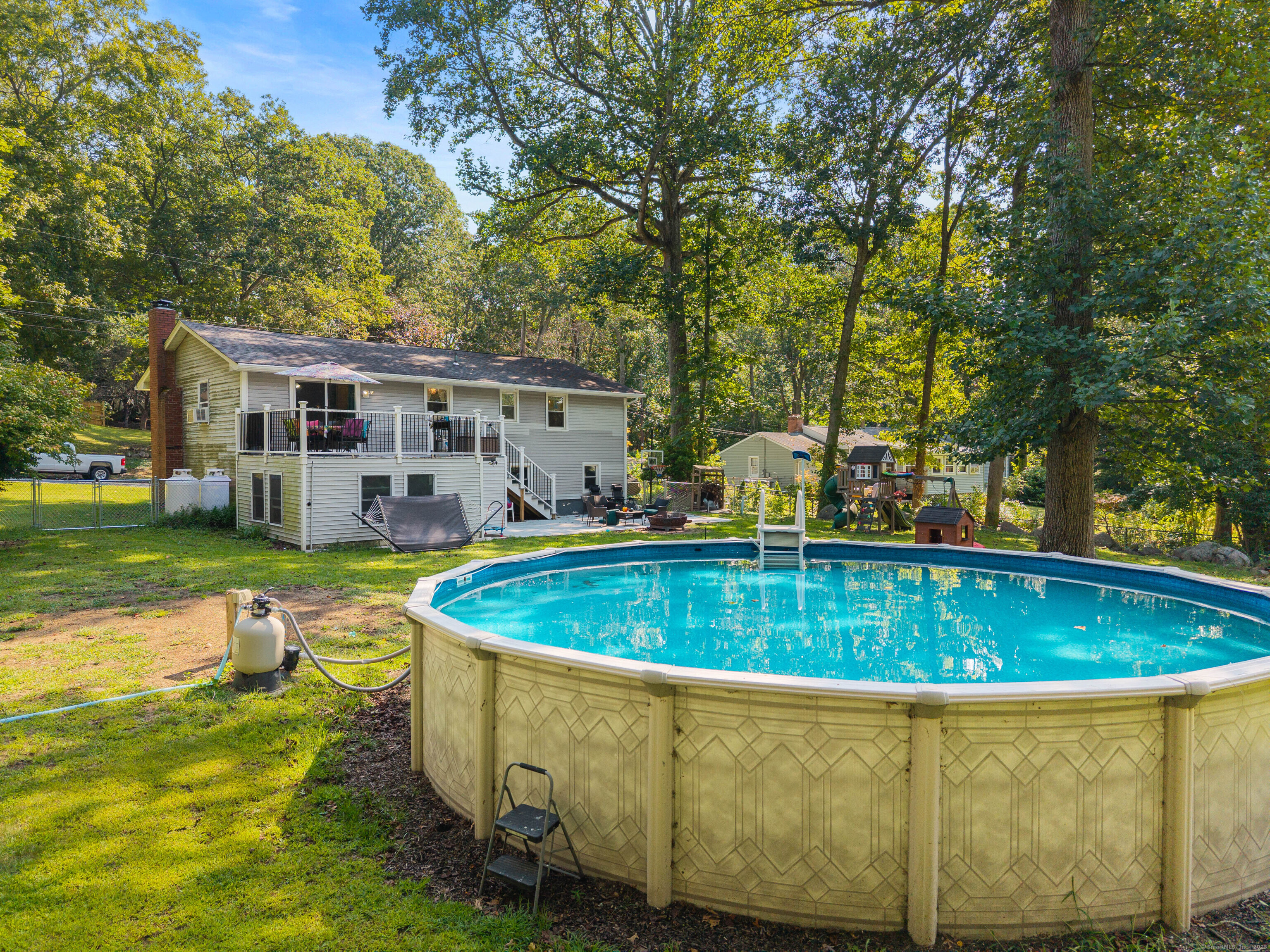 Discover comfort and convenience in this beautifully updated 3-bedroom, 1.5-bath raised ranch. Enjoy a cozy fireplaced living room, gleaming refinished hardwood floors, and a modernized kitchen with updated appliances. The home features an efficient on-demand propane heating system. Enjoy summer fun and relaxation in the spacious private backyard featuring an above-ground pool, perfect for cooling off and entertaining guests in your backyard oasis. 2-car garage offers ample storage and parking. Conveniently located near the sub base, shopping, and major employers, this home blends suburban tranquility with accessibility. Schedule a showing today!