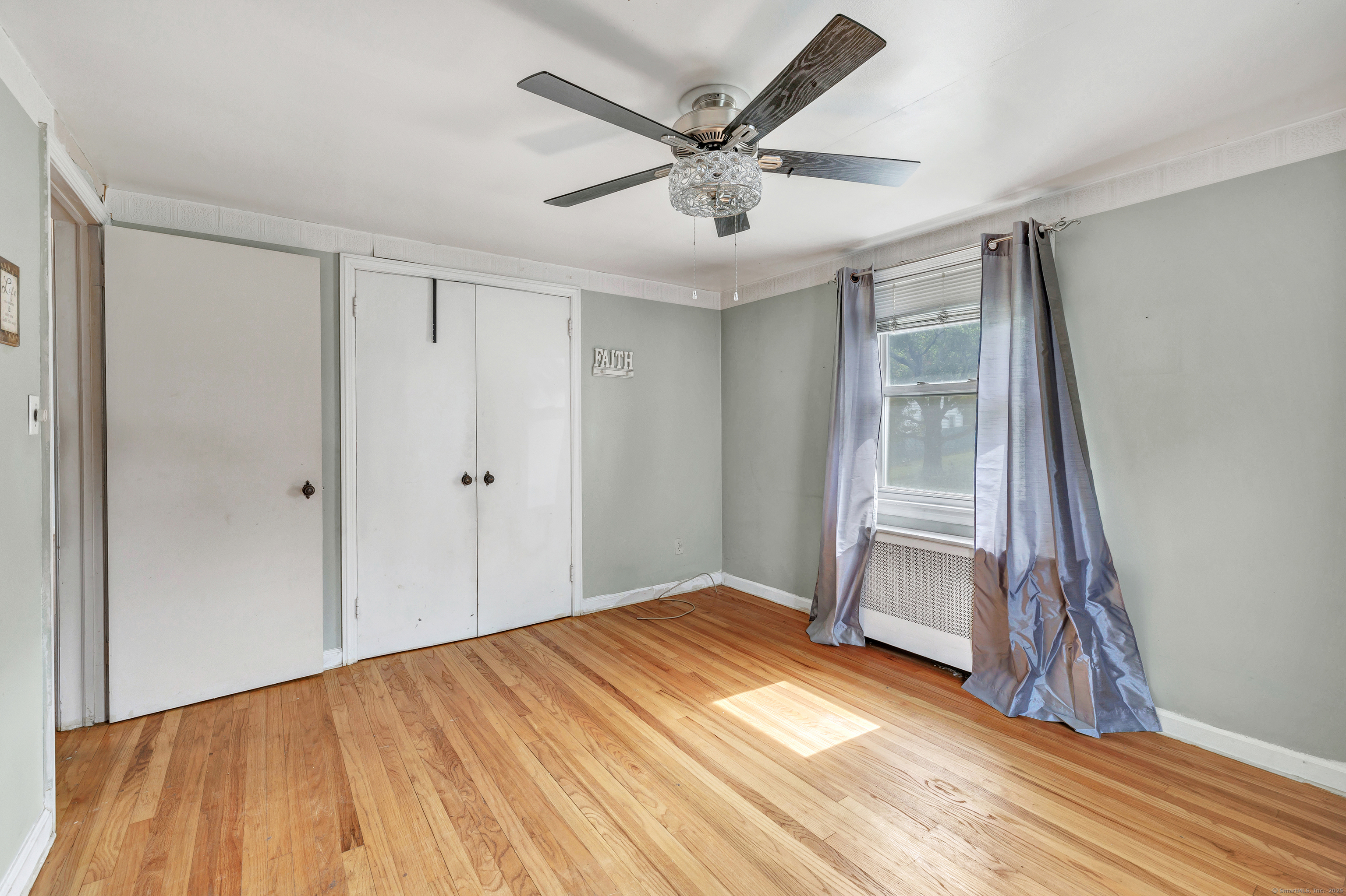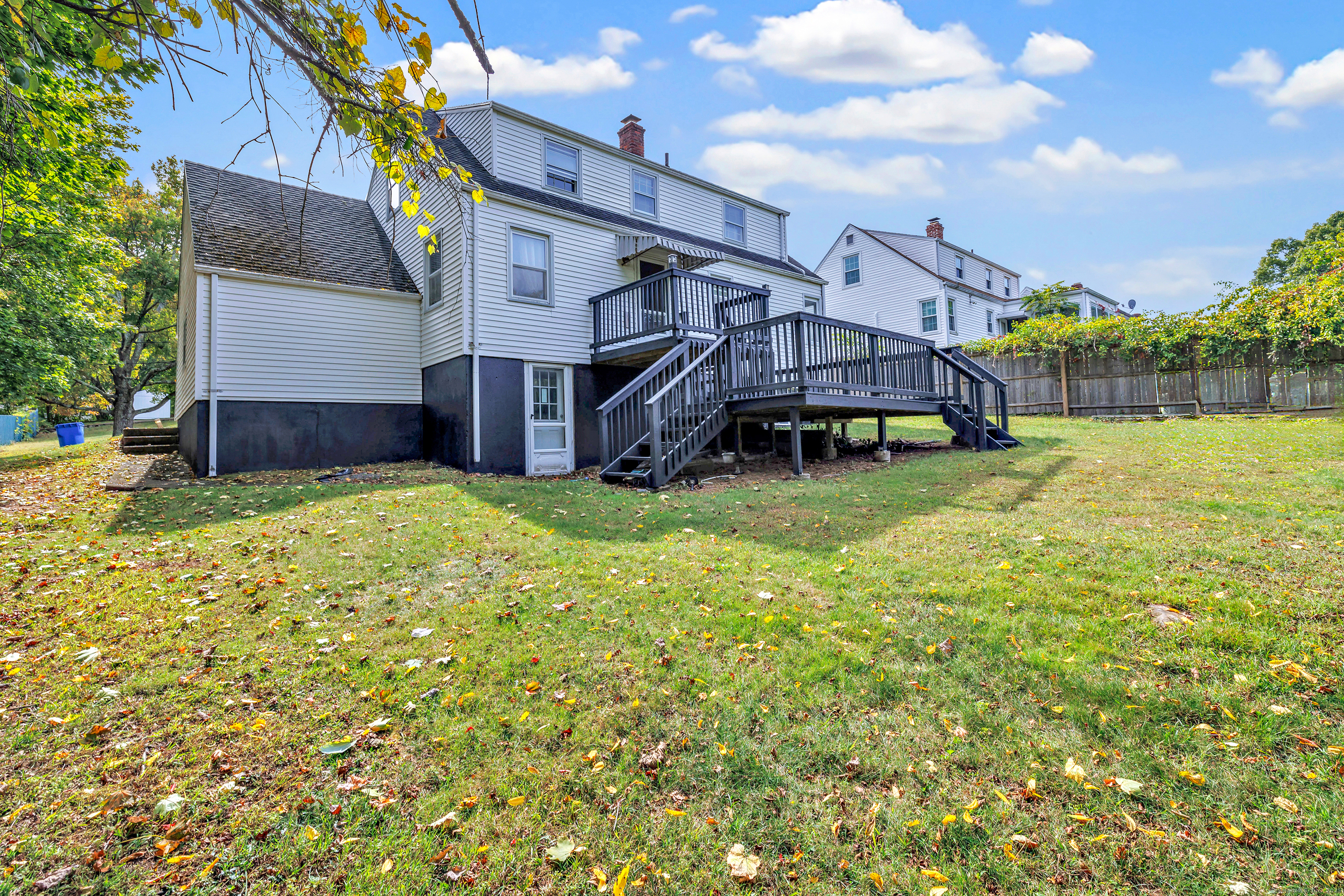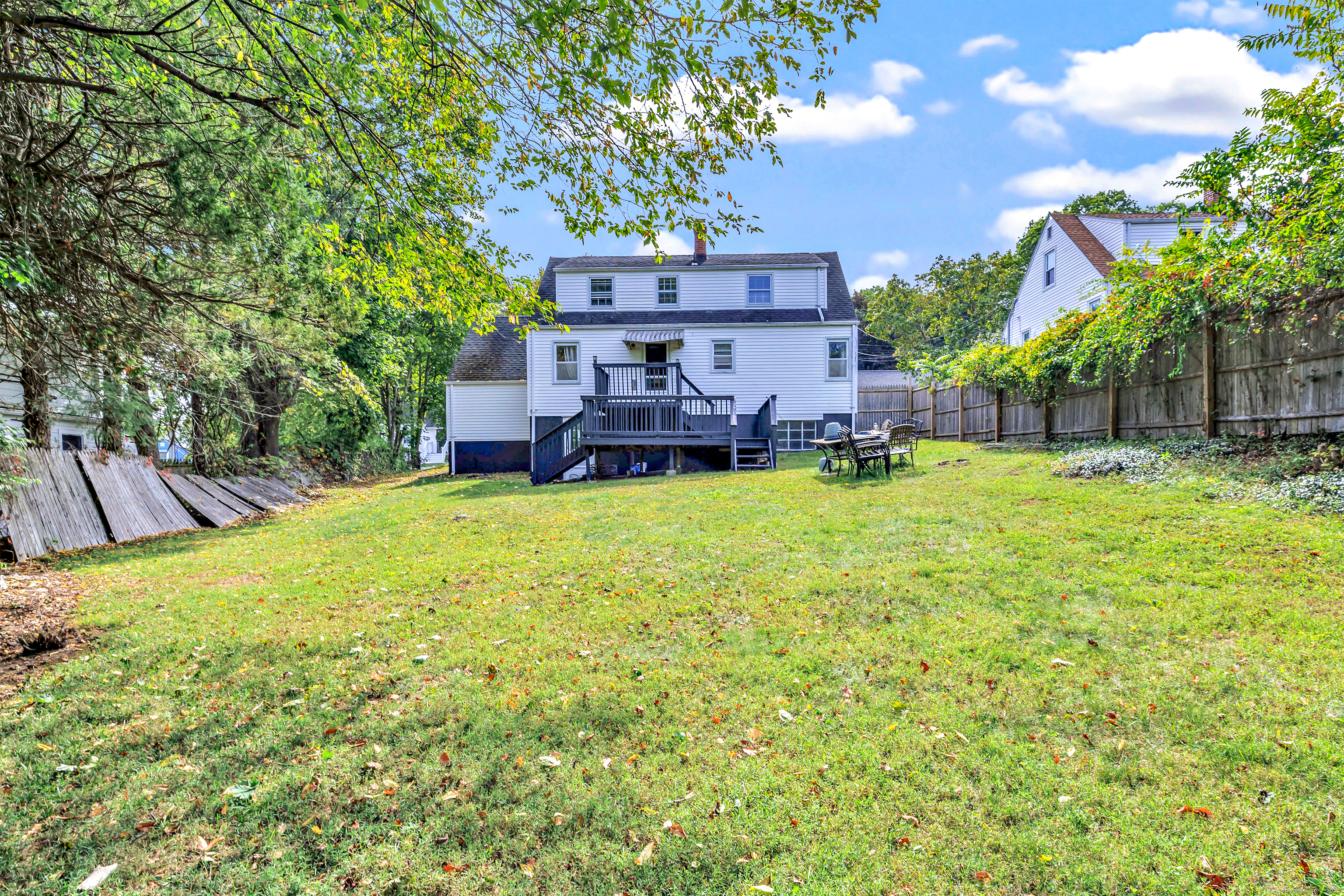 Two bedroom,1 full bath cape in peaceful level setting in Hamden with loads of potential. Homeowners looking for an opportunity to build equity please take notice. Full set of stairs leading to unfinished, fully floored and dormered attic with plumbing and electric for two rooms with full bath to add 500 sf of living space if desired. Lower level is finished space with bare concrete floors- (Old hot water heater let go and floors had to be removed). A small investment can make this space comfortable living space once again. The main living area is mostly hardwood floors with laminate floors in kitchen and tile in updated bathroom. Kitchen has electric stove, refrigerator and microwave. Refrigerator is 3 yrs. old and countertops are corian. Two bedrooms with closets and ceiling fans are furthest away from the Kitchen and Living room. Bathroom updated with newer tile, pedestal sink and walk-in shower. Large Living room with convenient serving portal from kitchen and a dining area finish off the main floor. Mechanicals in great condition: Roof- 10 yrs old, Furnace- 10 yrs old and maintained regularly. Oil tank 3 years old. 2 tier huge deck in backyard- great spot for family occasion or social gatherings. Minutes from Southern CT. State University, close to Yale New Haven and University of New Haven and local conveniences include restaurants, shopping and access to major roadways including Merrit Pkwy, Rt. 1 and 95. Must see house. Easy to show. Come take a look.