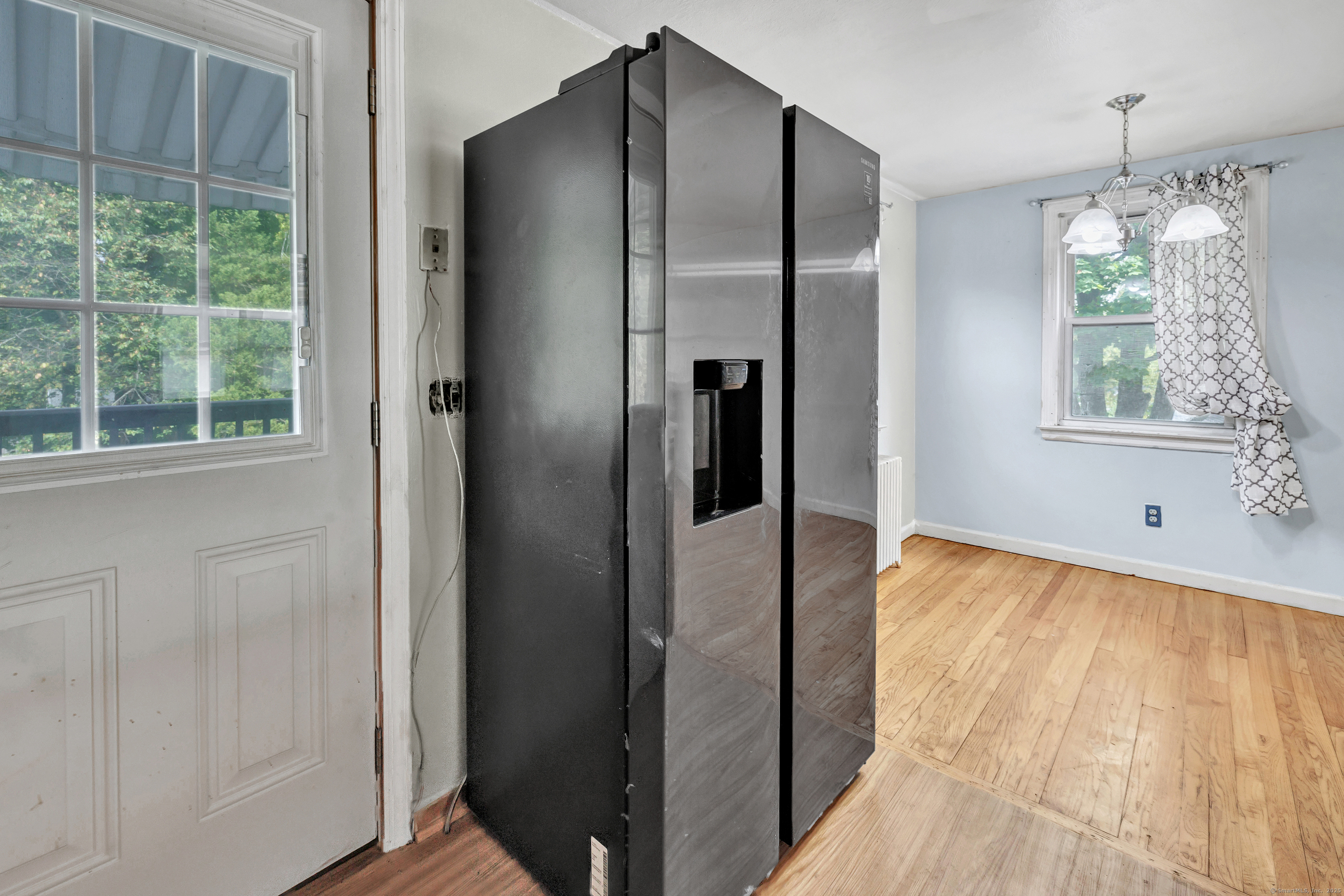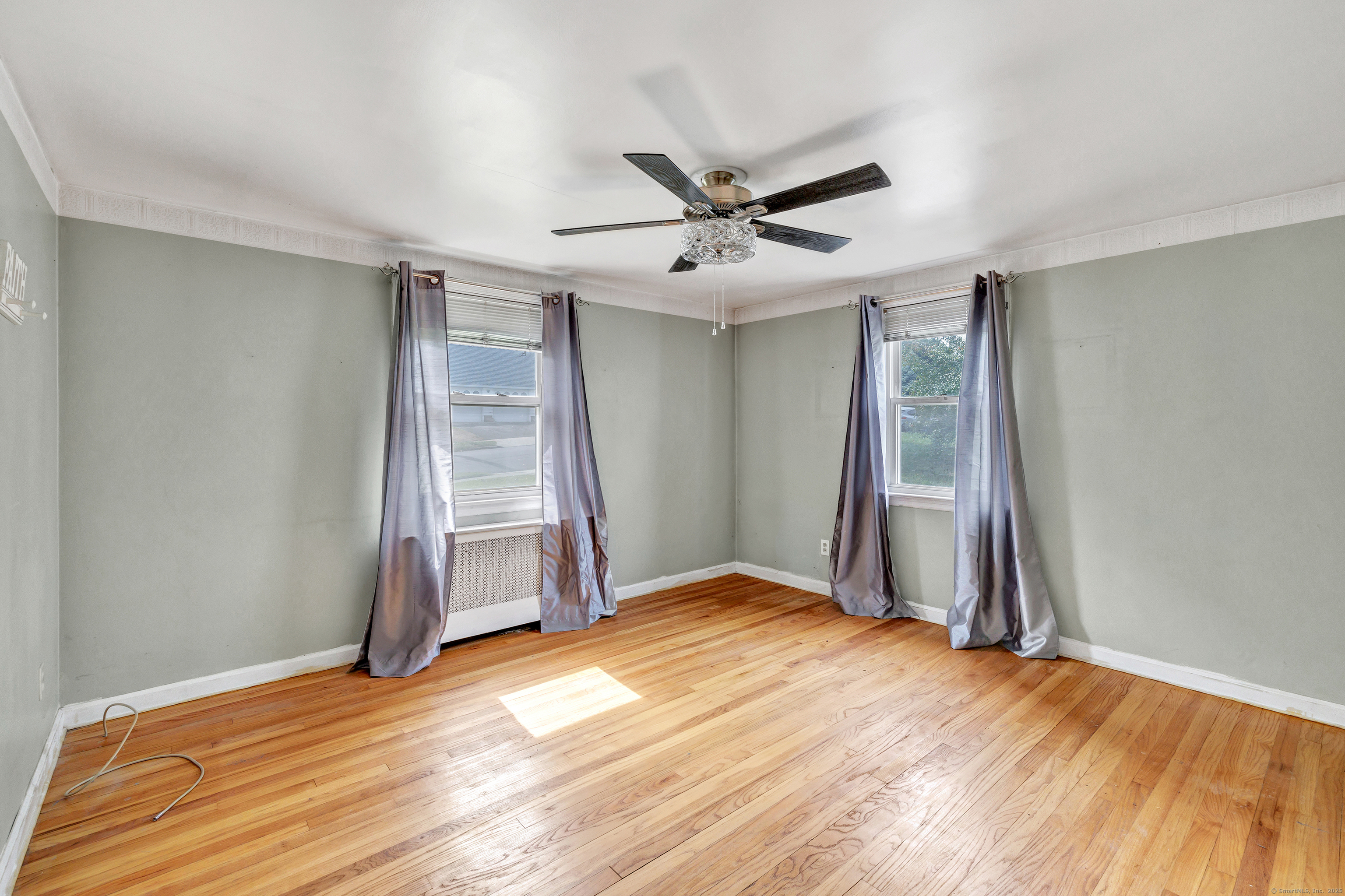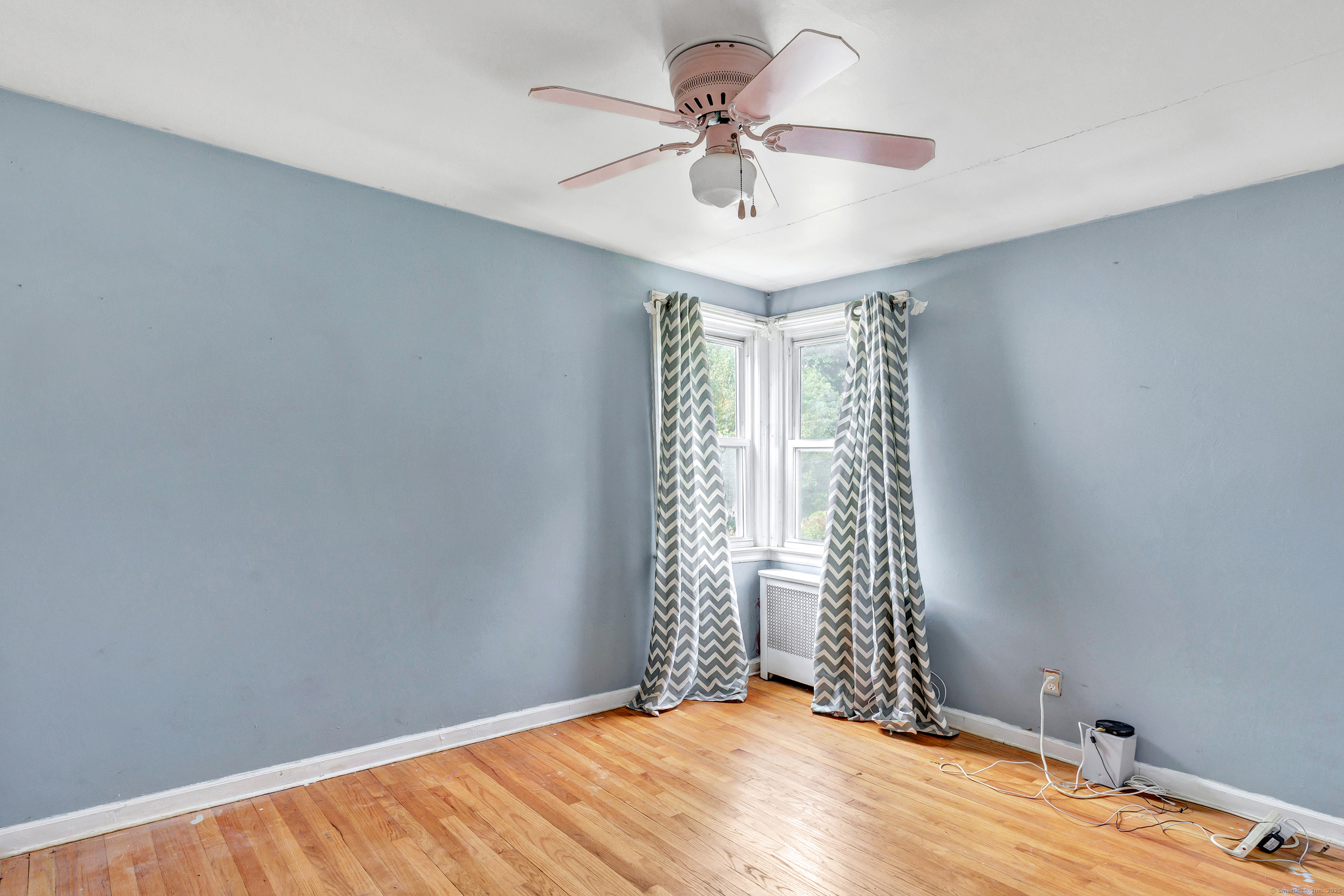 Two bedroom,1 full bath cape in peaceful level setting in Hamden with loads of potential. Homeowners looking for an opportunity to build equity please take notice. Full set of stairs leading to unfinished, fully floored and dormered attic with plumbing and electric for two rooms with full bath to add 500 sf of living space if desired. Lower level is finished space with bare concrete floors- (Old hot water heater let go and floors had to be removed). A small investment can make this space comfortable living space once again. The main living area is mostly hardwood floors with laminate floors in kitchen and tile in updated bathroom. Kitchen has electric stove, refrigerator and microwave. Refrigerator is 3 yrs. old and countertops are corian. Two bedrooms with closets and ceiling fans are furthest away from the Kitchen and Living room. Bathroom updated with newer tile, pedestal sink and walk-in shower. Large Living room with convenient serving portal from kitchen and a dining area finish off the main floor. Mechanicals in great condition: Roof- 10 yrs old, Furnace- 10 yrs old and maintained regularly. Oil tank 3 years old. 2 tier huge deck in backyard- great spot for family occasion or social gatherings. Minutes from Southern CT. State University, close to Yale New Haven and University of New Haven and local conveniences include restaurants, shopping and access to major roadways including Merrit Pkwy, Rt. 1 and 95. Must see house. Easy to show. Come take a look.