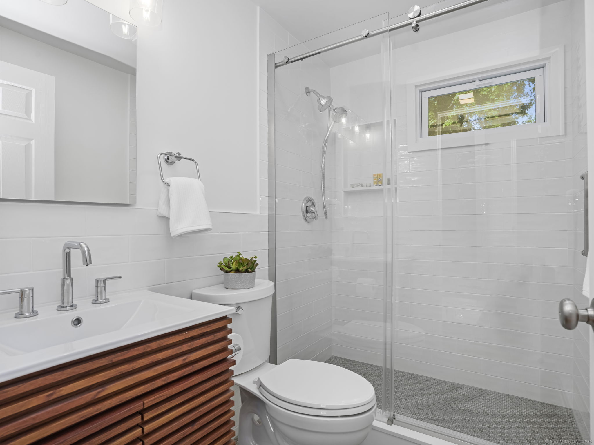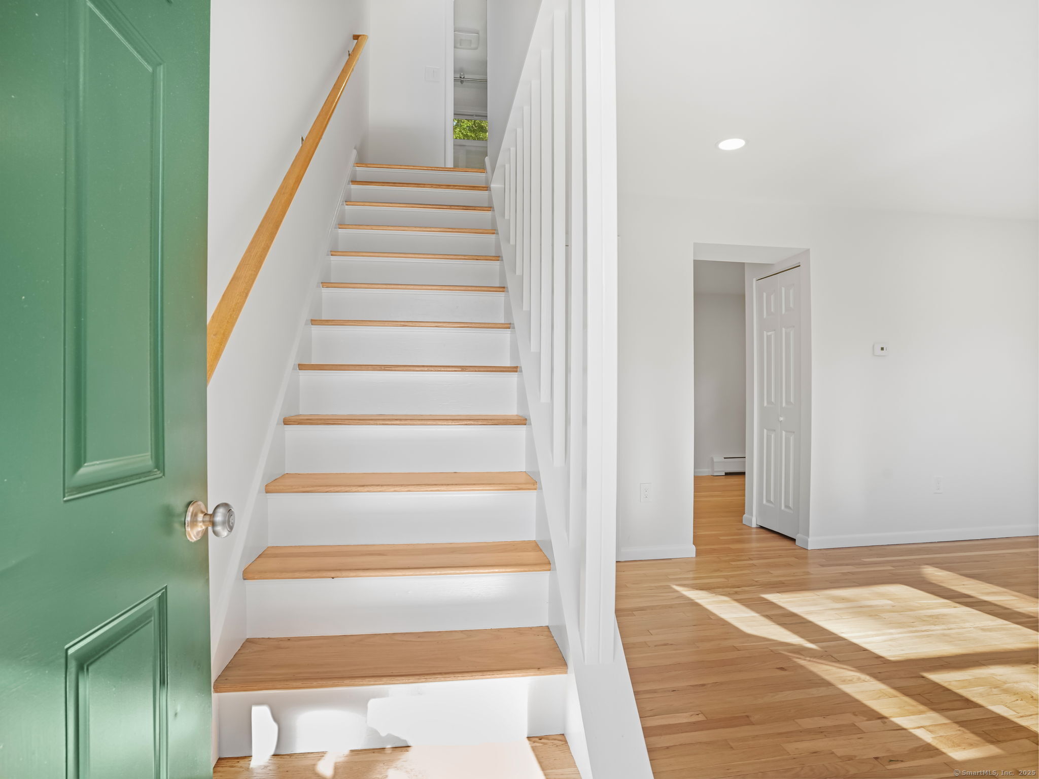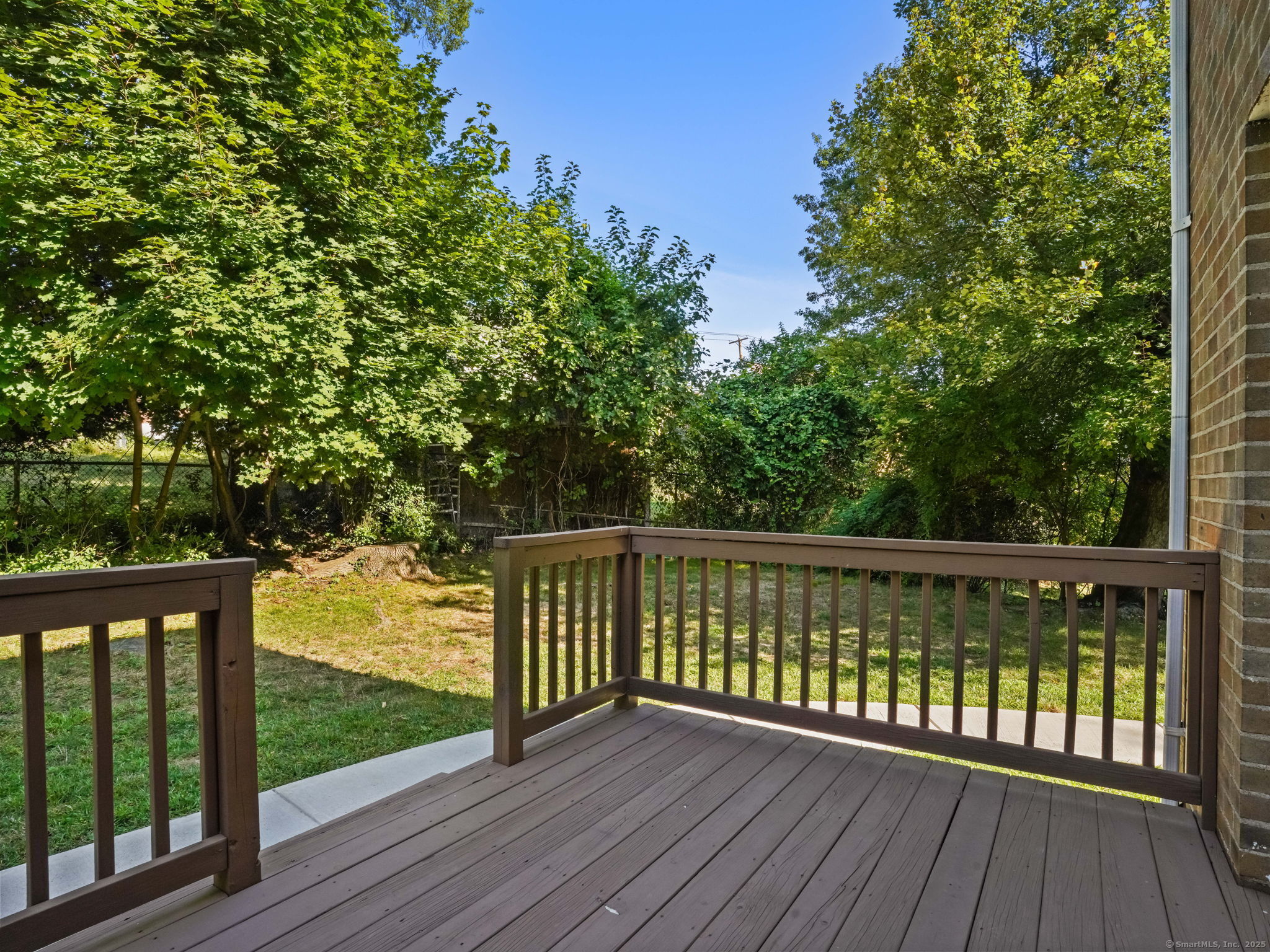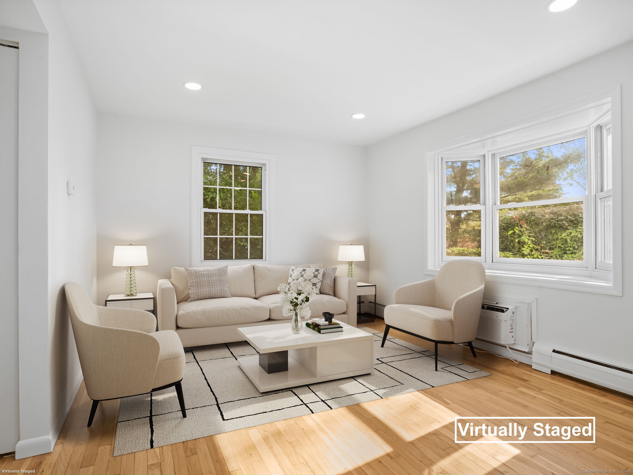 Beautifully renovated with refinished hardwood floors and recessed lighting throughout, this sun-filled end-unit townhouse blends comfort with a fresh, modern feel. The main level showcases a stunning brand-new kitchen with crisp white cabinetry, stainless steel appliances, granite countertops, and a subway tile backsplash. The adjoining breakfast nook opens to a private deck and backyard, creating an ideal spot for both everyday living and entertaining. A chic powder room with penny tile flooring, a laundry closet with washer/dryer, and two convenient storage closets add thoughtful functionality. Upstairs, two spacious bedrooms share an elegantly redesigned full bath with penny tile flooring and a striking walk-in shower framed by sliding glass doors. A hallway linen closet adds extra storage, while brand-new air conditioners ensure comfort year-round. The home also includes one assigned parking space (#58), additional guest parking, and a storage area in the neighboring building's basement. Rent covers heat, hot water, sewer, trash pickup, and grounds maintenance. Ideally located near shopping, schools, parks, the train station, and major commuting routes, this home offers the perfect blend of privacy, style, and convenience.