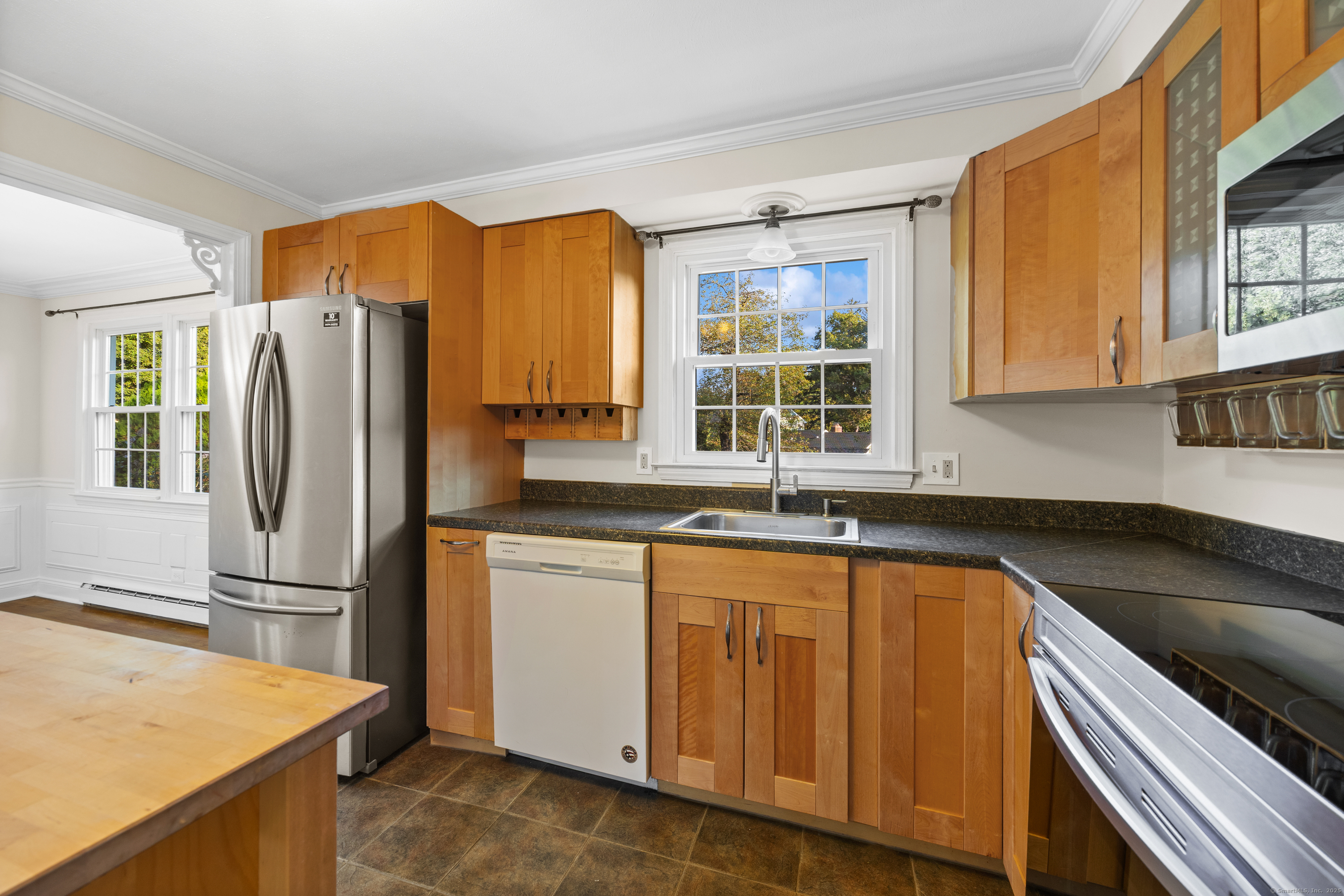 Perfectly positioned in a desirable neighborhood with sidewalks and a welcoming sense of community, this beautiful home blends timeless charm with thoughtful modern updates. As you step inside, you're greeted by a bright, open floor plan where ample natural light pours through the newer windows. The spacious, remodeled kitchen is thoughtfully designed with central island, cabinet organizers and all newer appliances. It flows effortlessly into a generous dining area featuring custom molding and a comfortable living room, creating an ideal space for everyday living and entertaining. The main floor includes a spacious primary bedroom with a full bath, two additional well-sized bedrooms - all with hardwood flooring- and a second full bathroom. Downstairs, the fantastic walk-out lower level offers a large family room with built-in shelving and a cozy fireplace, half bath and laundry. Step outside to the fabulous, private backyard - a perfect setting for outdoor activities, games, and seasonal enjoyment. This home boasts an impressive list of recent improvements, including roof 2024, driveway 2025, siding 2020, windows on main level & garage 2020, garage doors 2025, garage openers 2020-2024, kitchen appliances 2023-2024, washer 2025, sliding door 2023. The entire interior has also been freshly painted. Equipped with solar panels, this residence offers energy efficiency and long-term saving. Truly a turnkey and move-in ready!