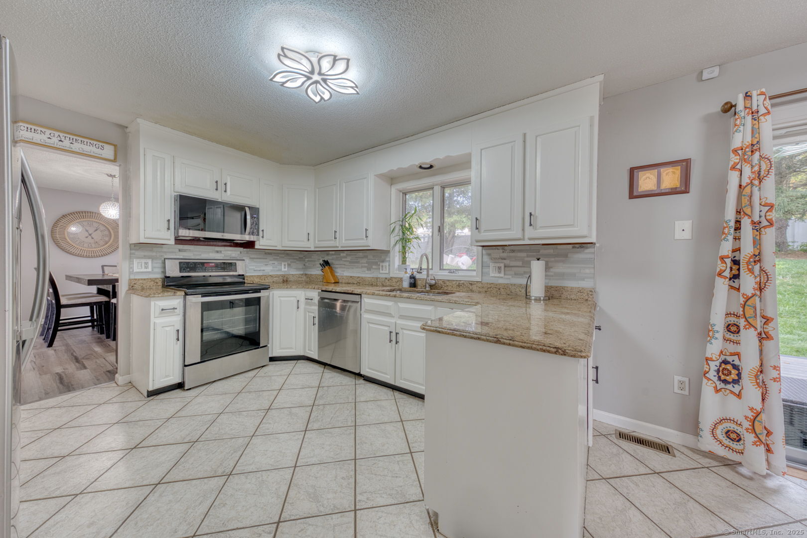 Welcome to this contemporary-style home located at 11 Kupchunos Dr in South Windsor, CT. Featuring 4 spacious bedrooms and 2.5 bathrooms, this property offers a well-designed and functional layout. The primary bedroom suite includes a full bath with double sinks and a skylight, creating a bright and private retreat. All bedrooms on the upper level have new carpeting for added comfort. An open floor plan connects the living room and dining area, perfect for everyday living and entertaining. The family room features a fireplace for a warm, inviting atmosphere, and the kitchen offers granite countertops and ample workspace. Enjoy the outdoors with a newly fenced backyard, a low-maintenance Trex deck, and a new front porch. A first-floor laundry room adds daily convenience, while the finished basement provides extra space for a home office, playroom, or recreation area. Ideally located near restaurants, shopping, local attractions, and major highways, this home offers comfort and convenience in a sought-after neighborhood.