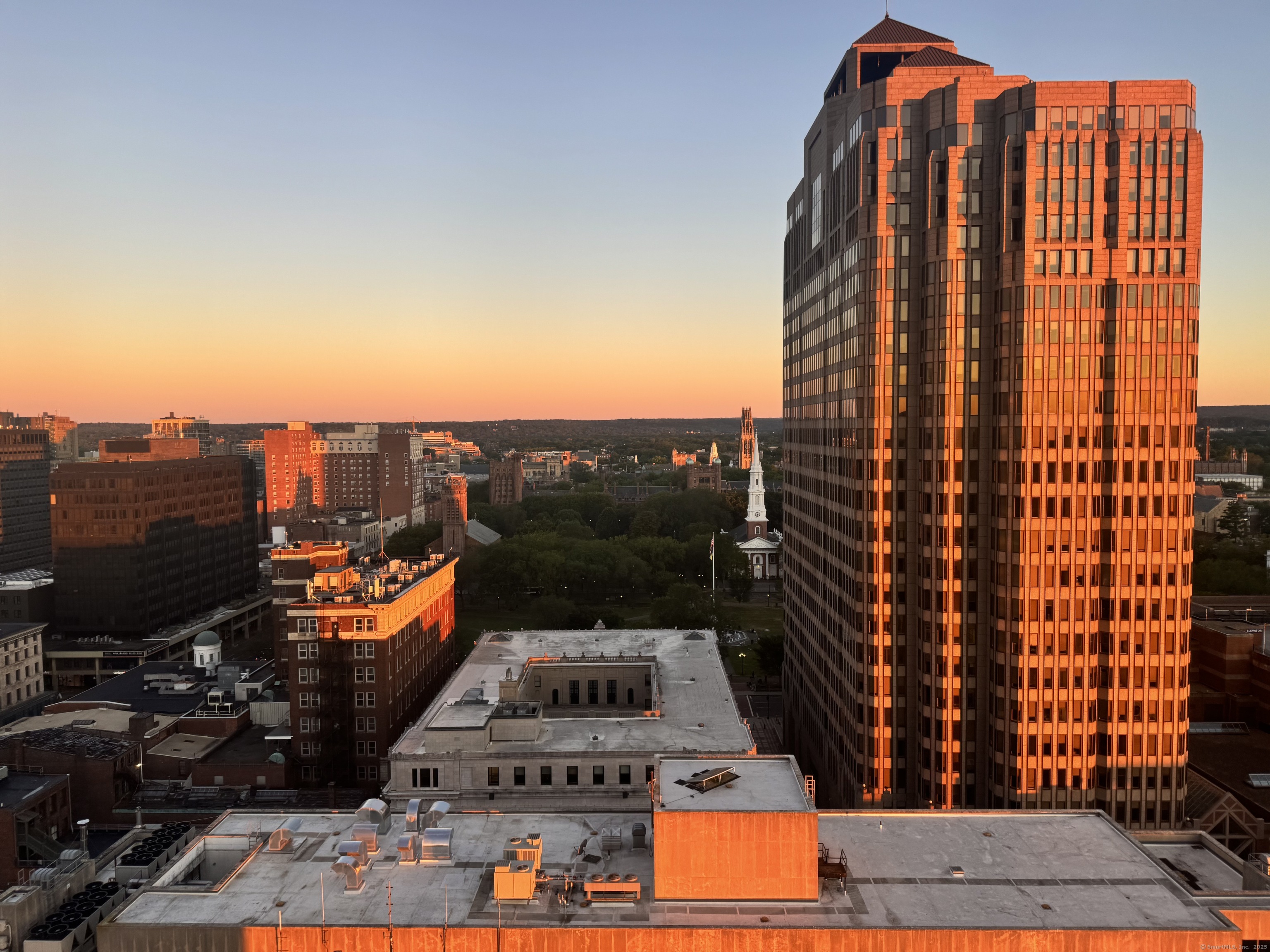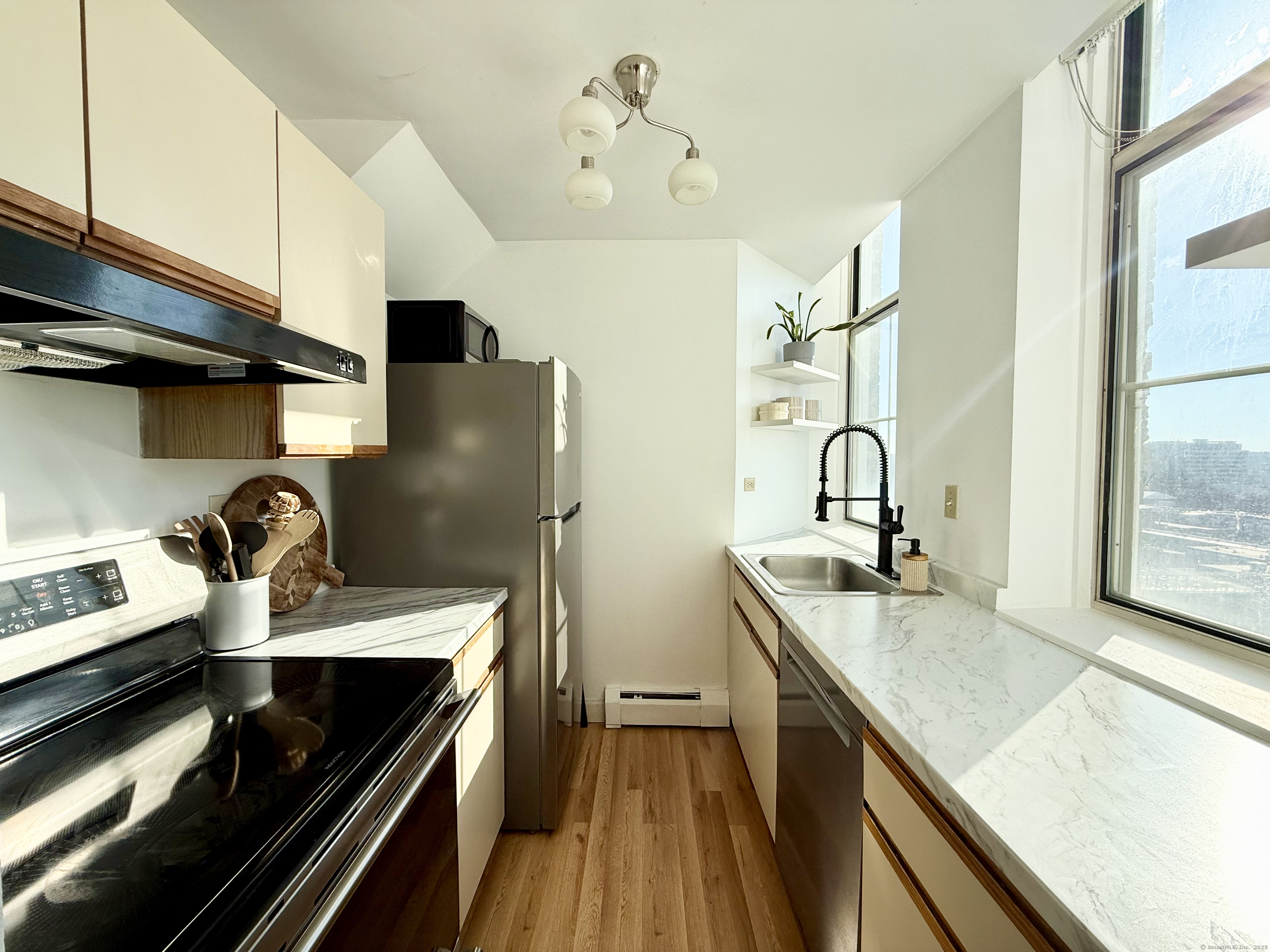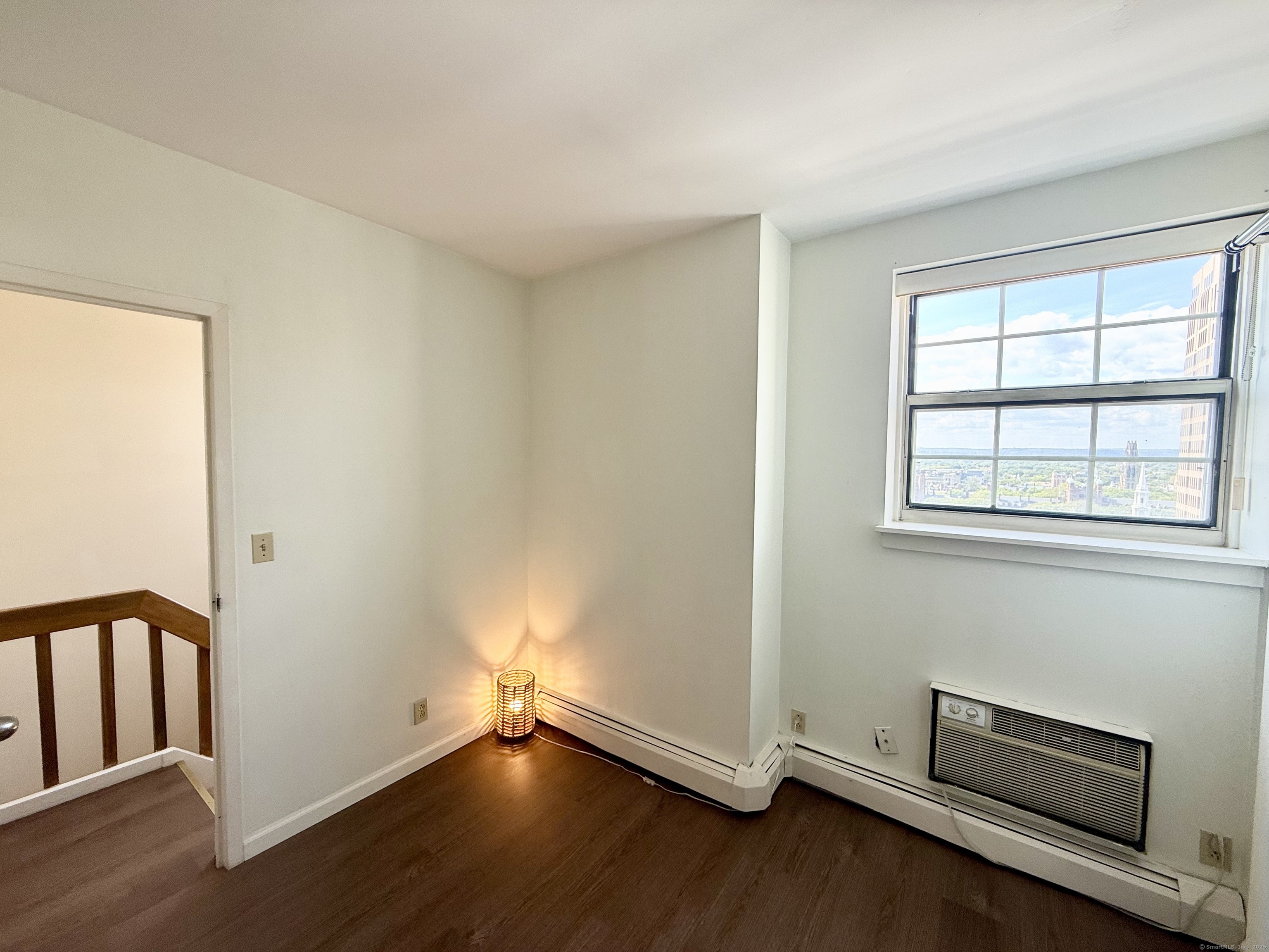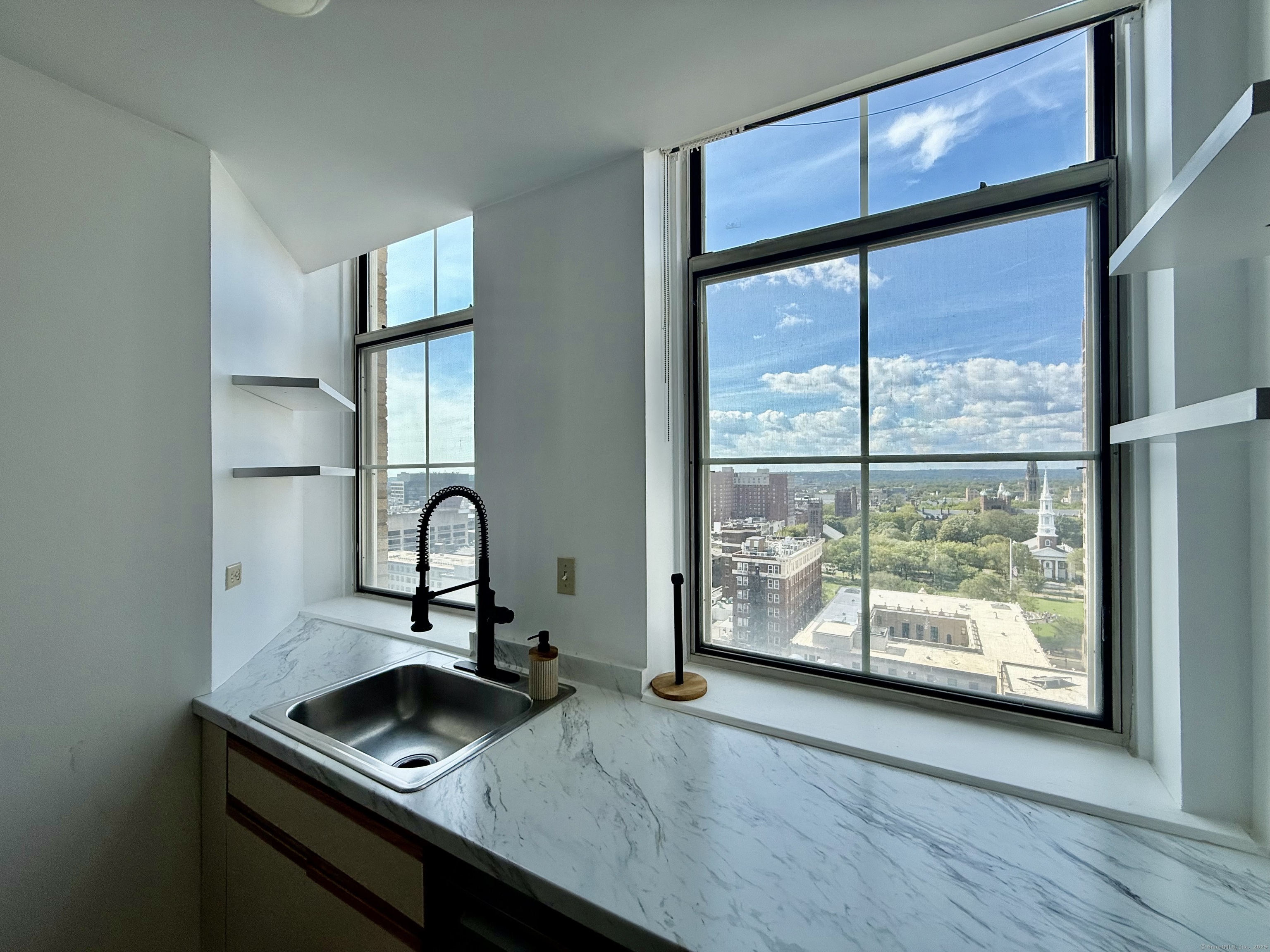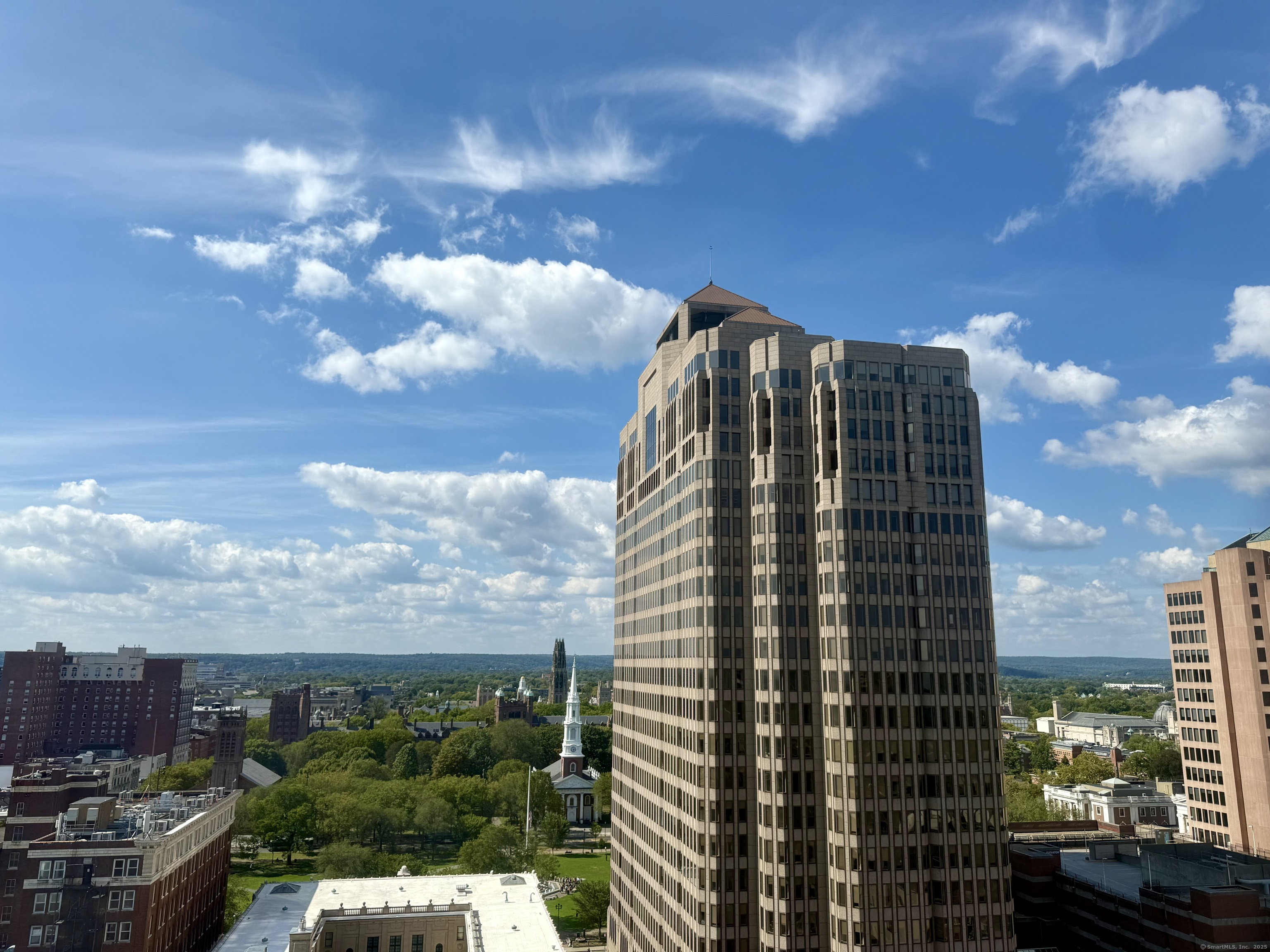 Welcome to the best rental unit at Center Court-the heart of Downtown! This sun drenched, 2BR/1.5 BA, duplex condo does not disappoint; located on the top floor with oversized windows, ~10 ft ceilings, laminate wood floors and amazing natural light. The 1st fl wows with the open living/dining room & expansive city/park views that will inspire. The revamped kitchen features newer stainless steel appliances & corian counters, and a convenient half bath completes the 1st fl. The 2nd fl features 2 bedrooms with great closet space and a beautifully refreshed tile bathroom with tub/shower. Heat, hot water, wall AC units included are included! Tenants are responsible for electricity & internet. The complex offers secured entry, two elevators, fitness room, conference room, package delivery room, and shared (card op laundry) is located in the basement. Conveniently located next to Yale, Court Houses, museums restaurants, shopping & more. Look no further, this chic condo has it all!