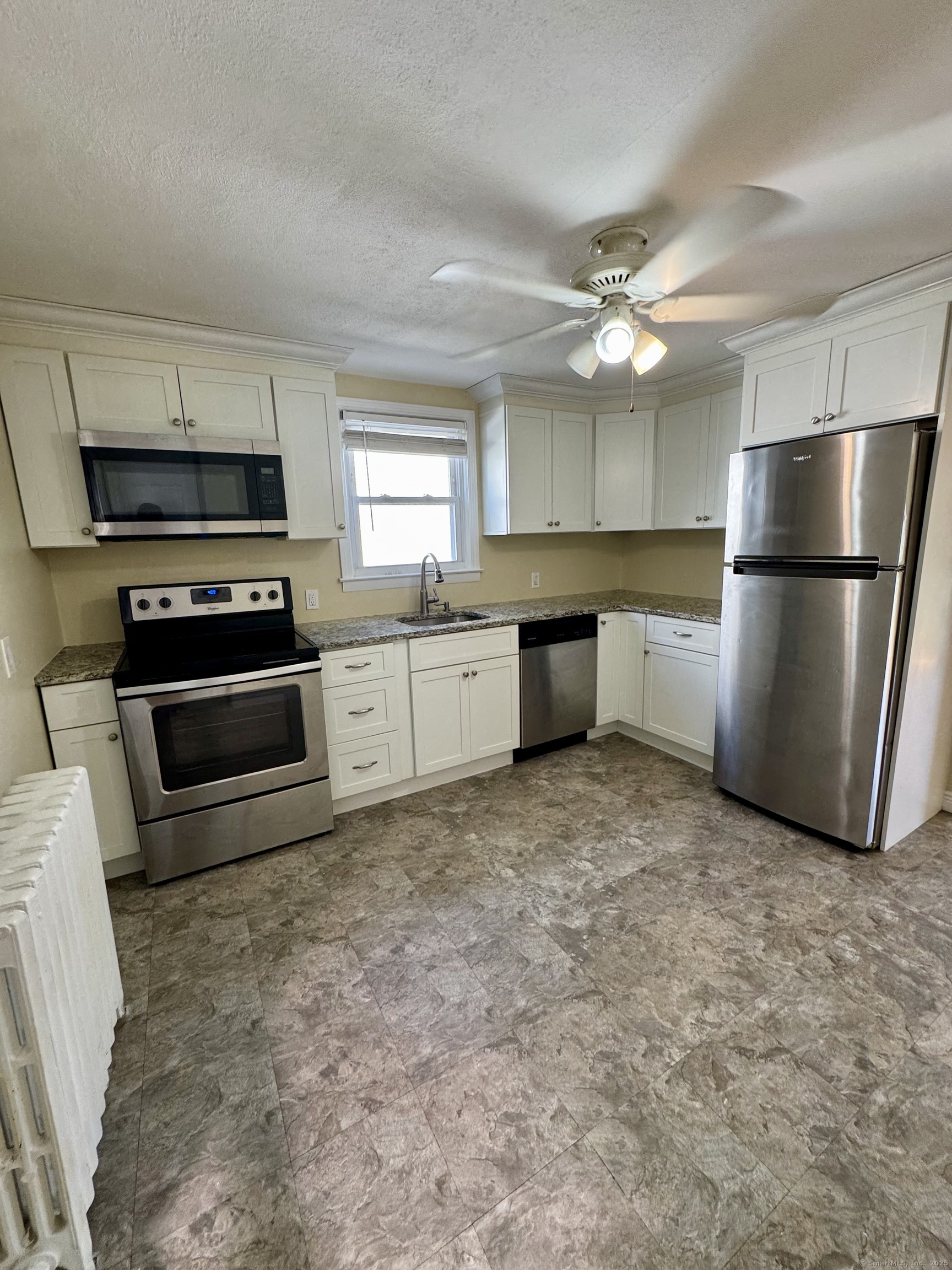 This charming two-bedroom and two-bathroom single family home has been recently renovated. There is a potential for additional living space in the basement with access to a full bathroom. Interior features updated appliances, freshly painted, and gleaming hardwood floors throughout. Tenants have access to a private back porch, and a full driveway with a garage. The home is conveniently located near highways, bus-line, shopping/dining, library, walking trails, and the newly built Wilson Park which is just a few minutes' walk away. The home is also close to Windsor town center and green which hosts free events throughout the year.