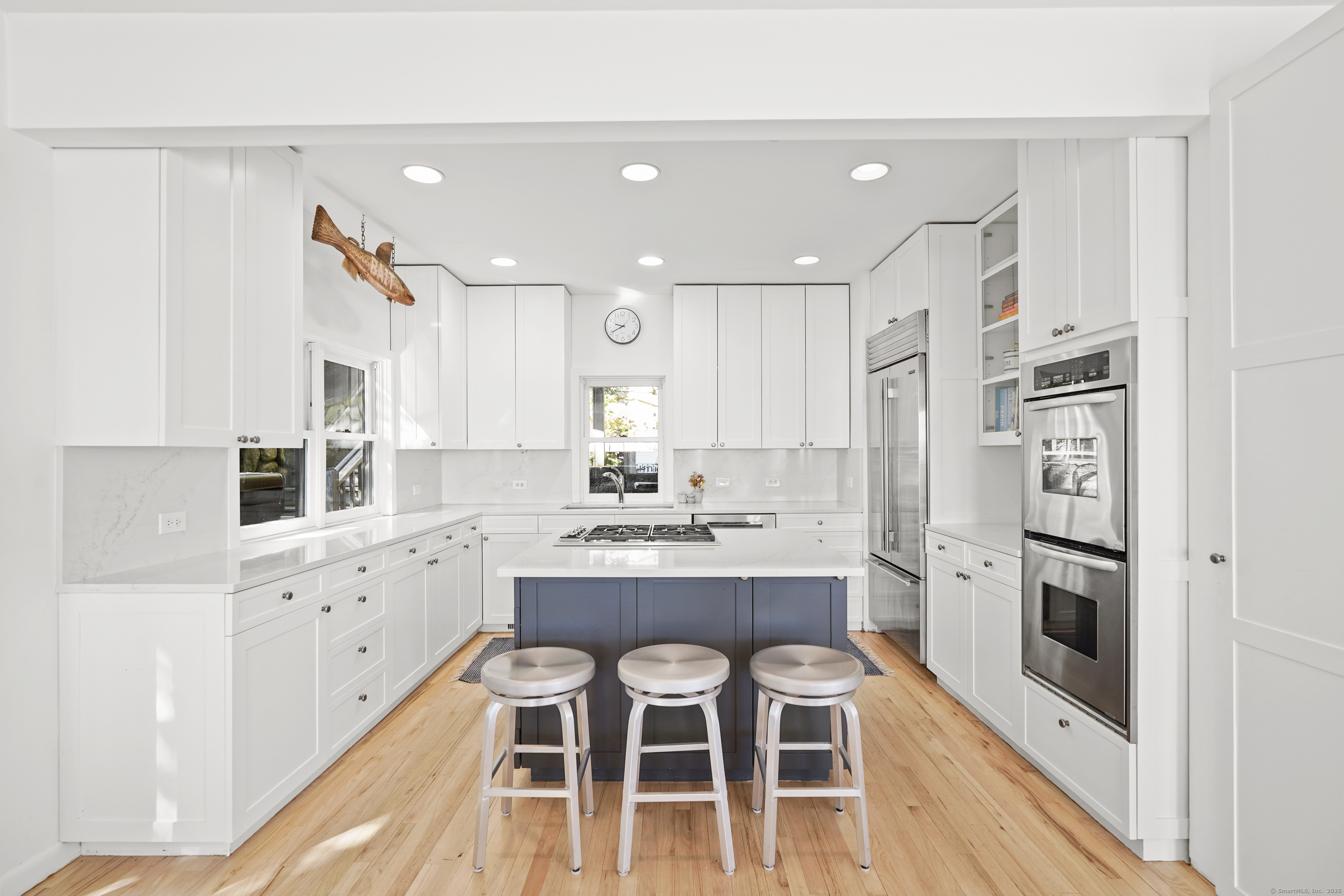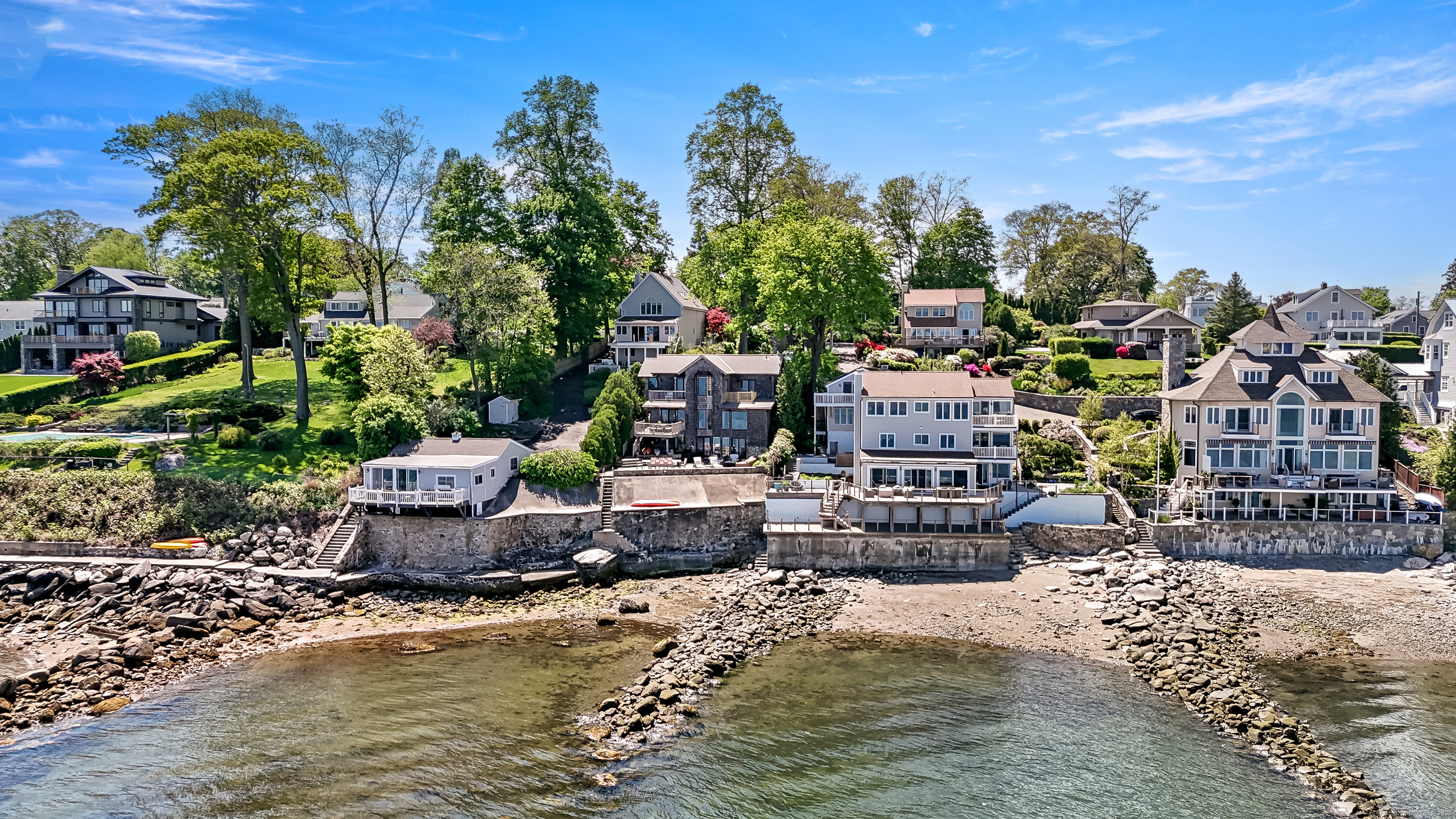Waterfront living at its finest. Situated directly on the Long Island Sound, this 4+ bedroom, 4-bath residence offers 75 feet of sweeping, unobstructed frontage-placing the shoreline quite literally at your doorstep. At low tide, a private sandy stretch emerges, creating a beachfront setting ideal for launching kayaks, paddle boards, or mooring a boat. Inside, light-filled interiors flow effortlessly from an open, updated kitchen to spacious entertaining areas, all designed to maximize the water views. Each of the four full baths has been thoughtfully renovated with a timeless design, blending sophistication and comfort. Outdoor living is equally inviting with a bluestone patio, and a seawall. A detached two-car garage provides convenience and storage. Life in Shippan offers the perfect balance of seaside serenity and city accessibility. Stamford's vibrant downtown-with its restaurants, shopping, and cultural events-is just minutes away, while Shippan itself remains a quiet, intimate neighborhood where the sound of waves sets the rhythm of daily life. And with the Metro-North train whisking you to Manhattan in under 50 minutes, the home is perfectly suited for both full-time living and a weekend escape. 64 Ocean Drive East is more than a residence-it's a rare opportunity to enjoy the tranquility of a waterfront retreat with all the energy of city living within easy reach. Listing agent is related to seller.