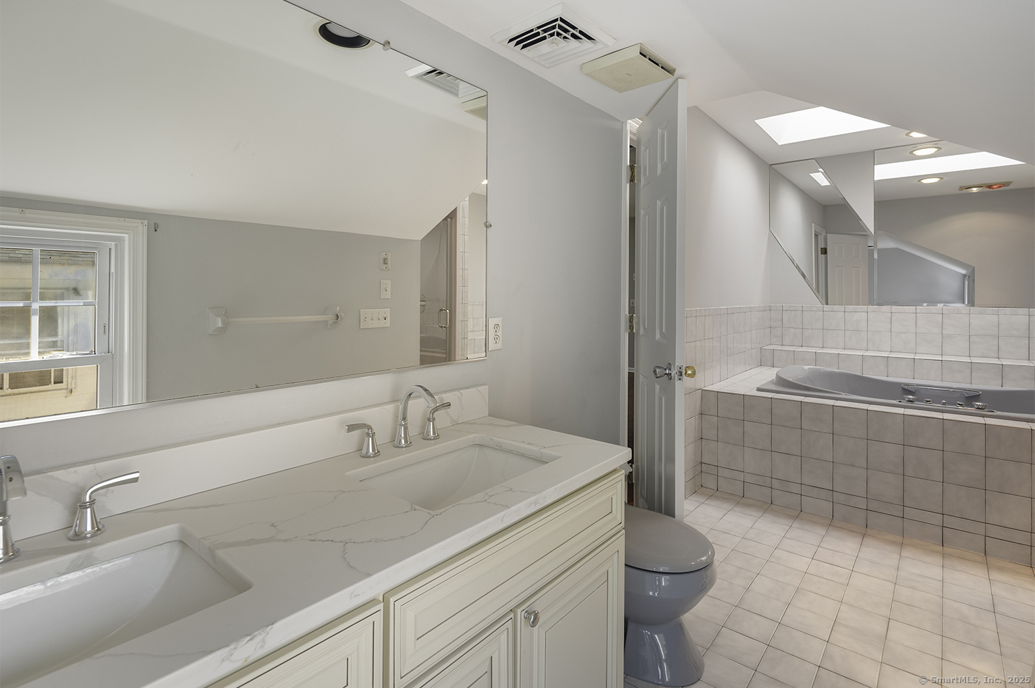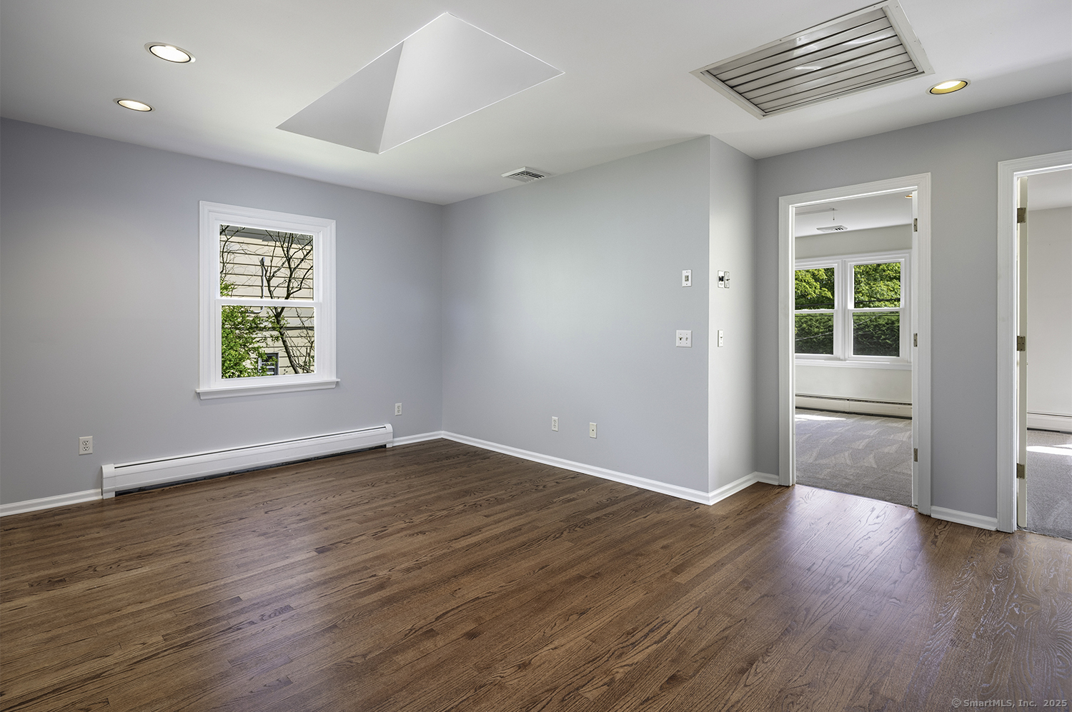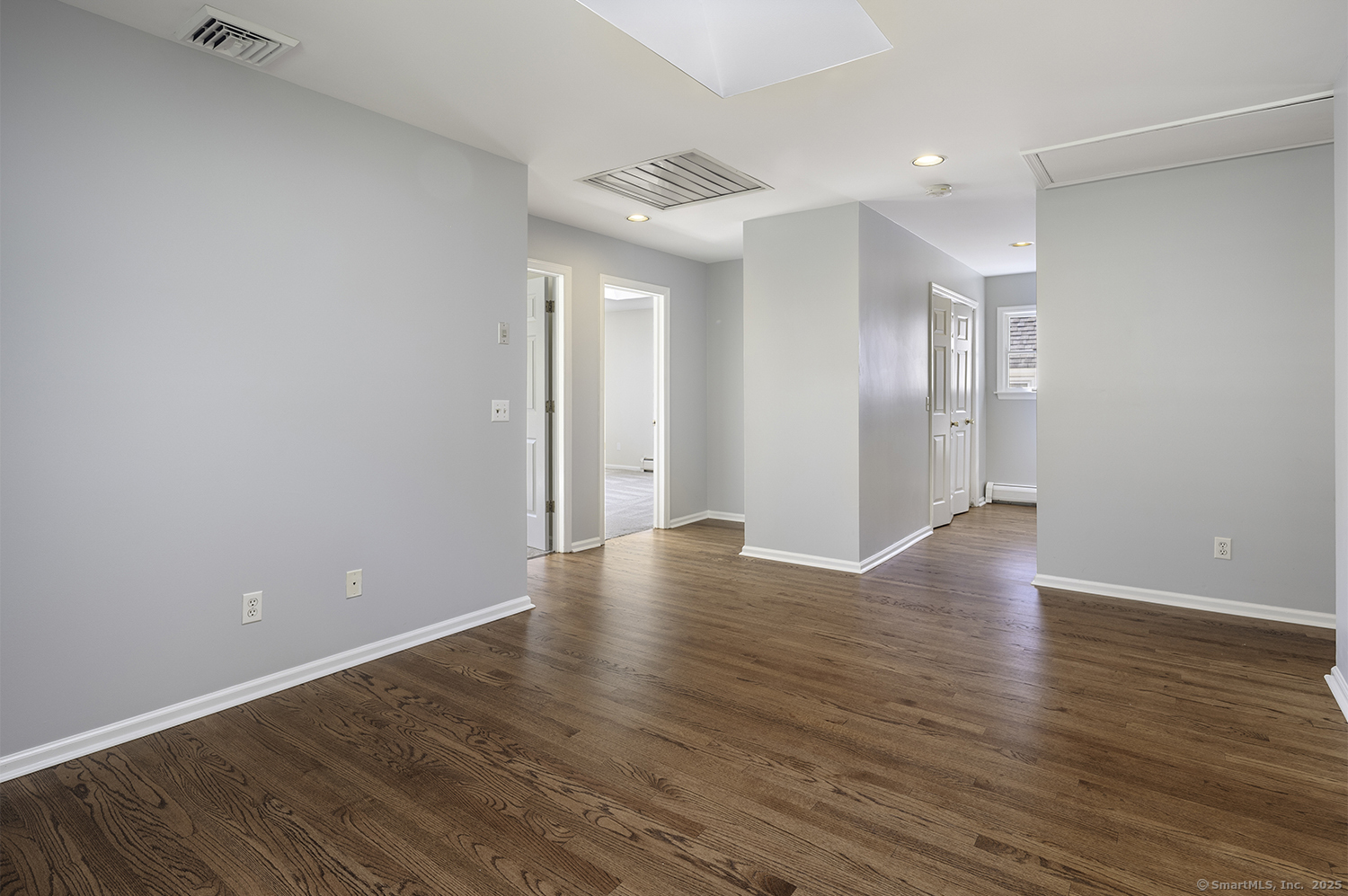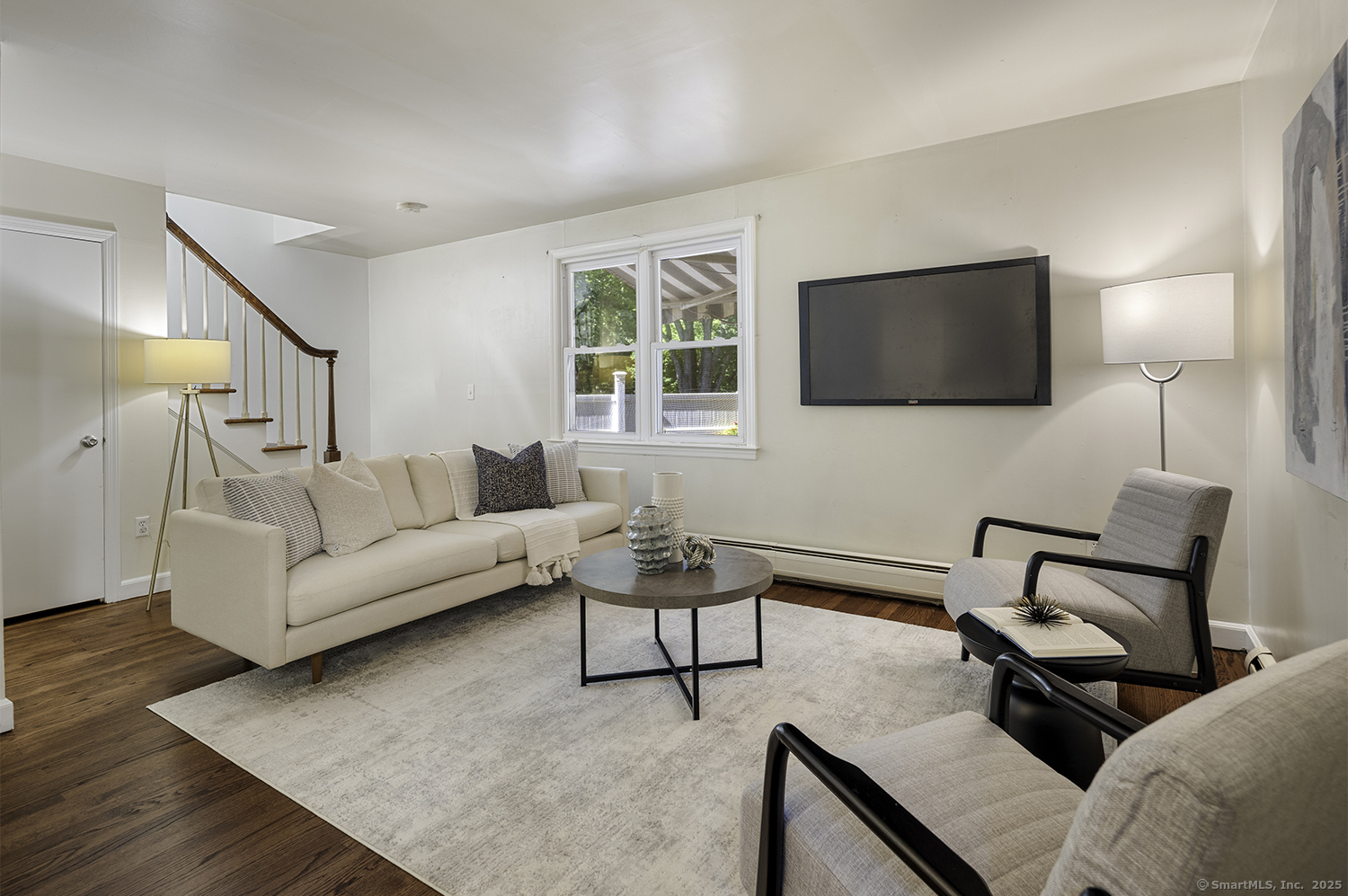 In one of Darien's most convenient locations, this move-in-ready home is just a short distance to Noroton Train Station, Corbin District, Darien Commons, and nationally recognized Darien Library. The renovated kitchen features new cabinetry, quartz countertops and high-end vinyl floors. A new full bath with step-in shower, quartz counters, and a new washer/dryer sits off the hallway. The first floor formal dining room and living room has a wood burning fireplace, an office/flex room, and a spacious family room with newly refinished hardwood floors. Upstairs offers four bedrooms-two with hardwood floors and two with new carpeting-all with skylights for natural light. The renovated bath includes a Jacuzzi tub, skylight, walk-in shower, and dual quartz vanities. Beautifully maintained and thoughtfully updated with $100K+ in updates-including central air, lifetime roof shingles, generator-ready wiring. This home will not last!