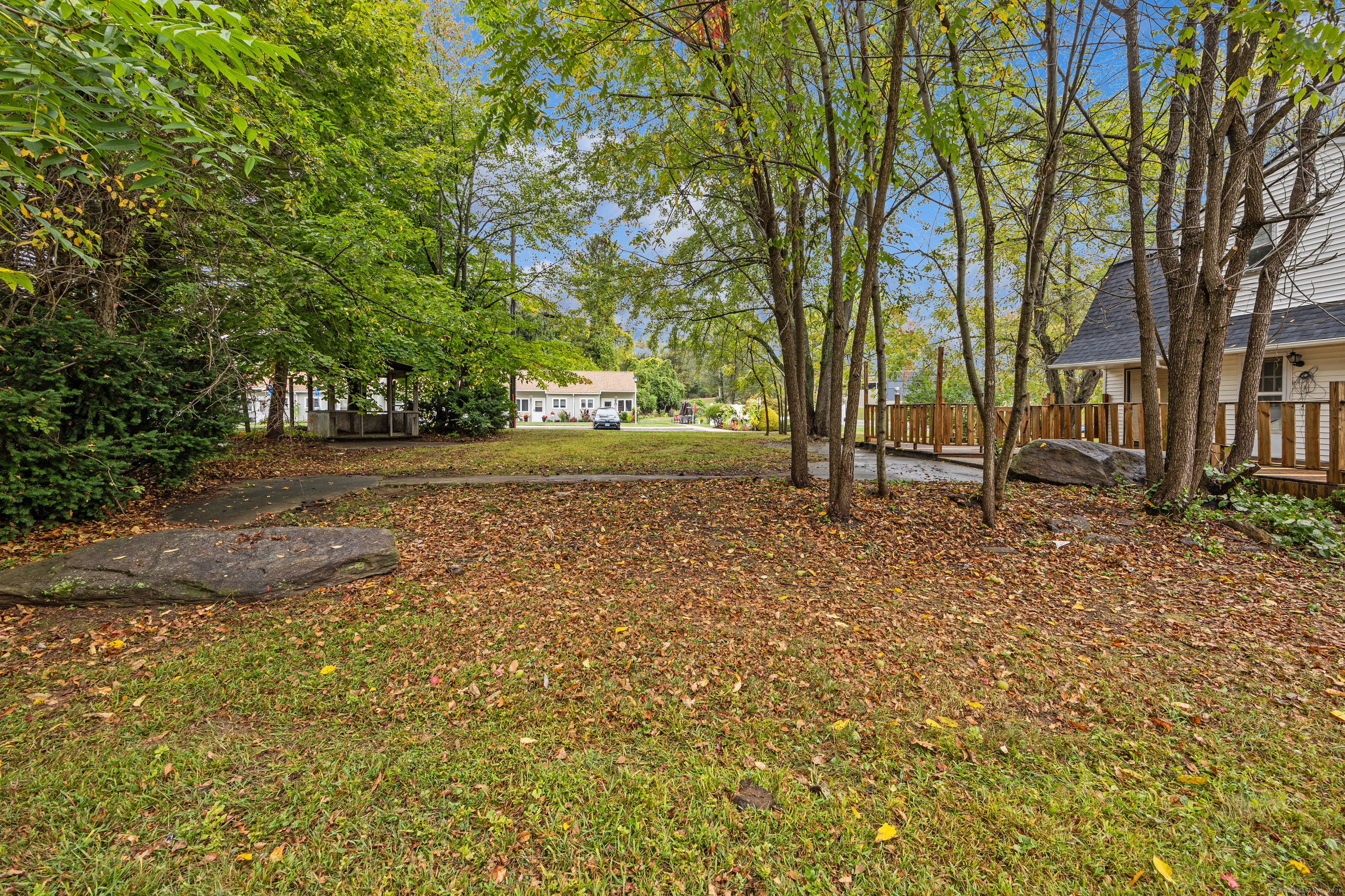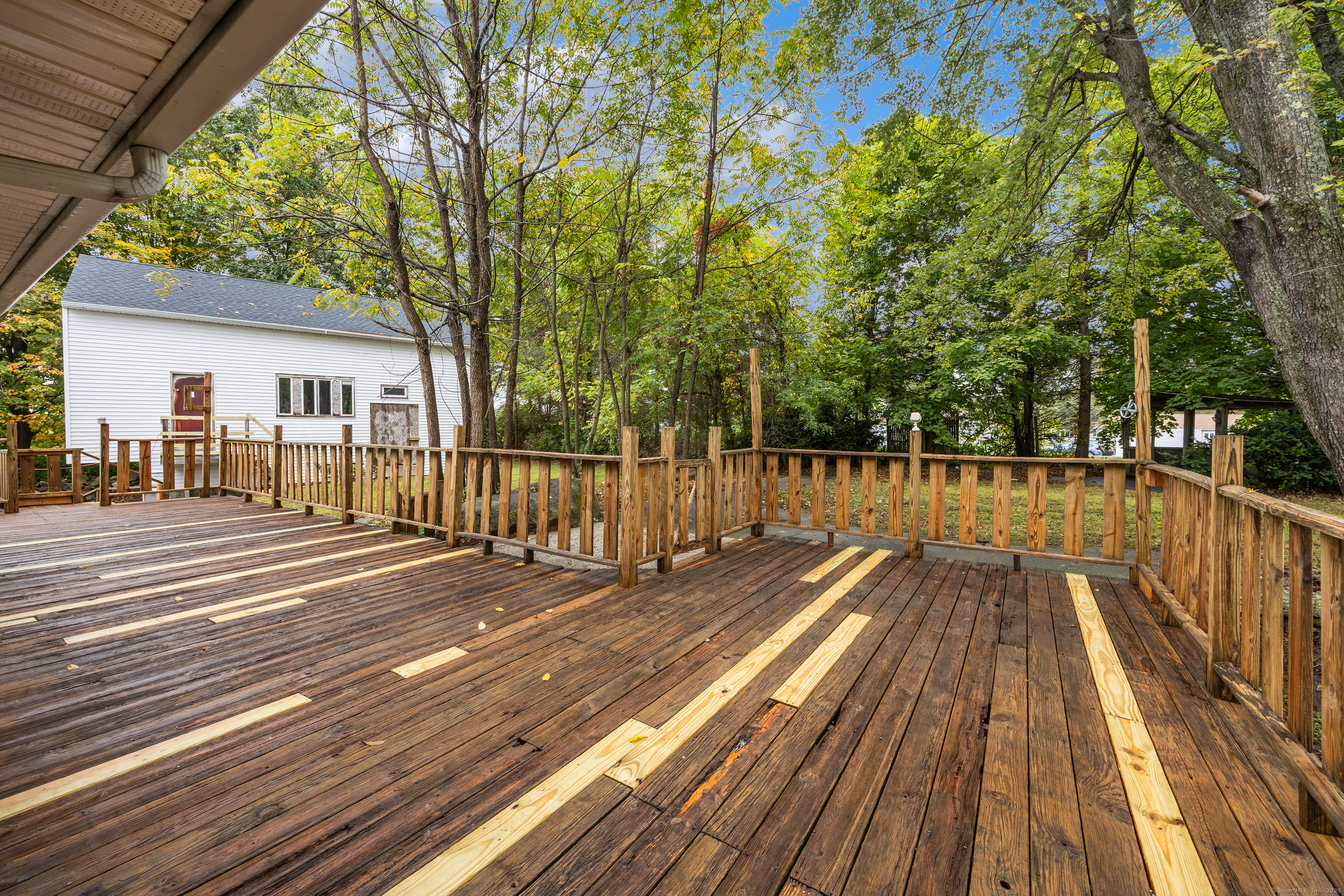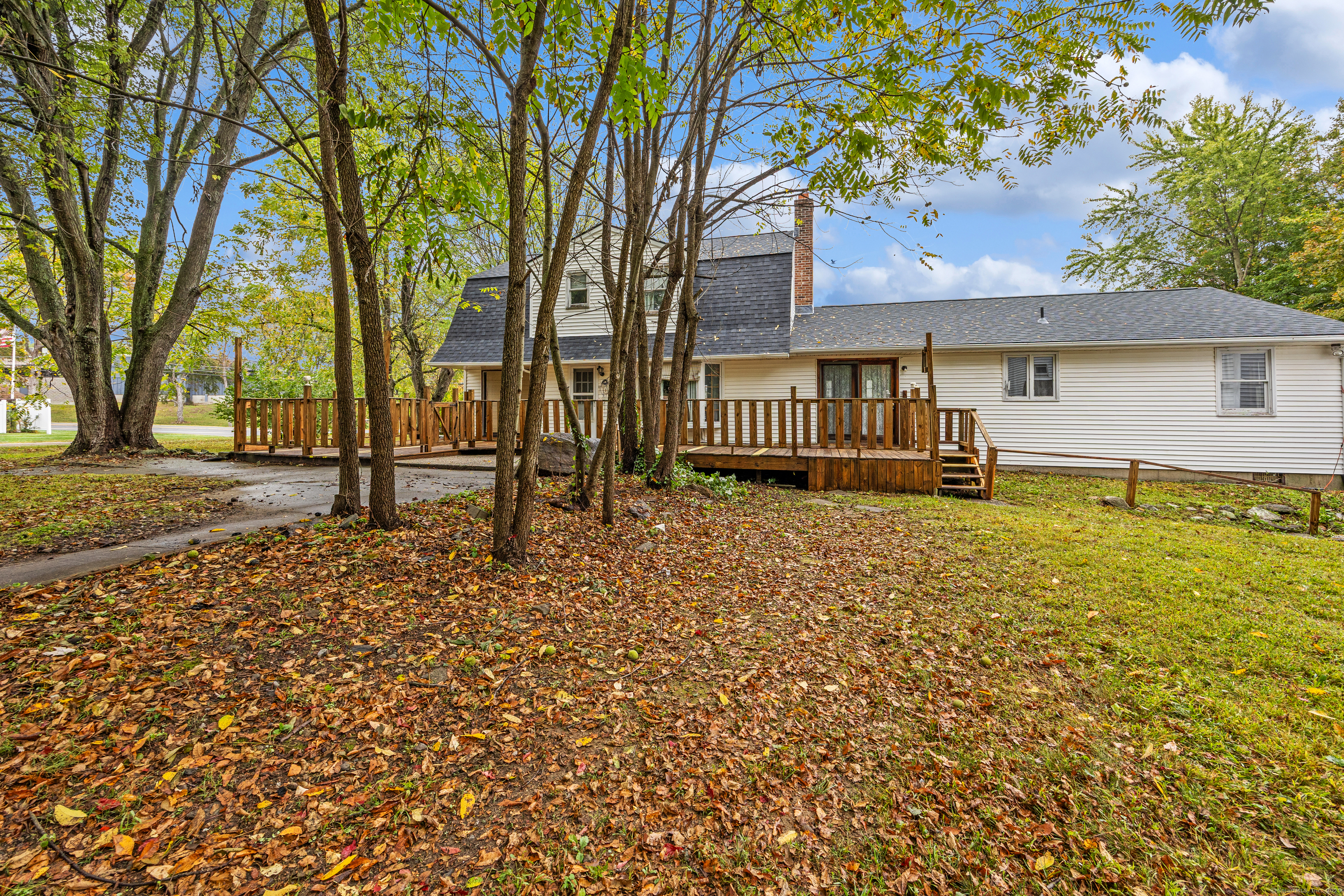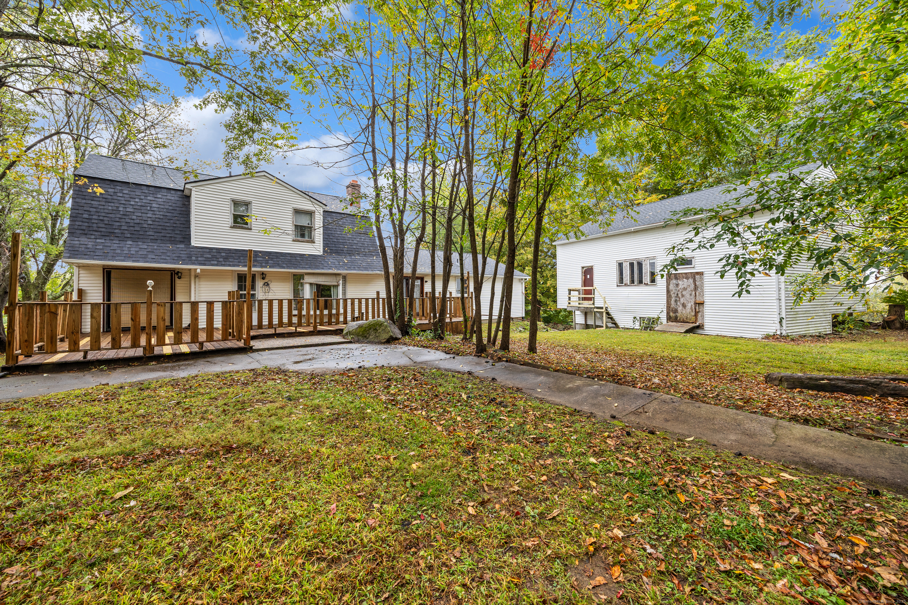 Welcome to this massive Gambrel-Style Colonial! This home features a rare, MAIN LEVEL IN-LAW STYLE APARTMENT with its own private entrance, full kitchen, full bathroom, separate laundry access, and two bedrooms-perfect for multi-generational living or extended guest accommodations. The main level living area also offers a cozy living room with a wood-burning fireplace that flows seamlessly into the eat-in kitchen, a dining room, formal living room and half bathroom. The second level has an additional full bathroom and three additional bedrooms. Step outside to enjoy a large deck overlooking your private backyard, perfect for relaxing or entertaining. The property also includes a large detached 1-car garage with a two-story loft area-ideal for storage, a workshop, or future finishing potential. Recent updates include a new roof on both the main house and garage, as well as a newer furnace and hot water heater for peace of mind. Comfort and convenience are enhanced with central air and central vacuum throughout. This home offers size, versatility, and updates all in one package-MOVE QUICK!