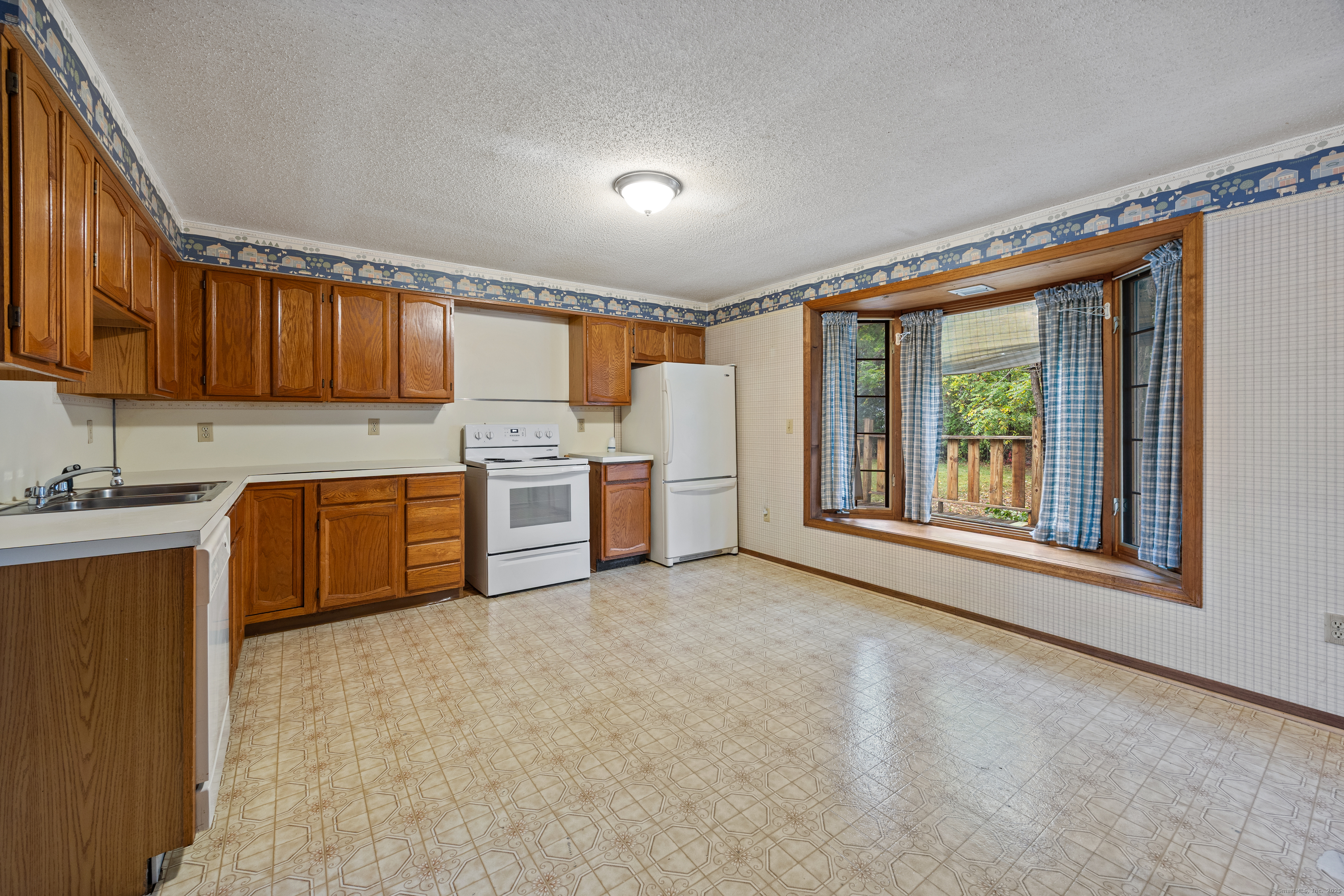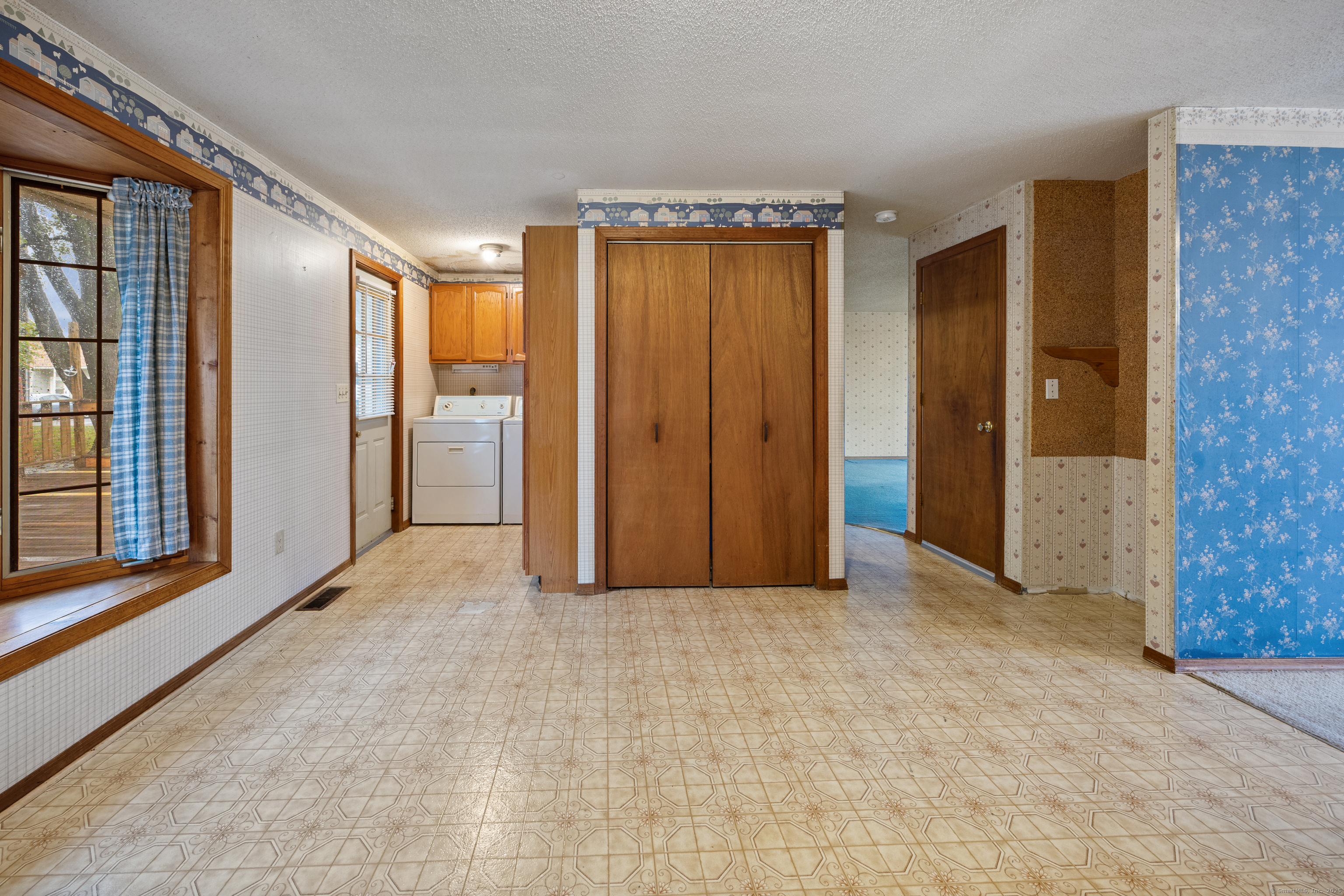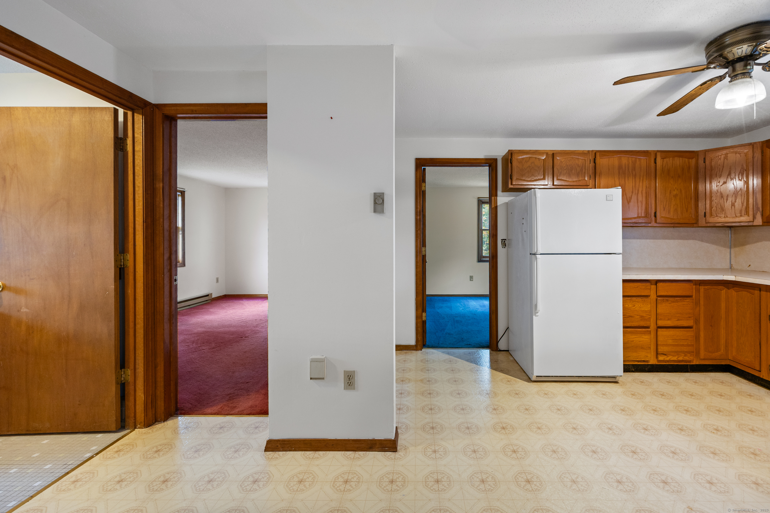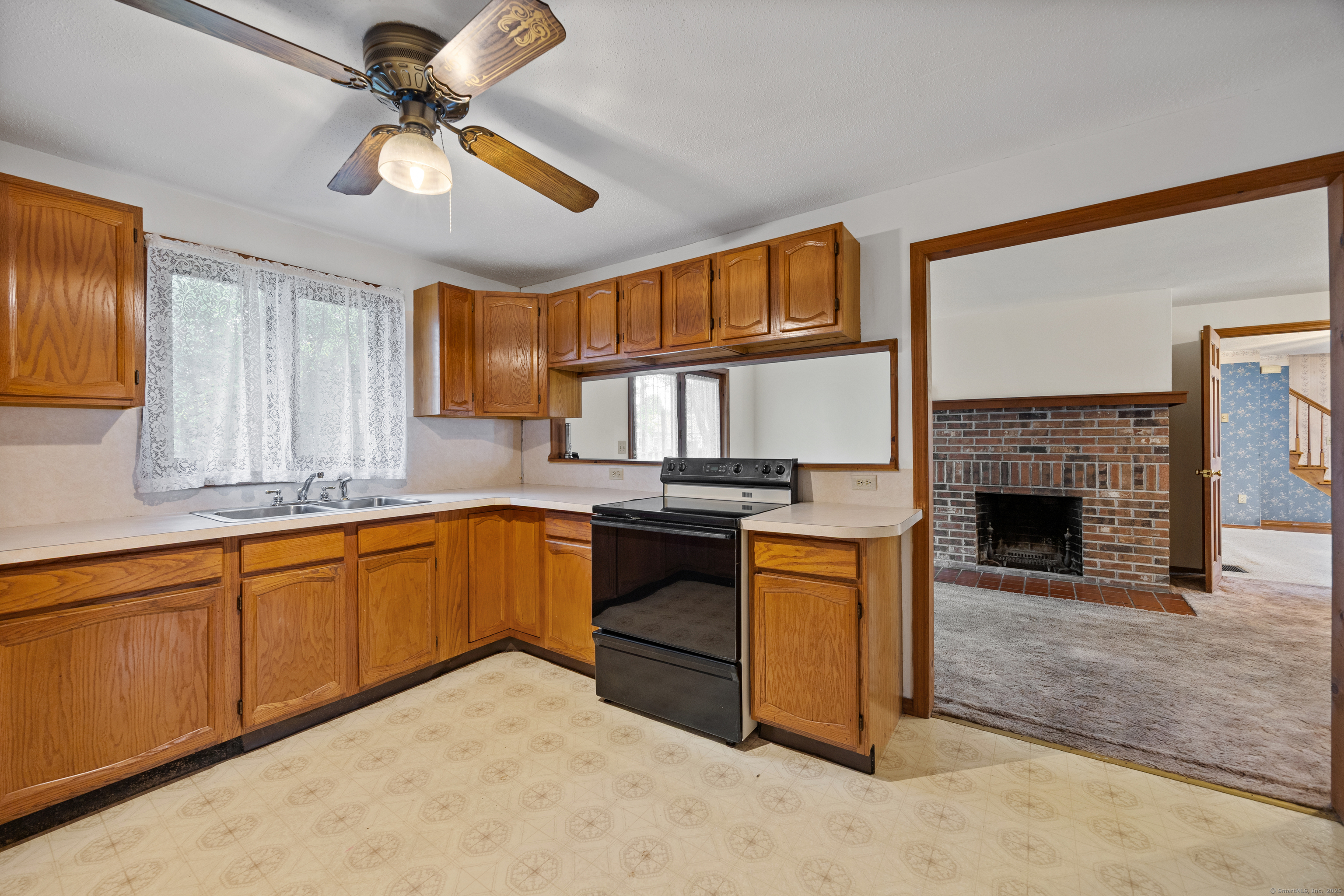 Welcome to this massive Gambrel-Style Colonial! This home features a rare, MAIN LEVEL IN-LAW STYLE APARTMENT with its own private entrance, full kitchen, full bathroom, separate laundry access, and two bedrooms-perfect for multi-generational living or extended guest accommodations. The main level living area also offers a cozy living room with a wood-burning fireplace that flows seamlessly into the eat-in kitchen, a dining room, formal living room and half bathroom. The second level has an additional full bathroom and three additional bedrooms. Step outside to enjoy a large deck overlooking your private backyard, perfect for relaxing or entertaining. The property also includes a large detached 1-car garage with a two-story loft area-ideal for storage, a workshop, or future finishing potential. Recent updates include a new roof on both the main house and garage, as well as a newer furnace and hot water heater for peace of mind. Comfort and convenience are enhanced with central air and central vacuum throughout. This home offers size, versatility, and updates all in one package-MOVE QUICK!