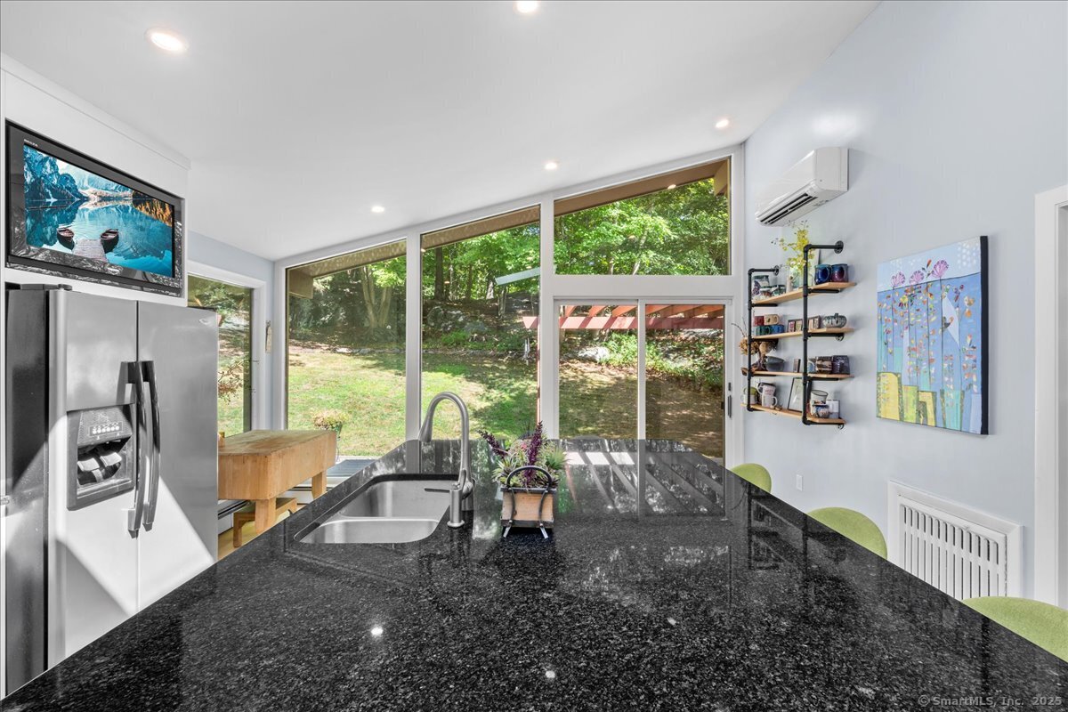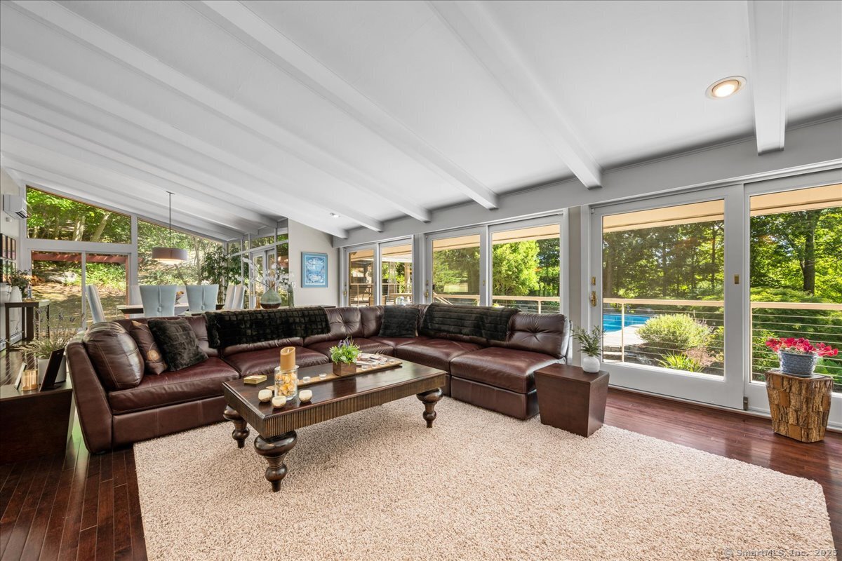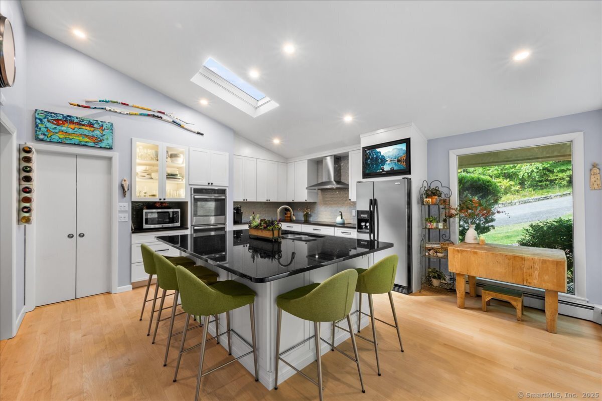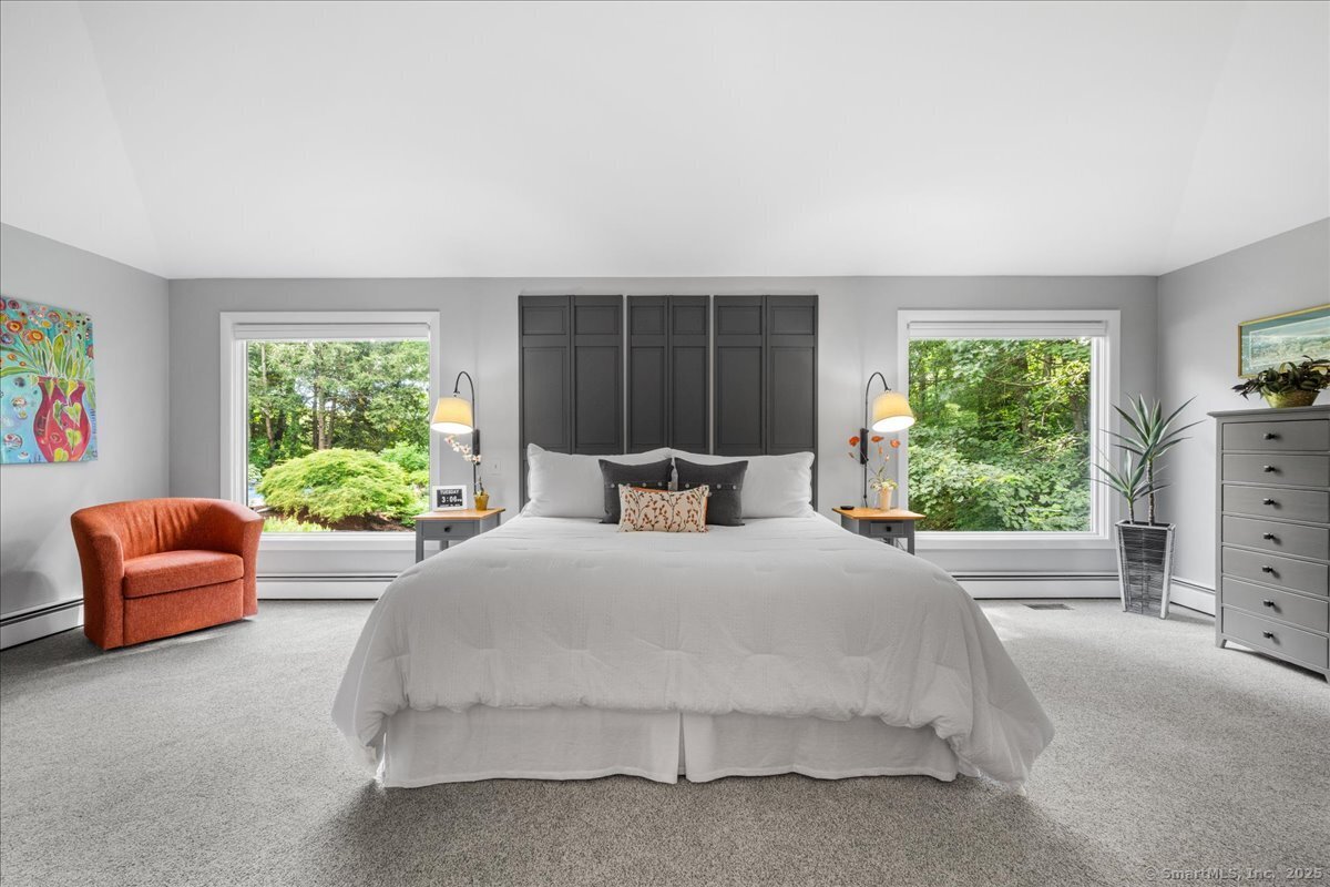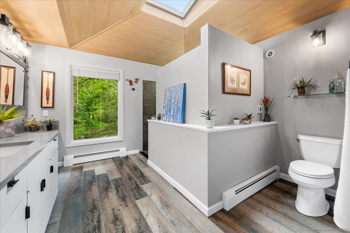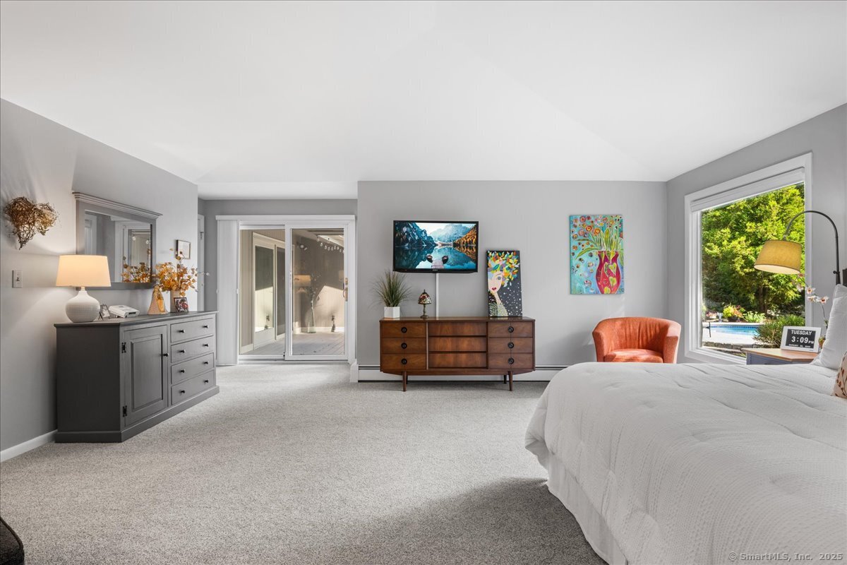 Set on six private acres, this 4-bedroom, 3.5-bath home offers space, privacy, and resort-style amenities. The main level features a fully renovated kitchen with a large island, open to the dining area and living room with a gas fireplace. The primary suite includes a spacious walk-in closet and a luxurious bathroom with heated floors and a walk-in shower. A second bedroom on this level enjoys its own private full bath. A separate half bath and laundry room provide everyday convenience. From this level, step out to a back deck overlooking the landscaped yard. The finished lower level adds versatility with two additional bedrooms, a full bath, a half bath, a second laundry area, and a large recreation/media room. Outdoors, enjoy a heated gunite saltwater pool, gazebo deck, built-in outdoor grill, and sweeping garden views. Additional highlights include central air, two natural gas fireplace inserts, and a large three-car garage. A private retreat with modern updates and resort-style comforts, all just minutes from Norwich.