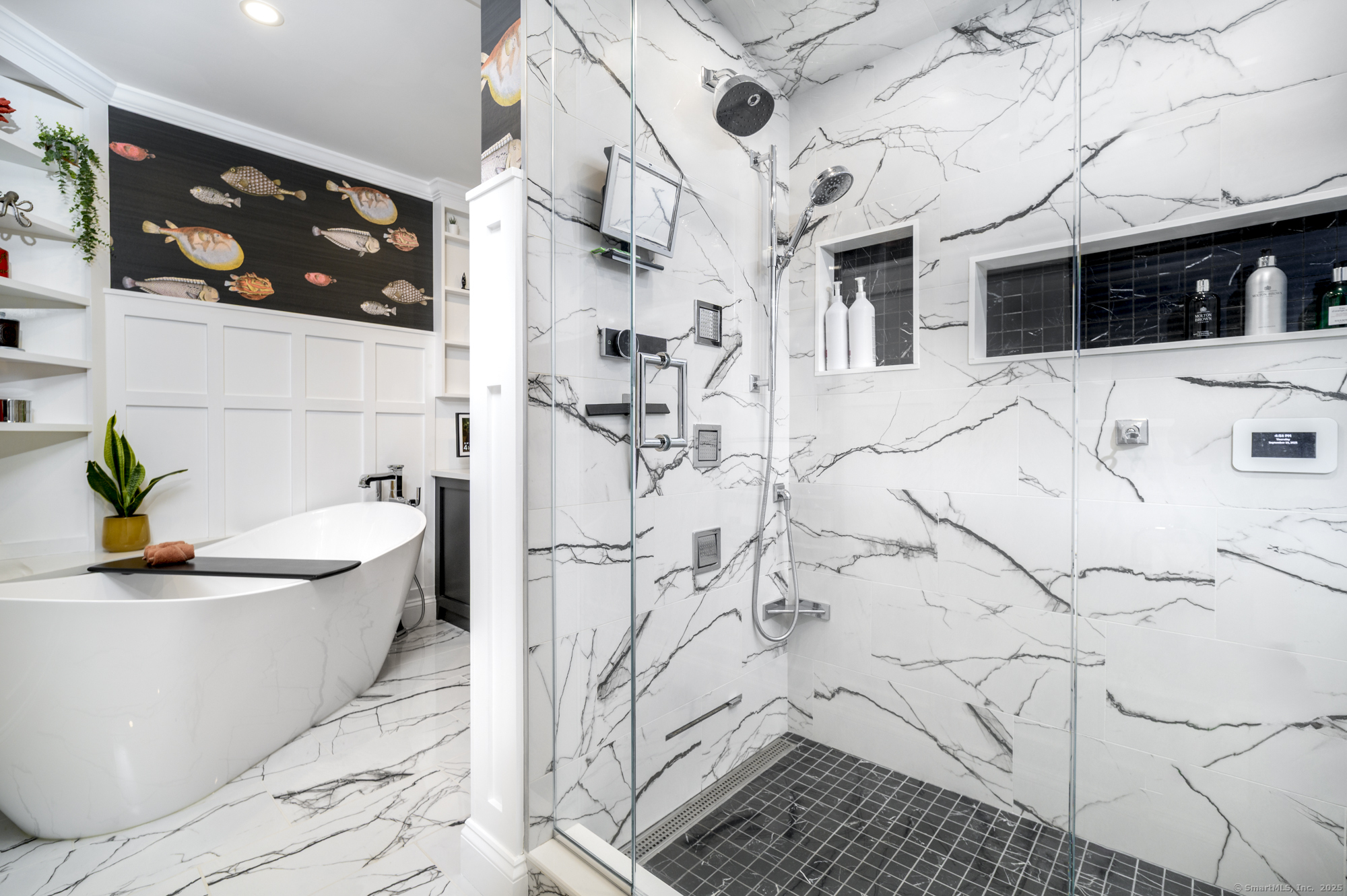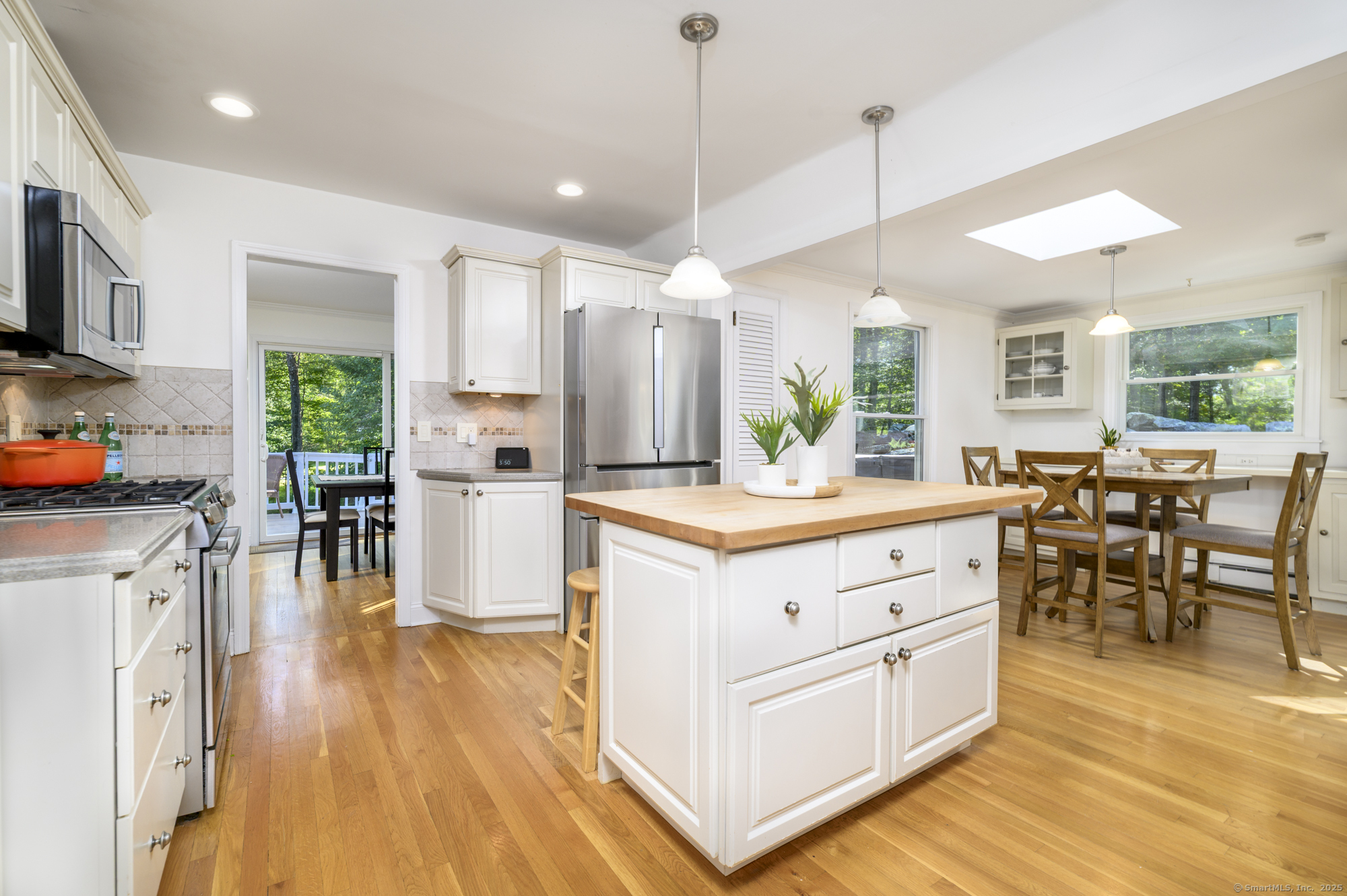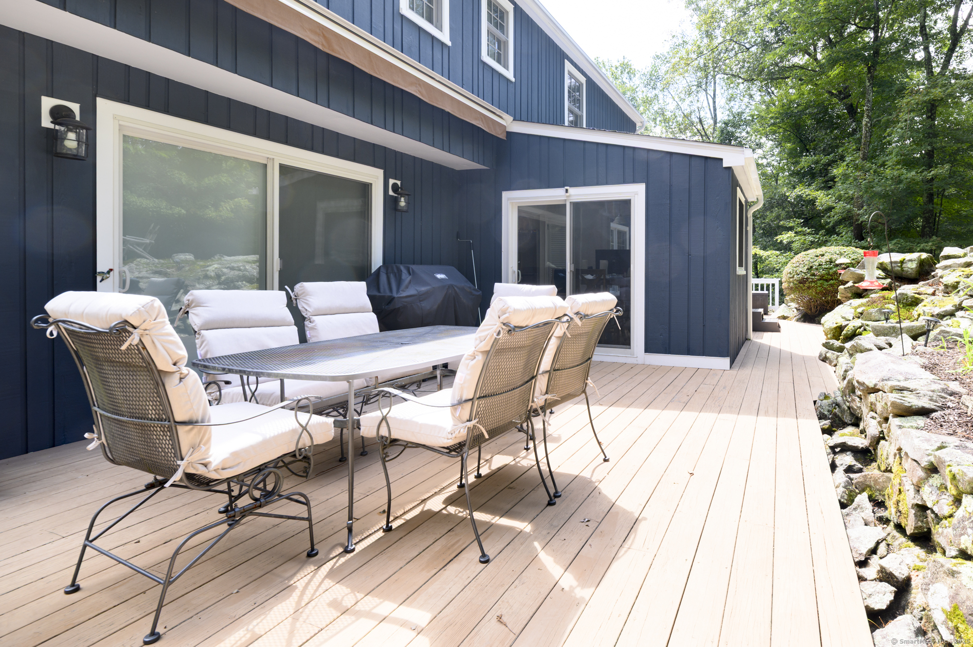 Welcome to 11 Ravenwood Drive, a 5-bedroom, 3-bath, 2,704 sq. ft. home that offers both privacy and modern comfort in the heart of Weston. Nestled on a peaceful lot, this home features several updates, including a whole-house generator and smart technology for lights, thermostats, fans, blinds and more - bringing convenience to everyday living. Inside, you'll find inviting spaces perfect for gathering with family and friends. The primary suite is a true retreat, offering a beautifully appointed spa-like bathroom with steam shower, radiant heat, soaking tub and more and a dream walk-in closet (converted from the 5th bedroom, easily reverted to full bedroom). Outdoors, two remote-controlled awnings extend your living space for effortless entertaining or quiet relaxation, while a saltwater hot tub provides year-round enjoyment. Practical upgrades include three propane tanks supporting the dryer, stove, and grill. Adding even more peace of mind, this home comes with a home warranty included, making it truly move-in ready. Enjoy the tranquility of a private setting while still being minutes to Weston's award-winning schools and town center.
