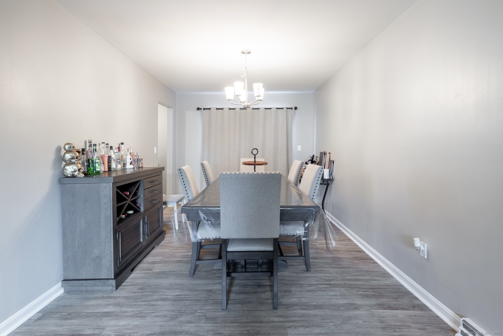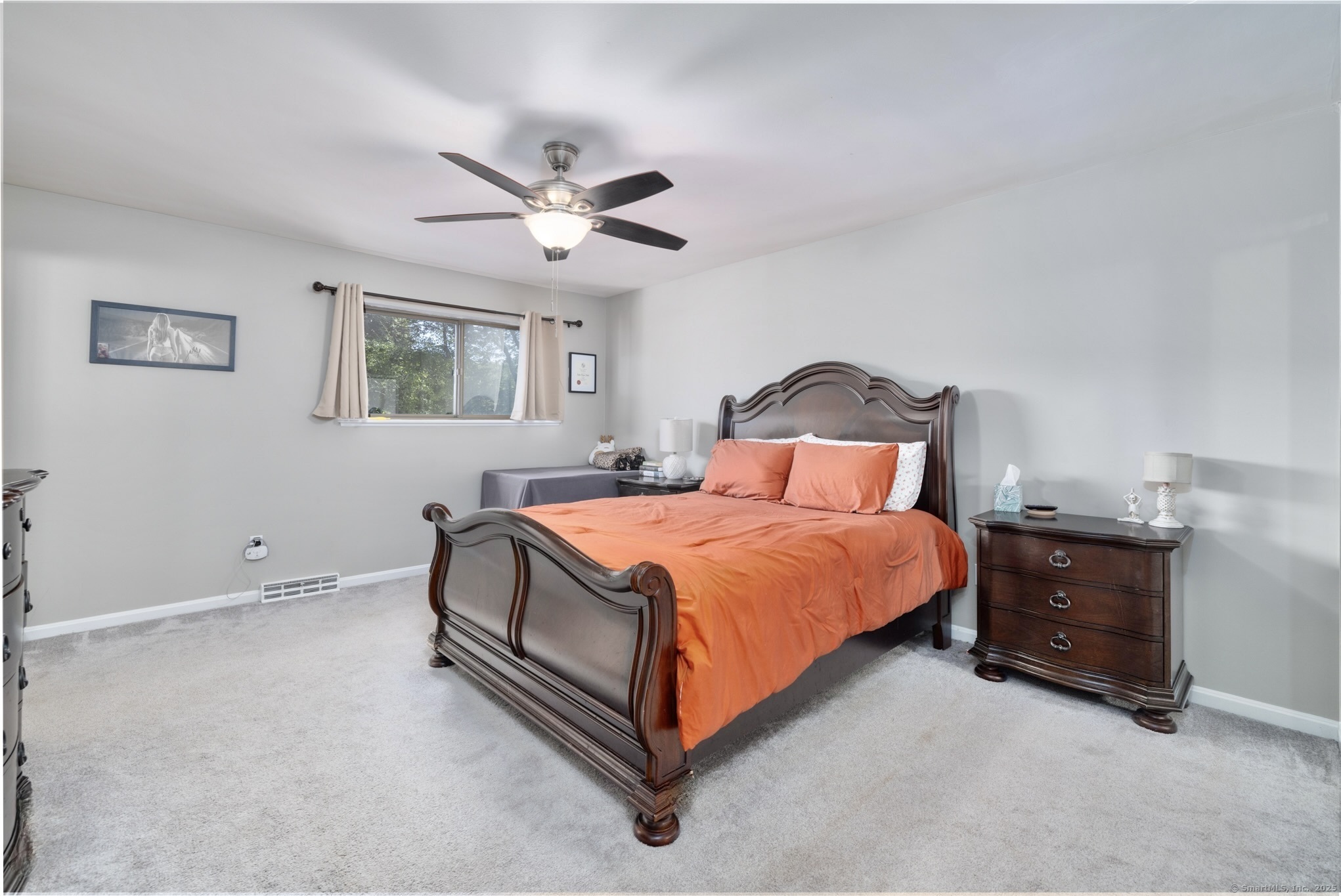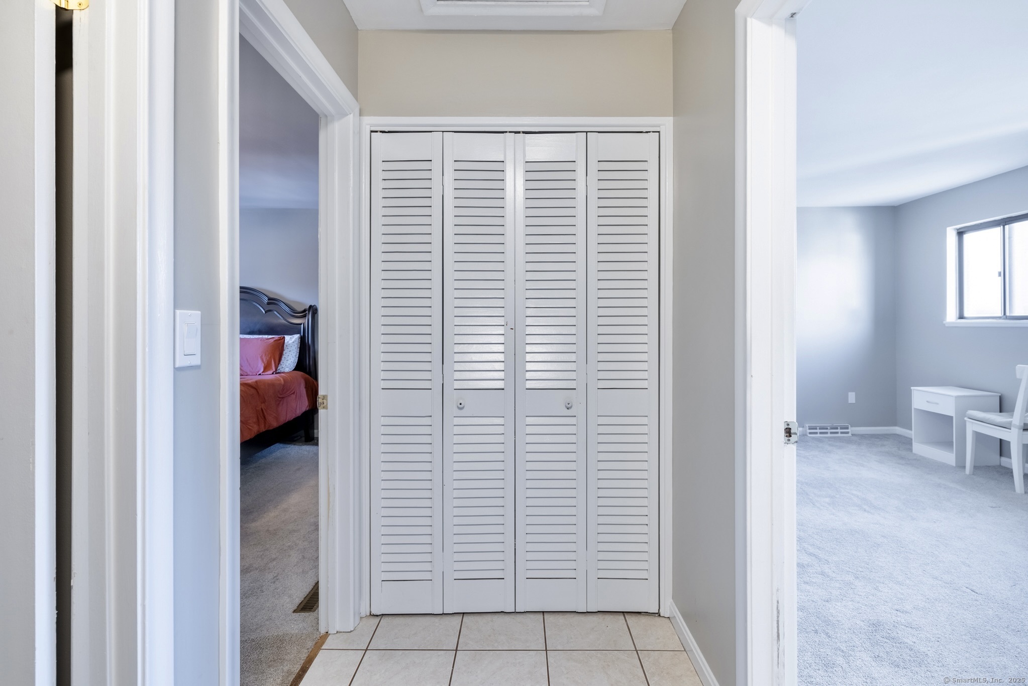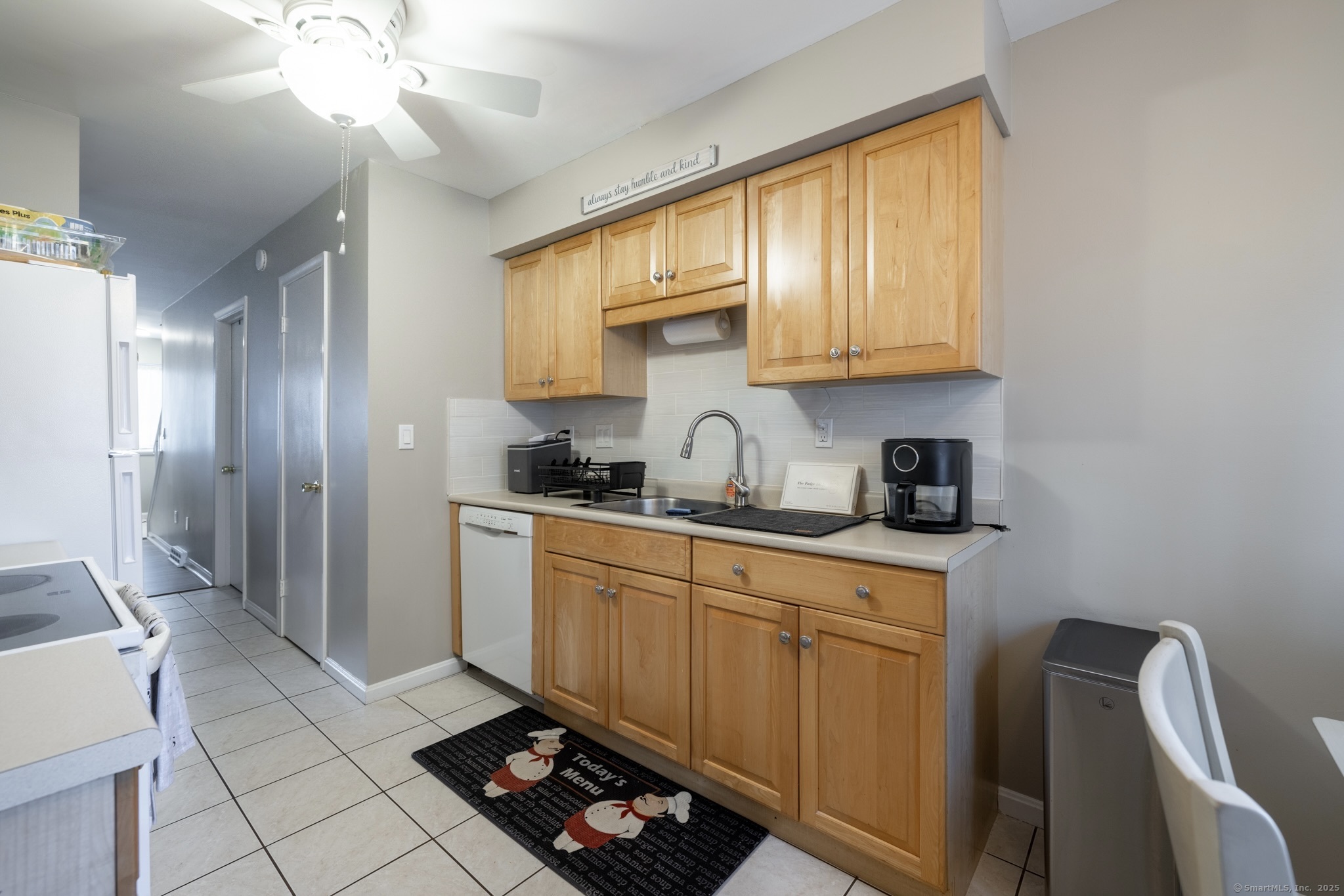 This beautifully updated, light-filled home designed for comfort and style. Recently painted, tiled, and carpeted throughout to create an inviting, move-in-ready space for its next lucky resident. From the moment you enter, you'll be greeted by soft grey flooring and a full-wall mirror that bounces natural light into the entryway. The kitchen is bright and functional, featuring a cozy dining nook, a pantry closet, ceiling fan, and all major appliances-including refrigerator, stove, microwave, dishwasher, and disposal. A cream-striae tile backsplash adds a touch of elegance. The open-concept living and dining area is filled with natural light from the patio sliders, making it the perfect spot to relax or entertain. Upstairs, you'll find two generously sized bedrooms with plush carpeting and exceptional closet space, including an oversized hallway closet. The primary suite offers a private bathroom with a new vanity and stall shower, while the main full bathroom features fresh paint, new tiling, and a tub/shower combination.The finished basement is a hidden gem-complete with recessed lighting, wall-to-wall carpet, a bar with secret storage, and a dedicated laundry area with washer, dryer, and built-in closets. Enjoy the beautifully landscaped grounds, a recently renovated pool house, and a stunning pool you'll love all summer. Conveniently located near the Merritt Parkway and area amenities, this home offers the perfect blend of serenity and accessibility.
