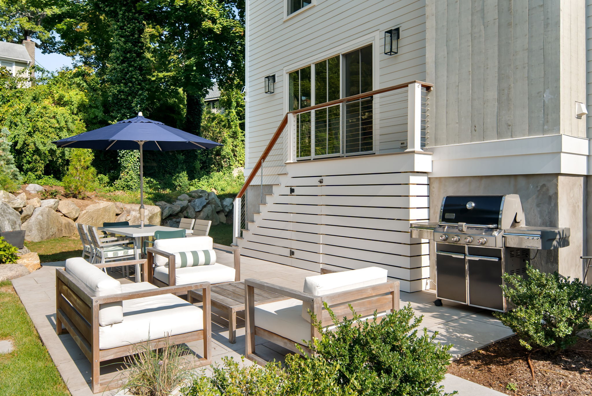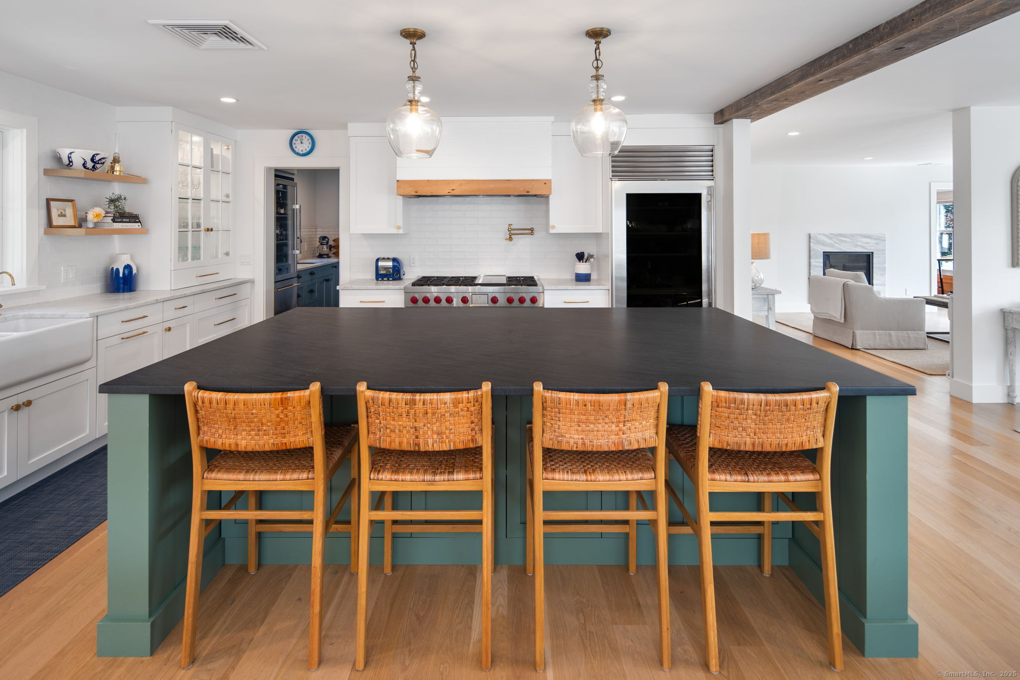Welcome to 74 Roton Ave, a stunning, fully renovated home in a prime Rowayton location. Reimagined from the ground up, every detail has been thoughtfully crafted for modern luxury living. Just steps from Bayley Beach and Roton Point, and a short walk to Rowayton's vibrant downtown with waterfront dining, boutique shops, and Pinkney Park - home to the Farmers Market and beloved town events. With serene views of Farm Creek and access to scenic nature trails, this location is truly unmatched. Offering 5 bedrooms and 4 full baths across nearly 3,900 sqft of finished living space, this home perfectly blends elegance and comfort. The main floor showcases a chef's kitchen with marble countertops, a Vermont black granite island, Sub-Zero and Wolf appliances, a full butler's pantry, and a sunlit dining area with sliding doors to the back patio. A first-floor bedroom and full bath provide flexibility for guests or added living space. Upstairs, you'll find the primary suite and three additional bedrooms, three full baths, and a conveniently located laundry room. The spacious third floor offers endless possibilities with added space for a sixth bedroom, office, or recreation room. An additional 1,100 sqft of unfinished lower-level space offers versatility for storage, an at-home gym, or other practical uses. A rare opportunity to own a masterfully designed residence in one of Rowayton's most coveted coastal neighborhoods.