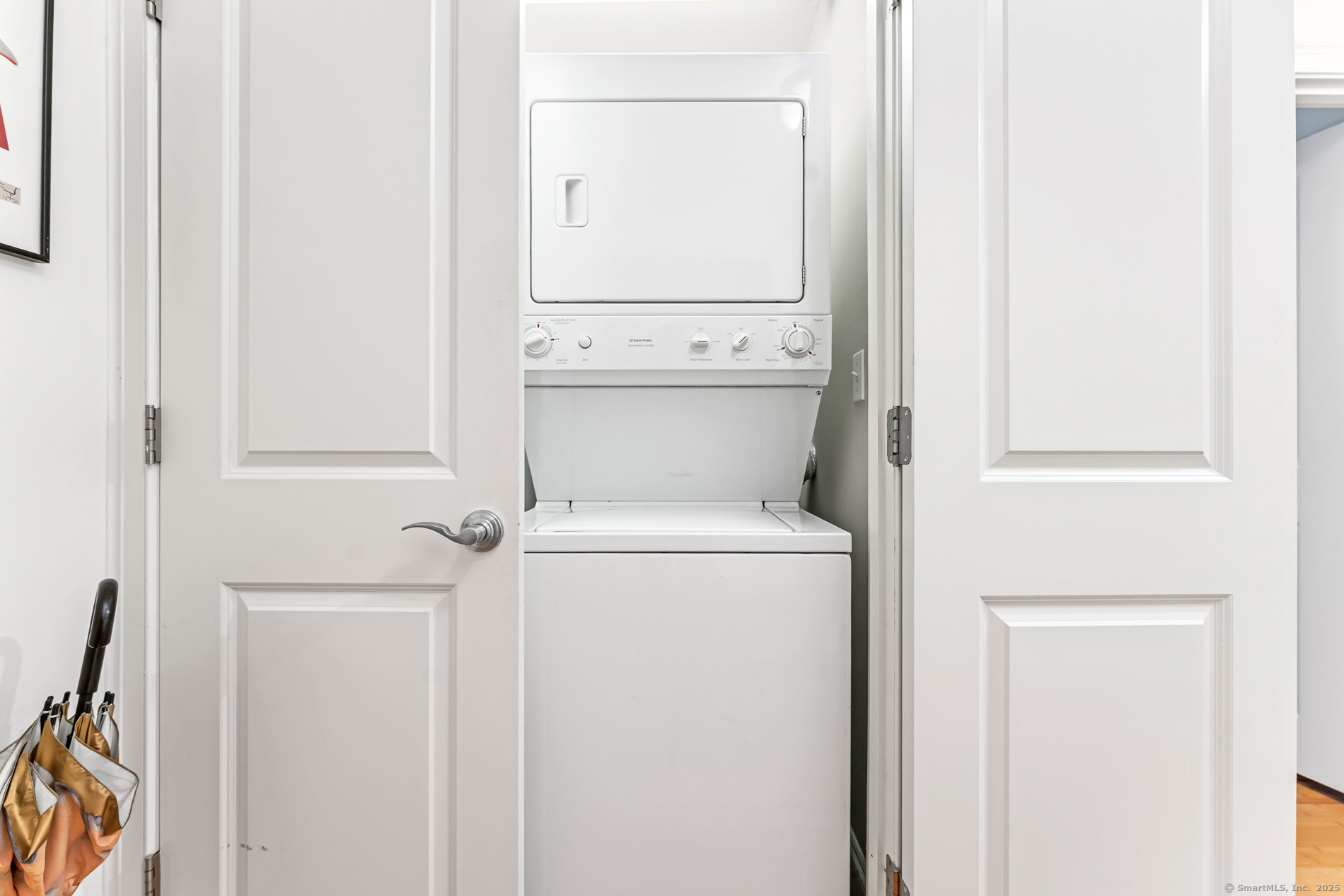 Stonington Borough condominium living at its very best! Location, location, location! This unique property has magnificent gardens and plush landscaping like no other! Step through your own private garden gate - an oasis onto itself - and then again through the sliding French doors of your spacious living and dining room with vaulted ceiling, gas burning fireplace and windows with custom shutters. A light and airy feeling abounds! The living/dining room has generous proportions and accommodates a large seating area open to the fireplace and French doors, as well as a formal dining alcove and even a study area. The granite topped breakfast bar is at the far end overlooking a state of the art kitchen with all high end appliances. A welcoming, sunny primary suite includes an enormous walk in closet and en-suite full bath with stone countertop, large shower and tile floor. The second bedroom looks out into the hallway as well as to the living/dining room through interior pocket doors and features a walk in closet and exterior French sliding doors opening to a small back patio/your third entrance. A full laundry room and second bath with tub and shower are located off the main hallway/entry foyer. Gleaming hardwood floors throughout! A carport with one Parking space is included. The condominium association is professionally managed and exceptionally well run.