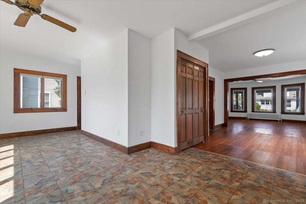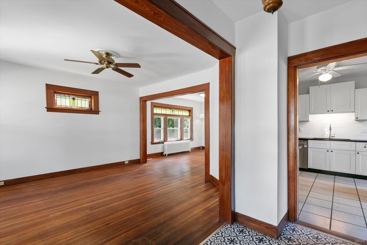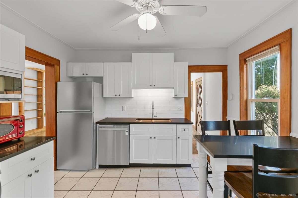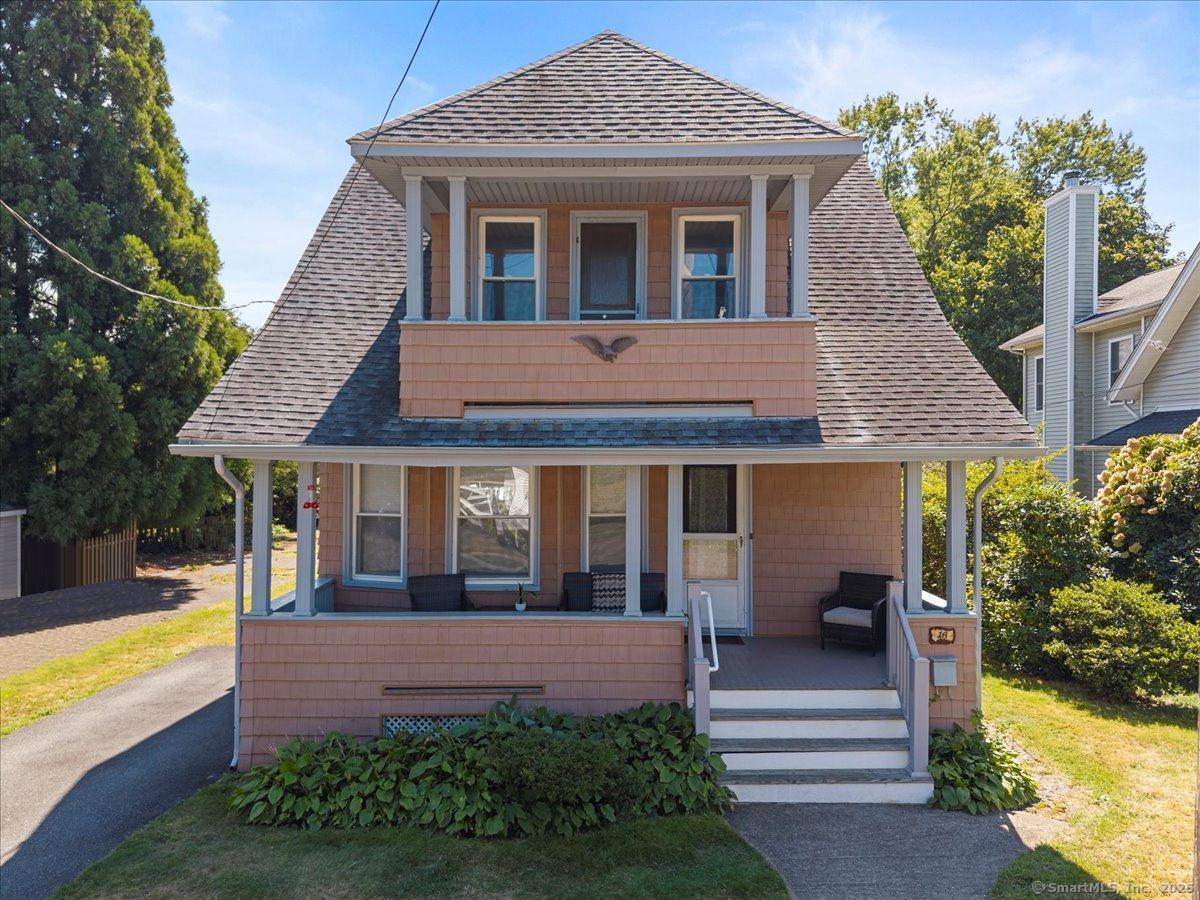 Location! Location! Walk to downtown Milford, Gulf Beach, and Metro North/New York City train from this well maintained, move-in ready 3 Bedroom 2 Bath Gulf Street area Colonial. A charming covered front porch leads to an open spacious floor plan that is ideal for entertaining. The formal Living Room has an architectural bay window area and wide opening to the generously sized Dining Room with expandable table area for large gatherings, continuing on to a Football friendly Family Room with gas fireplace and vinyl floor, and an updated Eat-in kitchen features white cabinets, granite counter tops, stainless appliances, and dining area. A full bath with laundry complete the first floor. Three Bedrooms on the upper level include an oversized Primary bedroom that will fit the largest of furniture and a second bedroom with access to a balcony overlooking the tree-lined street. Pull down attic stairs for storage. Beautiful Wood flooring in most rooms of the house. Economical gas heat. Freshly painted and ready for you to re-imagine and customize the decor and your desired updates. A pretty level yard perfect for a pool and backyard fun. You can walk to 17+ restaurants, the public library, pickle ball, tennis, craft fairs, Christmas tree lighting, the Oyster Festival, Pirates Day. It's a lifestyle, not just a house! See it today!