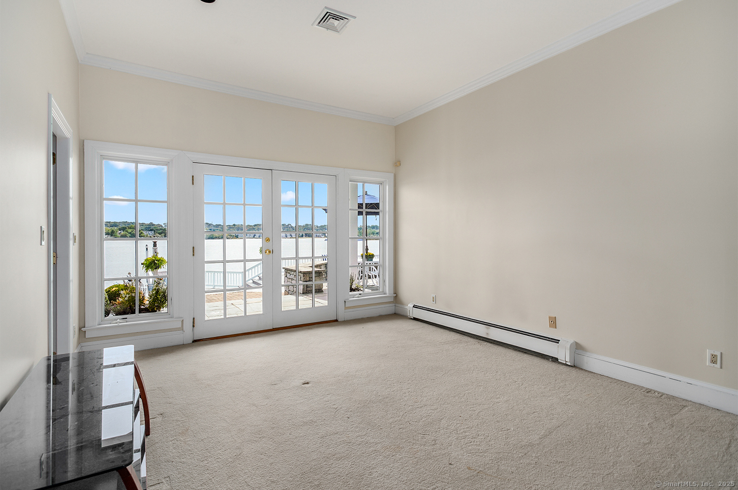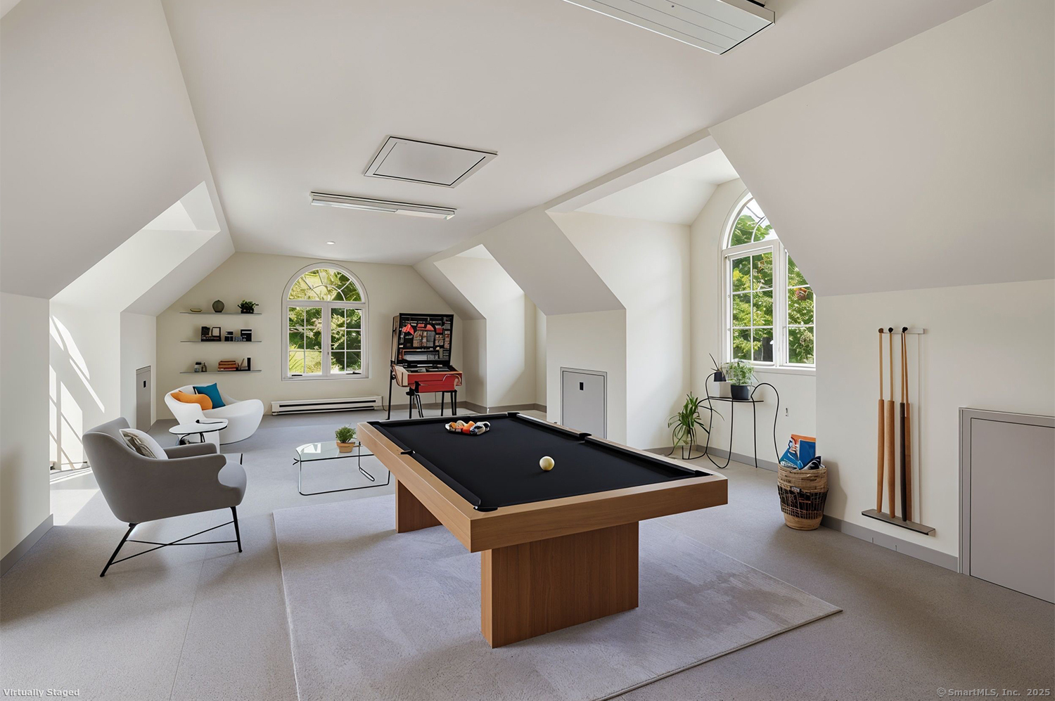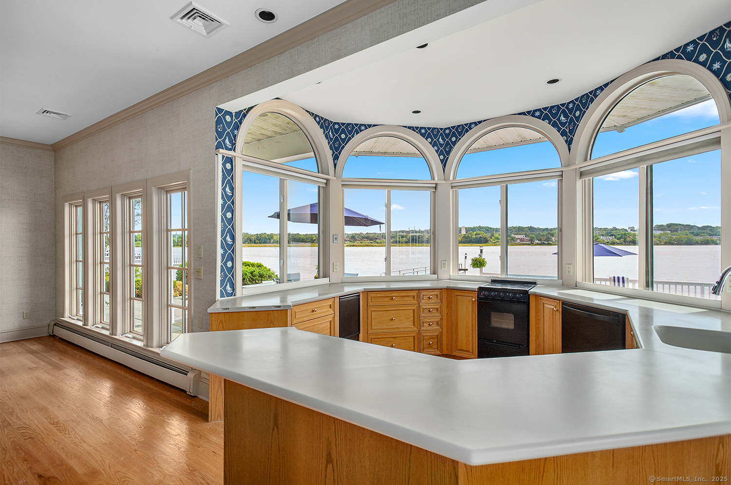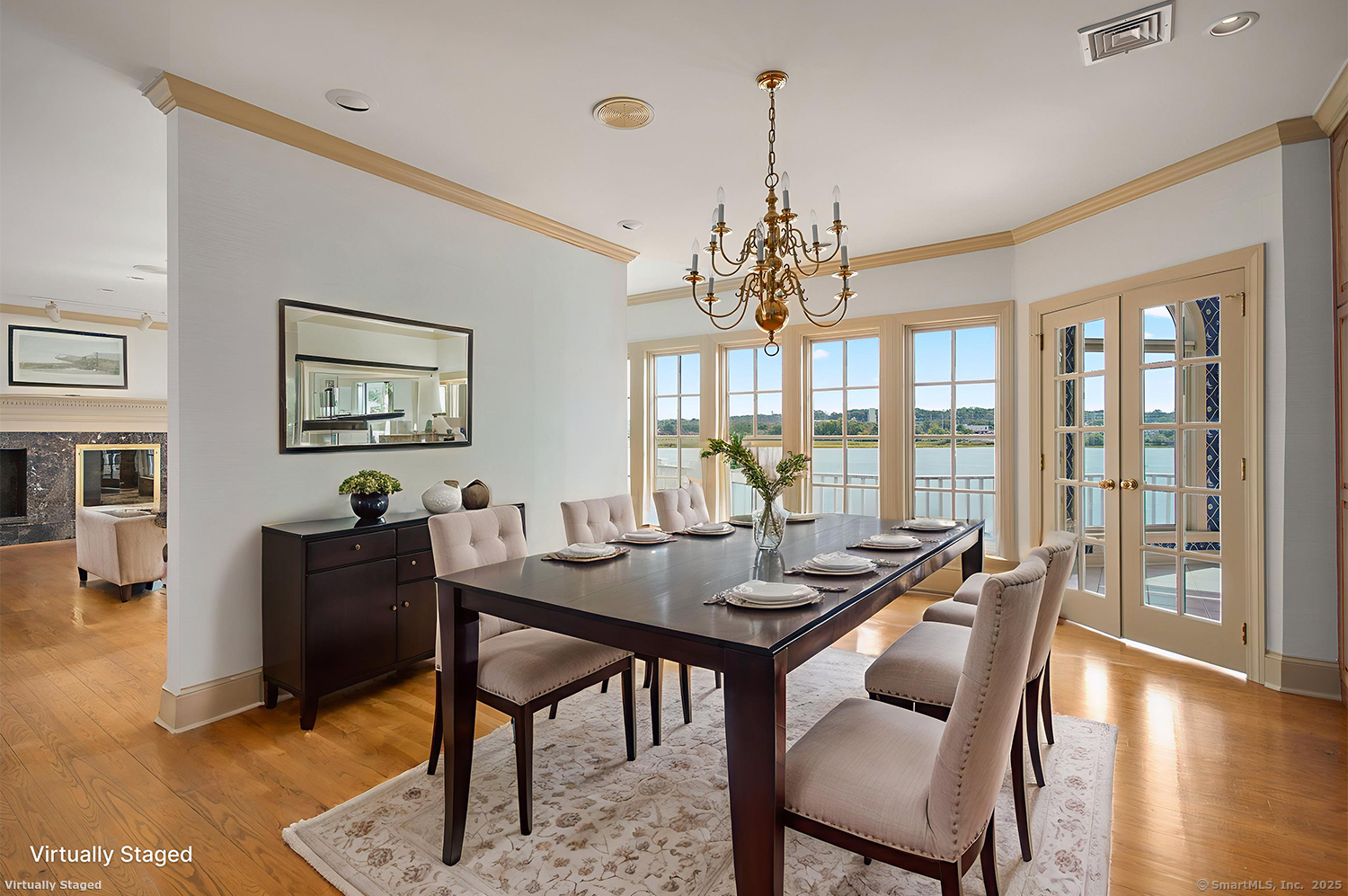 Welcome to this stunning waterfront retreat on the scenic Housatonic River, offering panoramic views, luxury, and comfort. Perfect for relaxing or entertaining, this home features 3 spacious bedrooms, 3.5 baths, and a finish able bonus room above the 2-car garage-ideal for a guest suite or office. Elevator to all three levels provides added convenience. A stone wall and gated entry lead to a paver driveway, setting the stage for what's inside. The main floor boasts a sunlit living room with a fireplace and deck overlooking the pool and river. The kitchen, dining room, family room, solarium, and home office all offer beautiful water views. The lower level is an entertainer's dream: a second kitchen, stone fireplace, sauna, steam room, Jacuzzi, two bedrooms, two full baths, and a gym. Walk out to your private pool, hot tub, and dock for direct river access. The entire upper level is dedicated to the luxurious primary suite with two walk-in closets, a cedar closet, fireplace, private balcony, and a spa-like en-suite bath. Whether hosting summer gatherings, enjoying quiet nights by the fire, or taking in the serene river views from nearly every room, this exceptional home offers the ultimate in waterfront living.