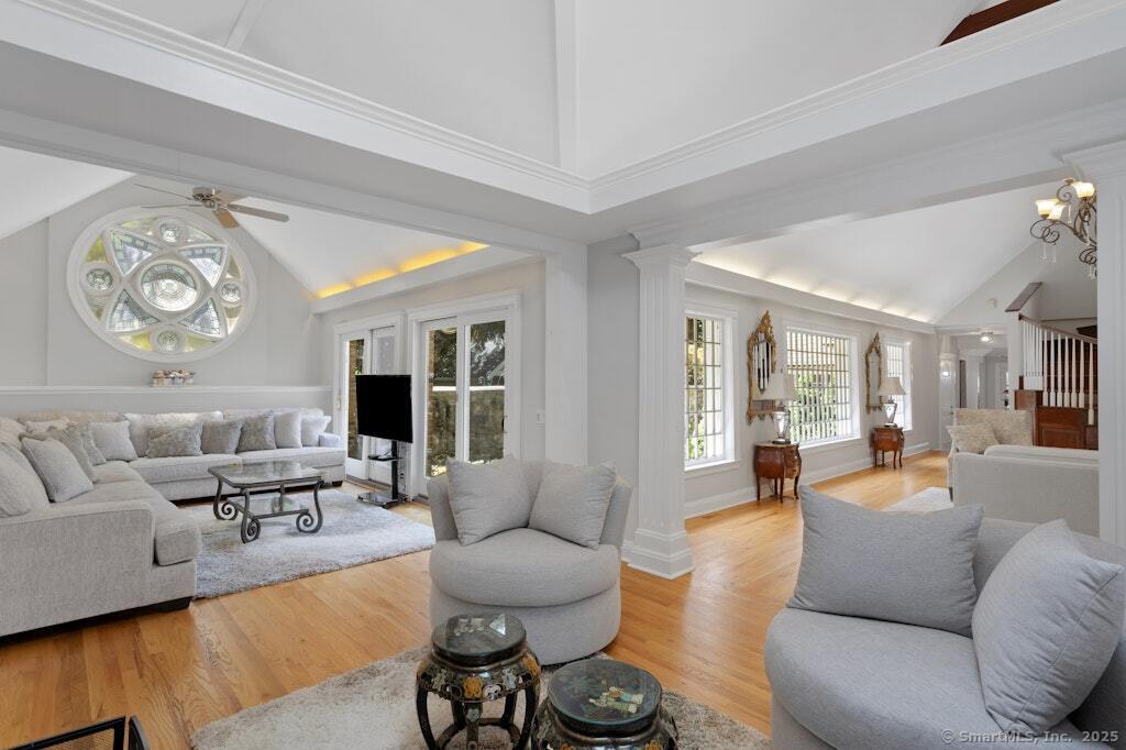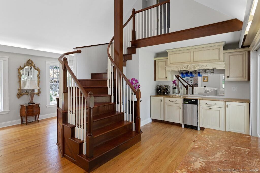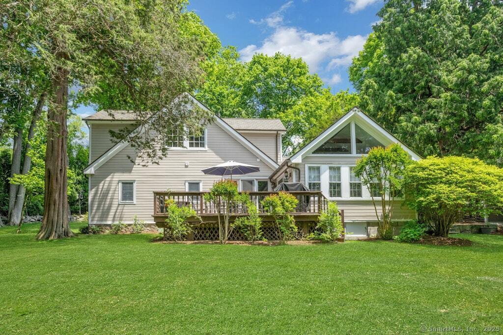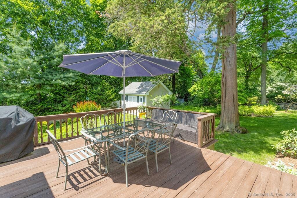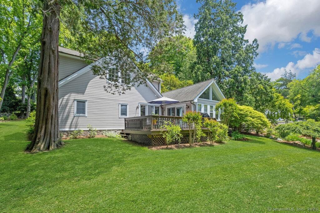 Don't miss this exceptional opportunity a beautifully crafted home that blends timeless charm with modern updates. Step inside to discover a custom white kitchen with premium finishes, complemented by stunning custom millwork and built-in features throughout the Situated on a beautiful landscaped .92-acre lot, this spacious 3-bedroom, 3.5-bath residence offers 3,200+ square feet of refined living space. The main level boasts two bedrooms, two full bathrooms, a powder room, and thoughtfully designed living spaces including a dining room, formal living room, and cozy family room - all with hardwood floors throughout. The private upper-level master suite features 5 closets including a large walk-in closet and a full en-suite bath, creating a peaceful retreat. Additional highlights include: Large deck, two-car carport with attic storage above, Detached storage shed, and landscaped grounds. Ideal layout for both everyday living and entertaining. located, a short walk to Whole Foods, Bulls Head shopping, restaurants, coffee shops, parks, houses of worship, and a quick drive to Metro North, I-95, and the Merritt. Offering AHS home warranty for buyer. Agent/owner.