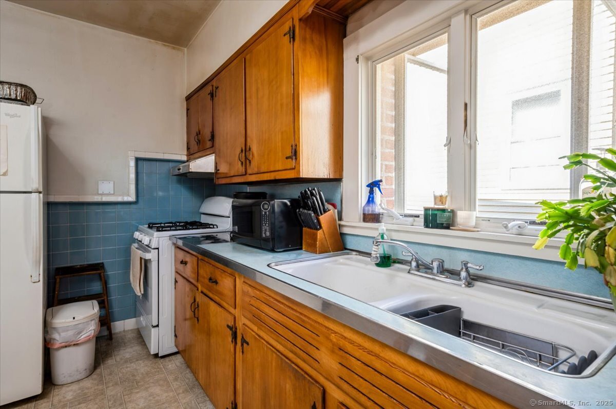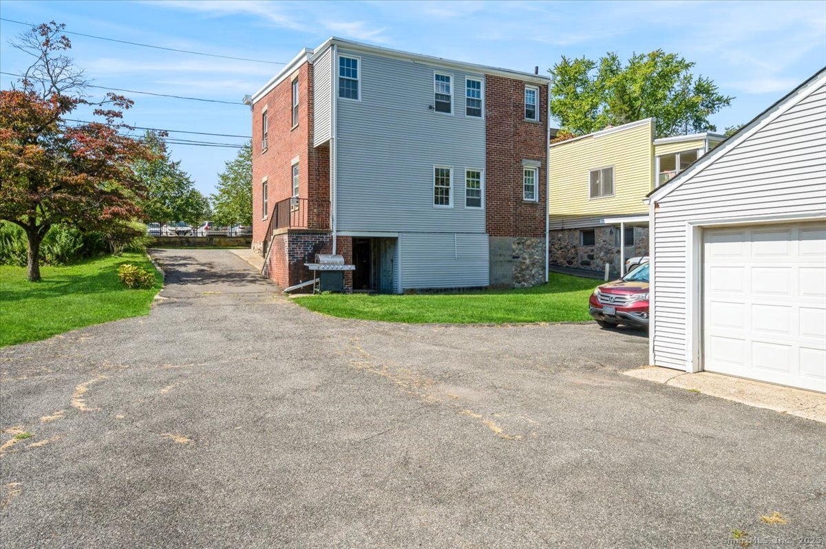 Opportunity Knocks! Well maintained Brick 2 family home with a detached 2 car garage. Great opportunity to expand or build on this .38 lot across from Stamford Hospital. The Large drive way can accommodate 7 or 8 cars. Each unit has 2 bedrooms and one bath. Separate electric and gas meters. Unit 2 unit has the washer and dryer in the unit. Unit 1 has the washer in the unit and the dryer in the basement. The basement has two sides and room for storage. Both units have gas heat and hot water tanks that are one year old. There is also an attached shed. Please do your due diligence with the extra land before scheduling an appointment. 3 hour notice. Both tenants have been there a very long time and pay 1200 per month each.