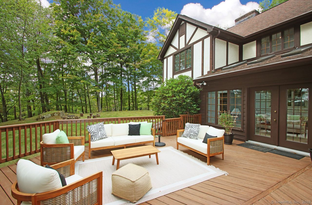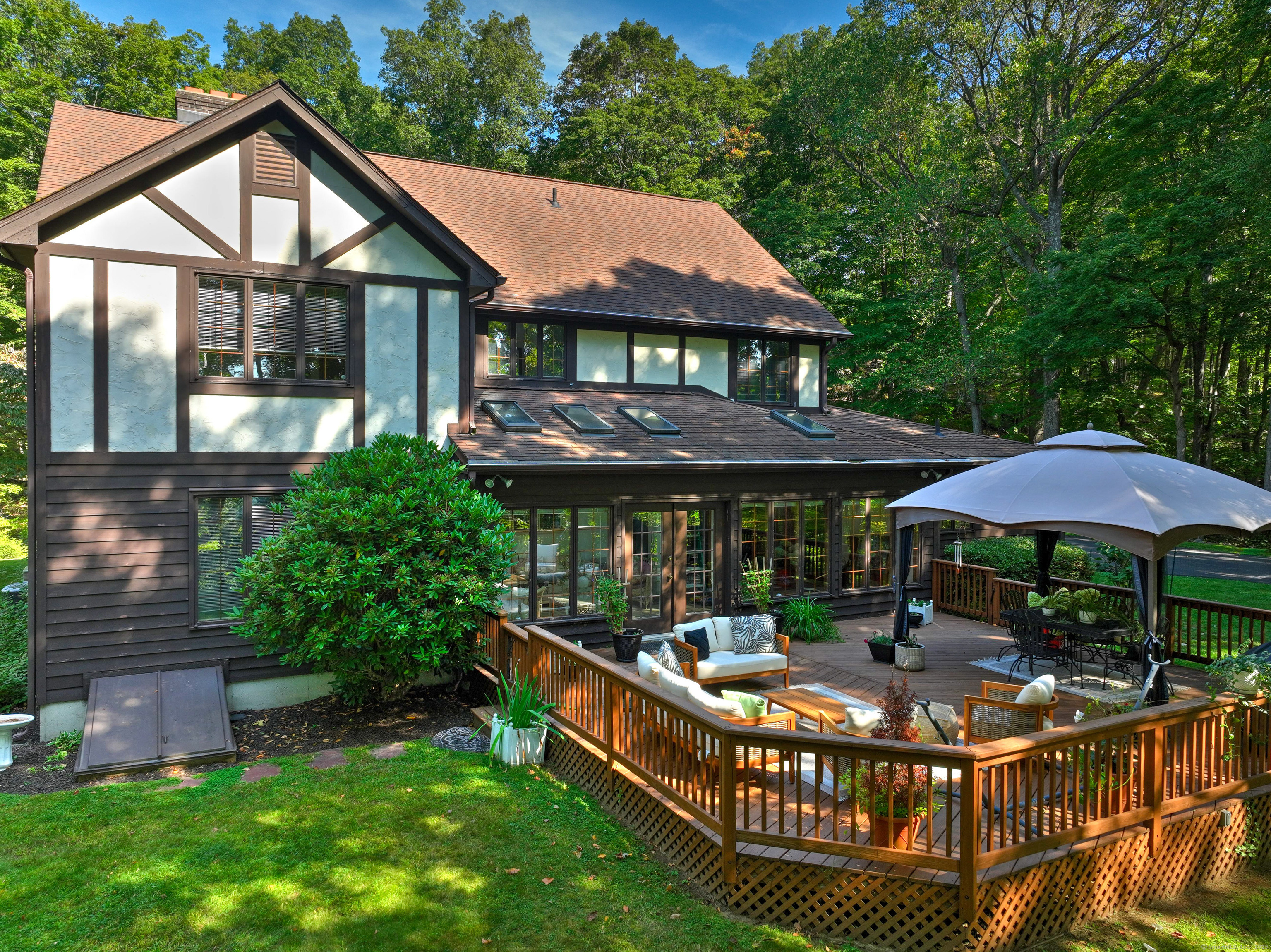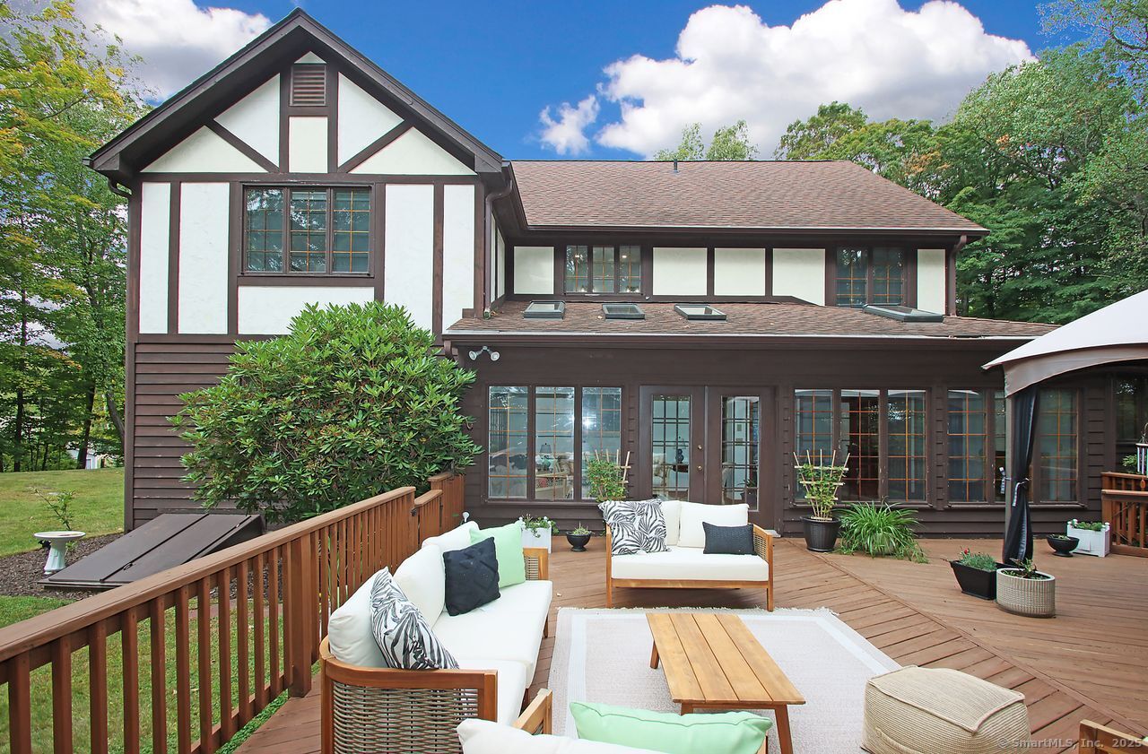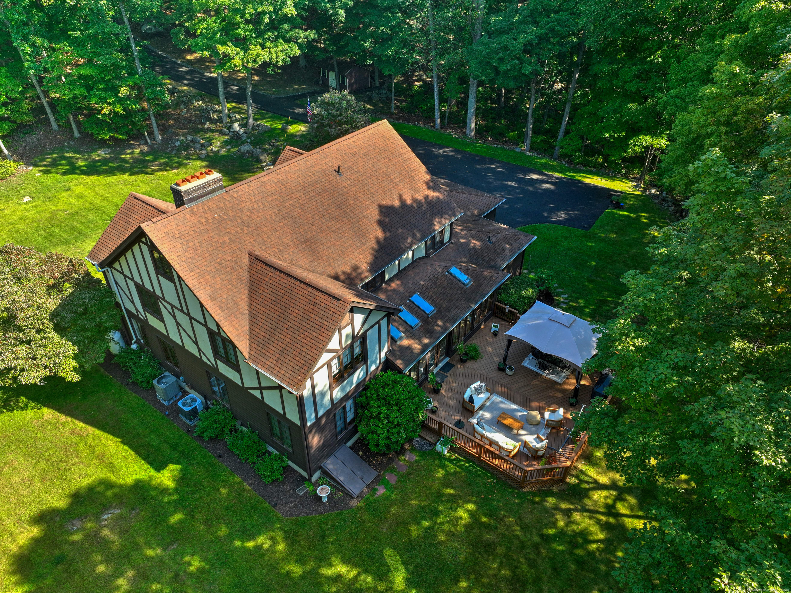 A rare opportunity to own this stately Tudor in one of the area's most distinguished subdivisions, Wintergreen Hill Estates. Set on a private 2.44-acre parcel- the largest in the community- it offers timeless architecture, elegance, and value. A newly paved driveway creates a gracious approach, leading to beautifully landscaped grounds and sweeping lawn. A grand welcoming foyer, where rooms flow seamlessly from the formal living and dining areas to the well equipped expansive kitchen, with stainless steel appls and dble ovens, yet ready for your personal updates. The spacious family room has recessed lighting and anchored by one of three working fireplaces. A four-season room with walls of windows frames the scenic views of nature and opens to the expansive, newly painted deck, perfect backyard oasis for outdoor entertaining. Upstairs, the stunning new primary suite features a spa-like retreat with soaking tub, glass shower, double vanity, and walk-in closet. Three additional generously sized bedrooms, one with its own fireplace, share the refreshed hall bath. Bonus features include freshly painted rooms, a first-floor laundry room, oversized two-car garage, abundant storage in the unfinished basement, new c/a, new heat pump, new hot water heater, new well tank and pump and over 3200 sqft of living space. With its superb location near trendy Mill Plain district, famed Richter Golf Course and easy access to major commuter routes, this is the perfect place to call home