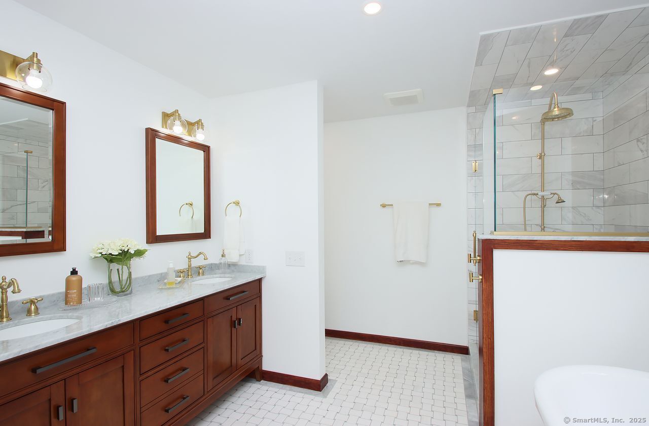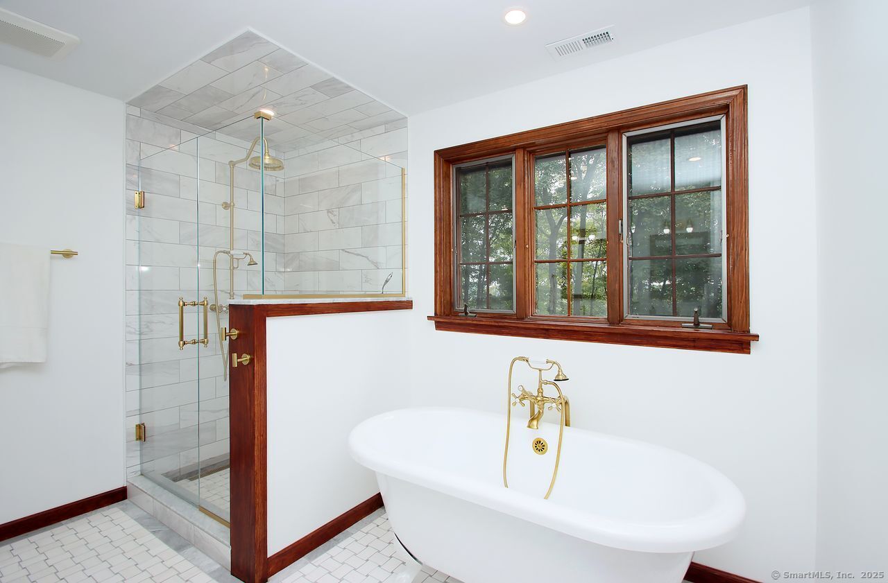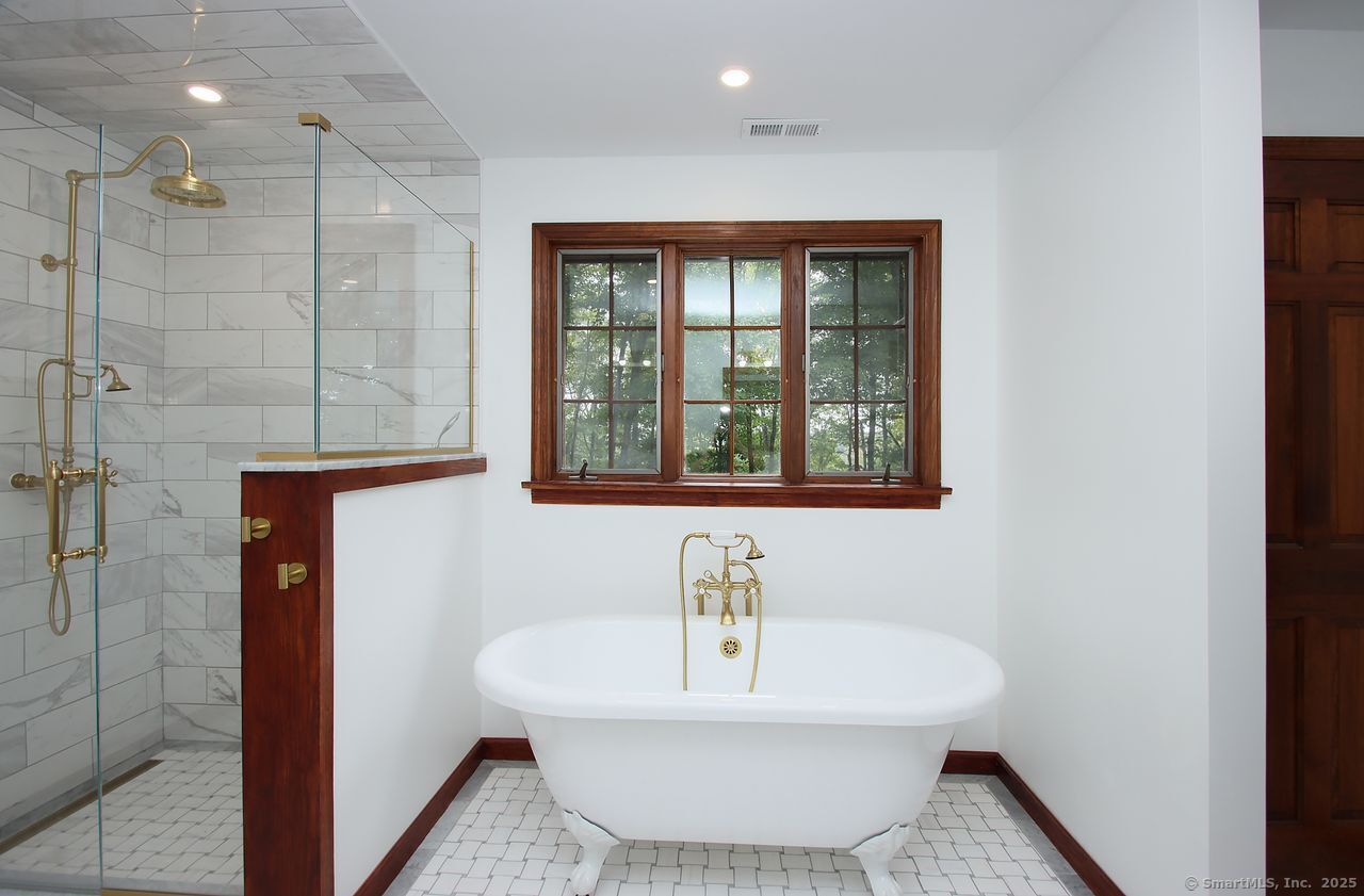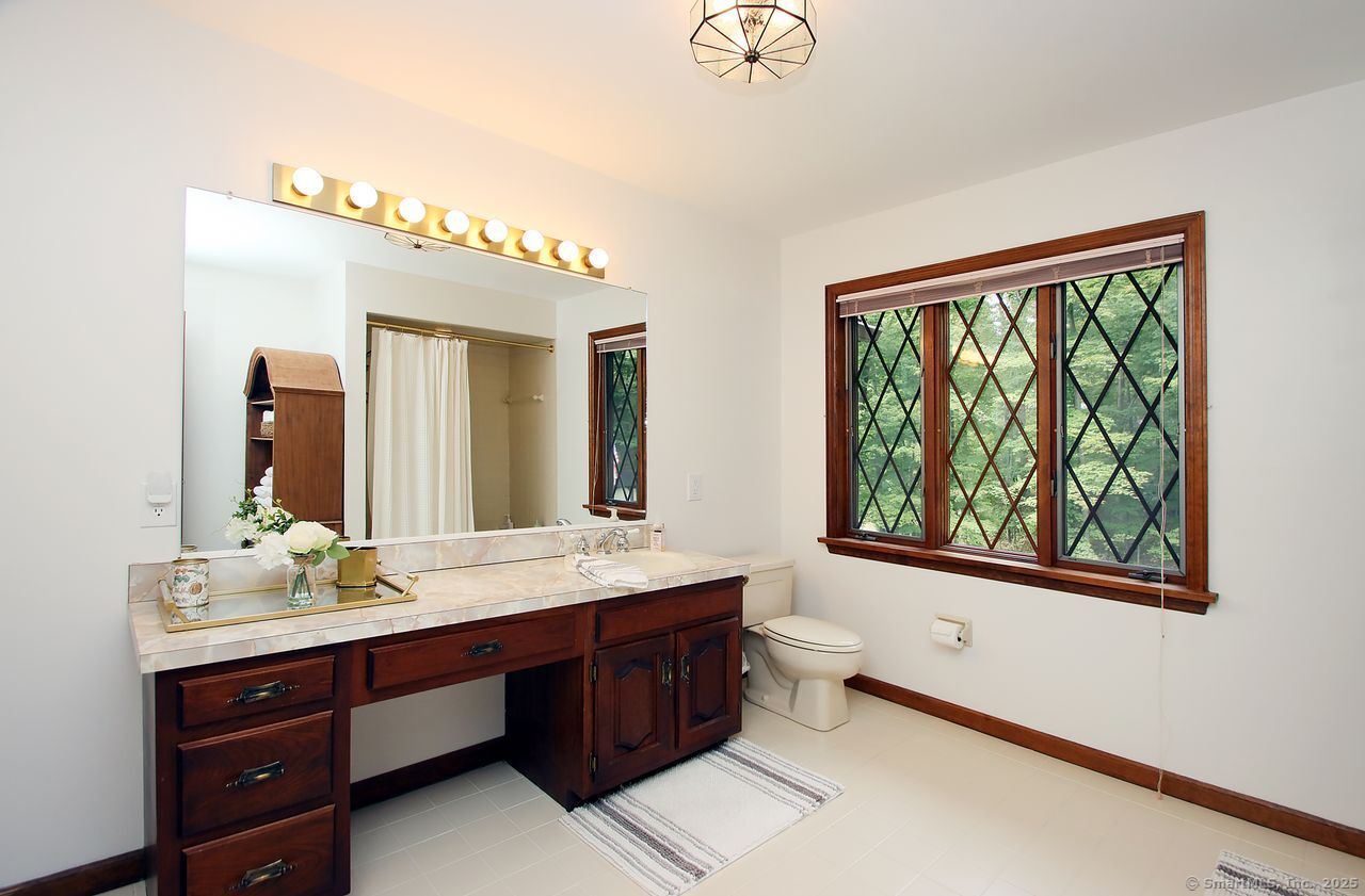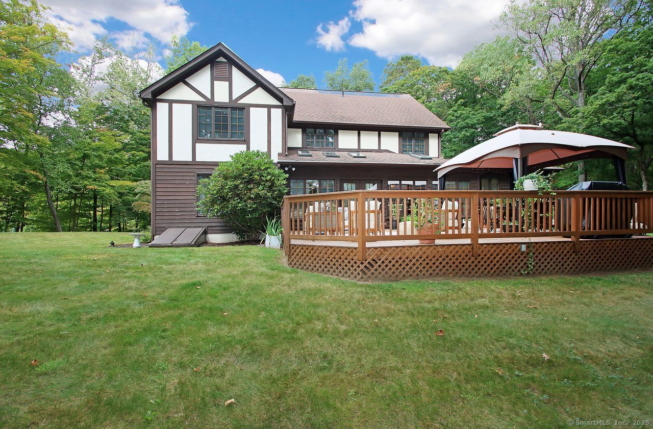 A rare opportunity to own this stately Tudor in one of the area's most distinguished subdivisions, Wintergreen Hill Estates. Set on a private 2.44-acre parcel- the largest in the community- it offers timeless architecture, elegance, and value. A newly paved driveway creates a gracious approach, leading to beautifully landscaped grounds and sweeping lawn. A grand welcoming foyer, where rooms flow seamlessly from the formal living and dining areas to the well equipped expansive kitchen, with stainless steel appls and dble ovens, yet ready for your personal updates. The spacious family room has recessed lighting and anchored by one of three working fireplaces. A four-season room with walls of windows frames the scenic views of nature and opens to the expansive, newly painted deck, perfect backyard oasis for outdoor entertaining. Upstairs, the stunning new primary suite features a spa-like retreat with soaking tub, glass shower, double vanity, and walk-in closet. Three additional generously sized bedrooms, one with its own fireplace, share the refreshed hall bath. Bonus features include freshly painted rooms, a first-floor laundry room, oversized two-car garage, abundant storage in the unfinished basement, new c/a, new heat pump, new hot water heater, new well tank and pump and over 3200 sqft of living space. With its superb location near trendy Mill Plain district, famed Richter Golf Course and easy access to major commuter routes, this is the perfect place to call home