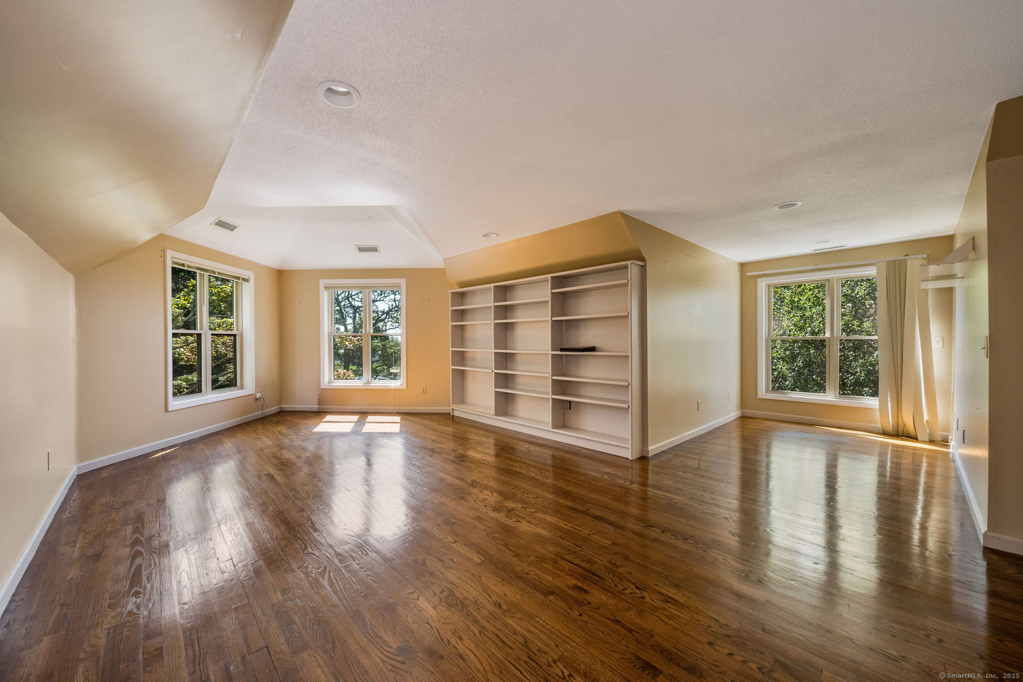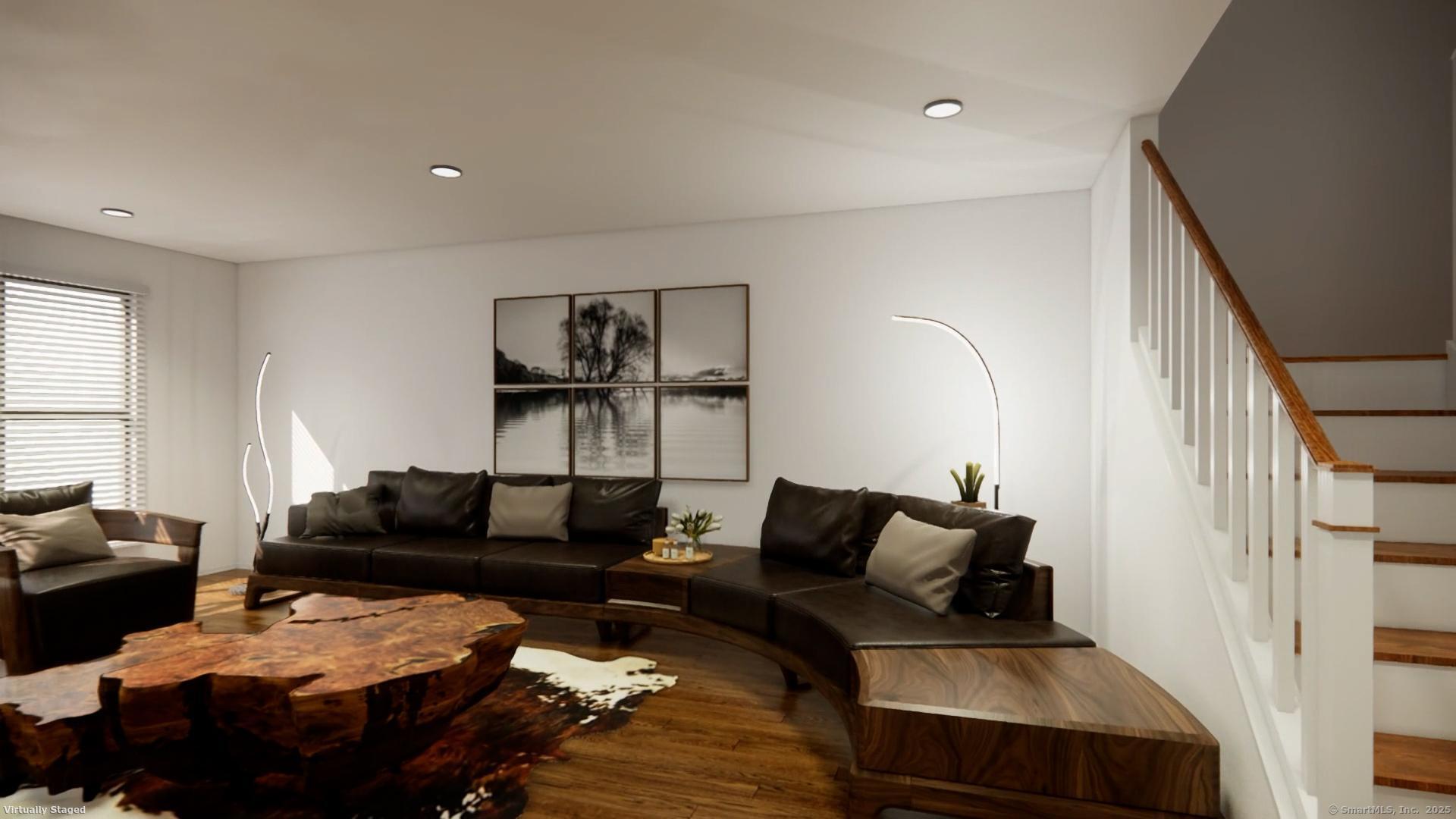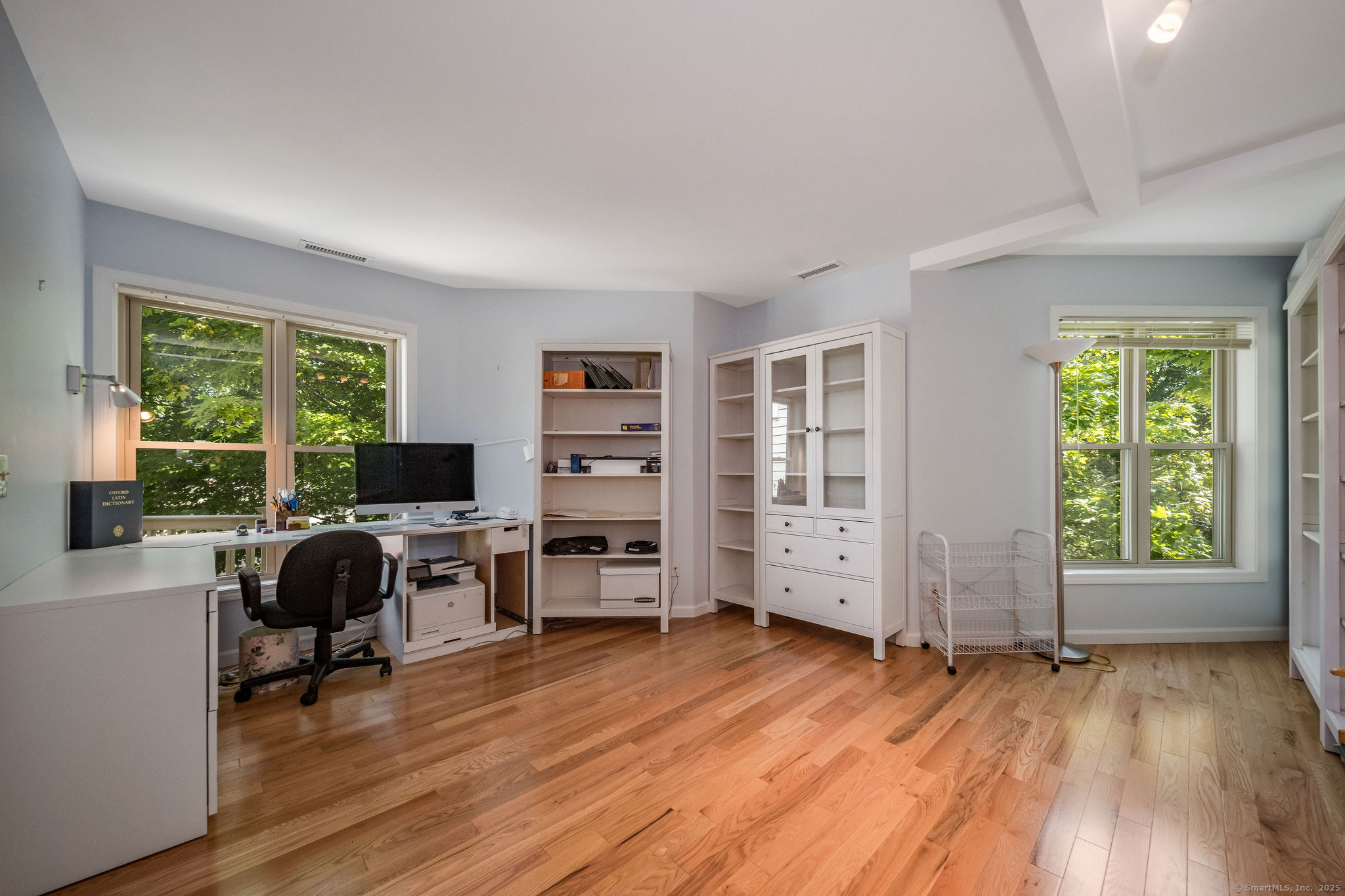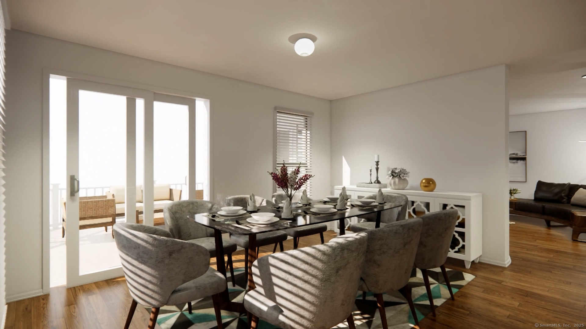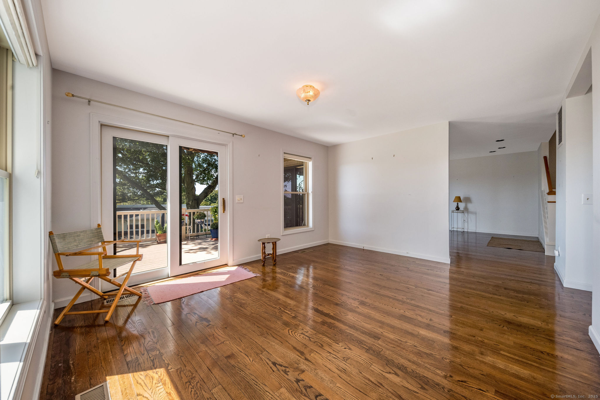 Stunning waterfront end unit with panoramic southerly views over the Branford River! This sun-filled townhome in a thoughtfully designed community features varied ceiling heights and unique vistas throughout. The renovated eat-in kitchen, dining room, and living room all showcase water views, while the living room adds a fireplace and deck access for seamless indoor-outdoor living. Thoughtful layout includes a first-floor guest bedroom and spectacular south-facing primary suite with river views, fireplace, private deck, and abundant built-ins. Two additional guest bedrooms and full bath complete the second floor. The third level offers a generous library/office/entertainment room with hardwood floors and potential for an additional bedroom. Lower level provides two flexible rooms perfect for office, media, crafts, or home gym. Two-car garage with ample storage. Association amenities include a renovated clubhouse, solar-heated pool, tennis/pickleball court, and kayak storage with river access. Prime location minutes from Branford Train Station, town center, multiple marinas, and Foote Park. Just 15 minutes to Yale, 75 miles to NYC. See link for rendered video.
