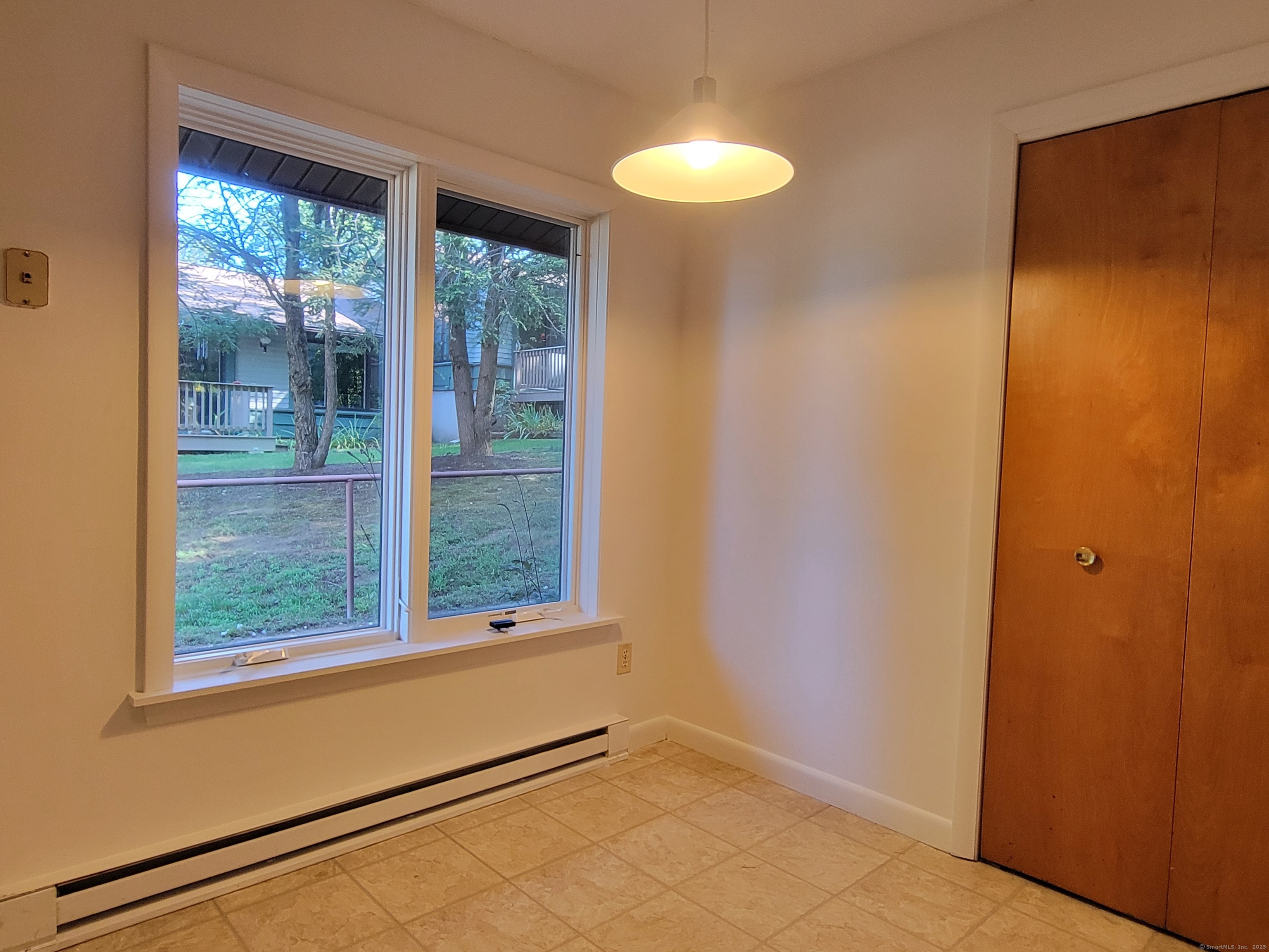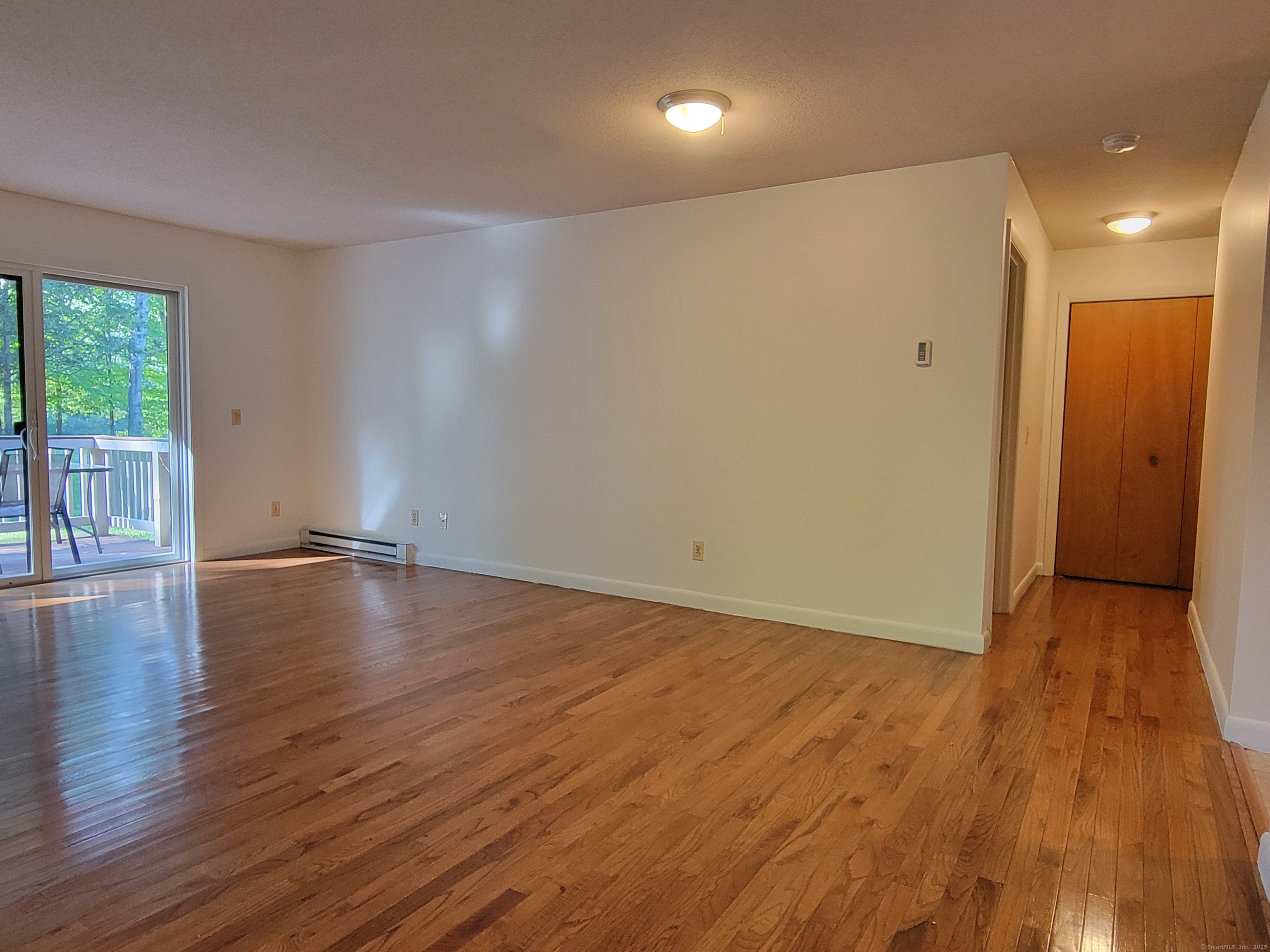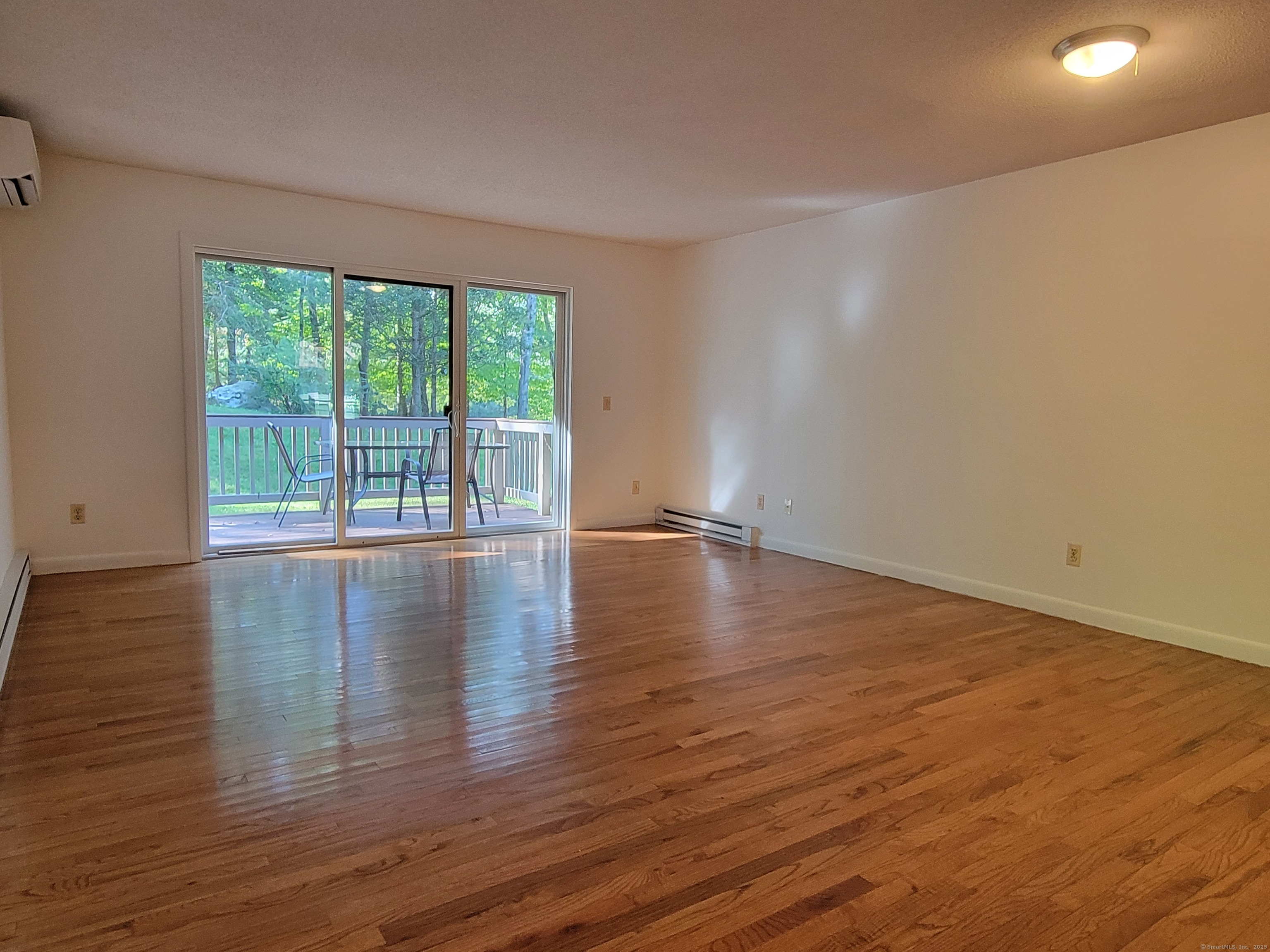 Available end-unit at Glen Ridge Cooperative, an active 55+ community conveniently located near downtown Storrs offering shopping, restaurants, and health facilities, as well the town community center and senior center. This is a single-level ranch with no basement that has 1 bedroom and 1 bath. There are hardwood floors throughout the unit. The interior was recently painted with a neutral color. There are newer windows and a triple glass sliding door to the ground level deck with composite decking and has railings for plant boxes. The spacious main living area is a combination living and dining room. The bedroom has a large closet and window facing the back yard. At the end of the short hallway is the full bath with tub/shower and linen closet. The laundry is easily accessible in a closet in the hallway. Two newer heat pump/mini-split units for heat and cooling were installed 3 years ago. This complex has a club house and outdoor patio for events. There is public transportation available. This unit has an assigned 1-car detached garage. HOA fees of $619/month include water, sewer, trash, grounds maintenance, snow removal, and on-site management, plus the property taxes of $198/month for a total monthly cost of $817. Enjoy the perks of living in a community that takes the work out of owning a home to free up more time for life's joys!