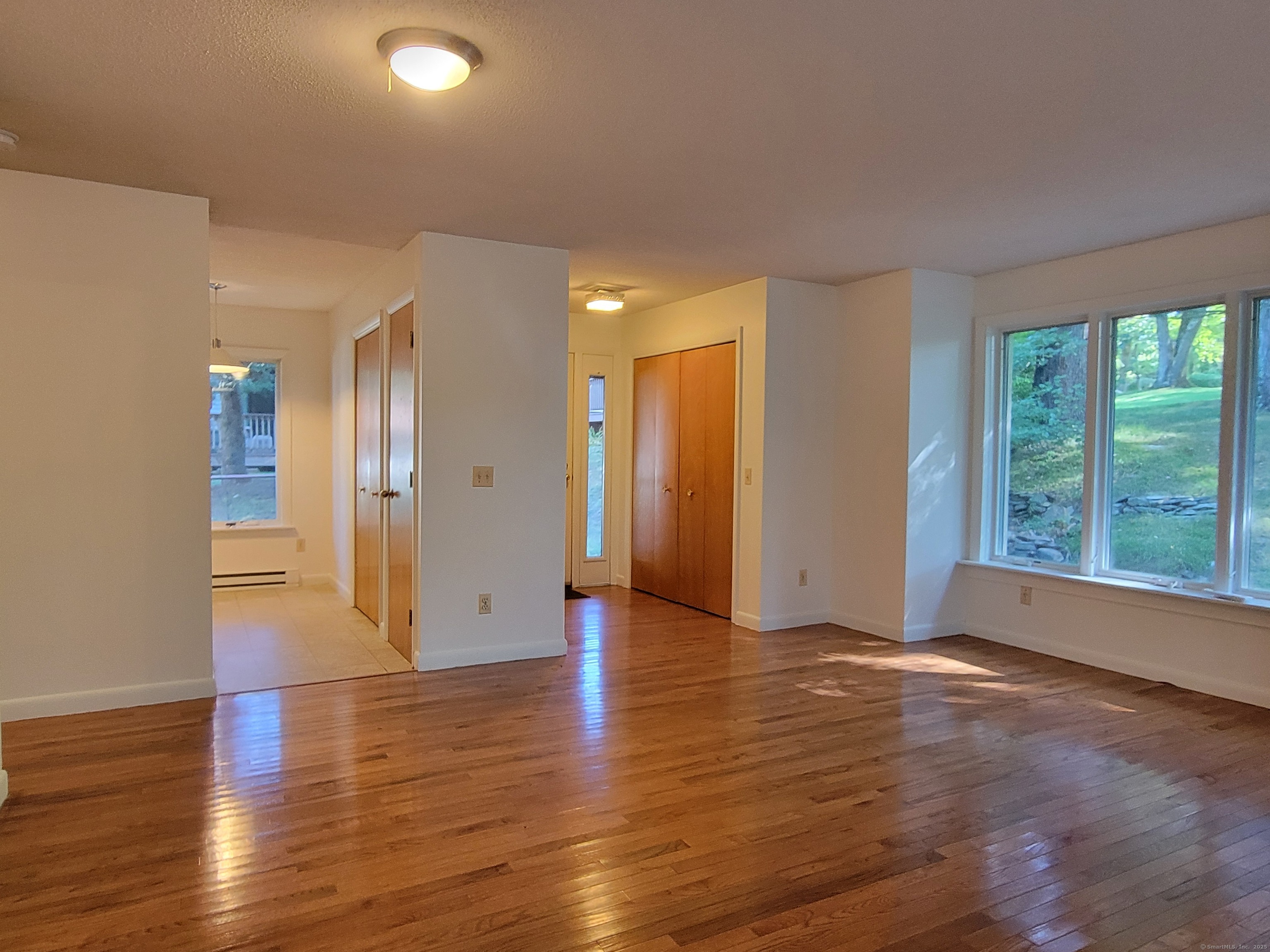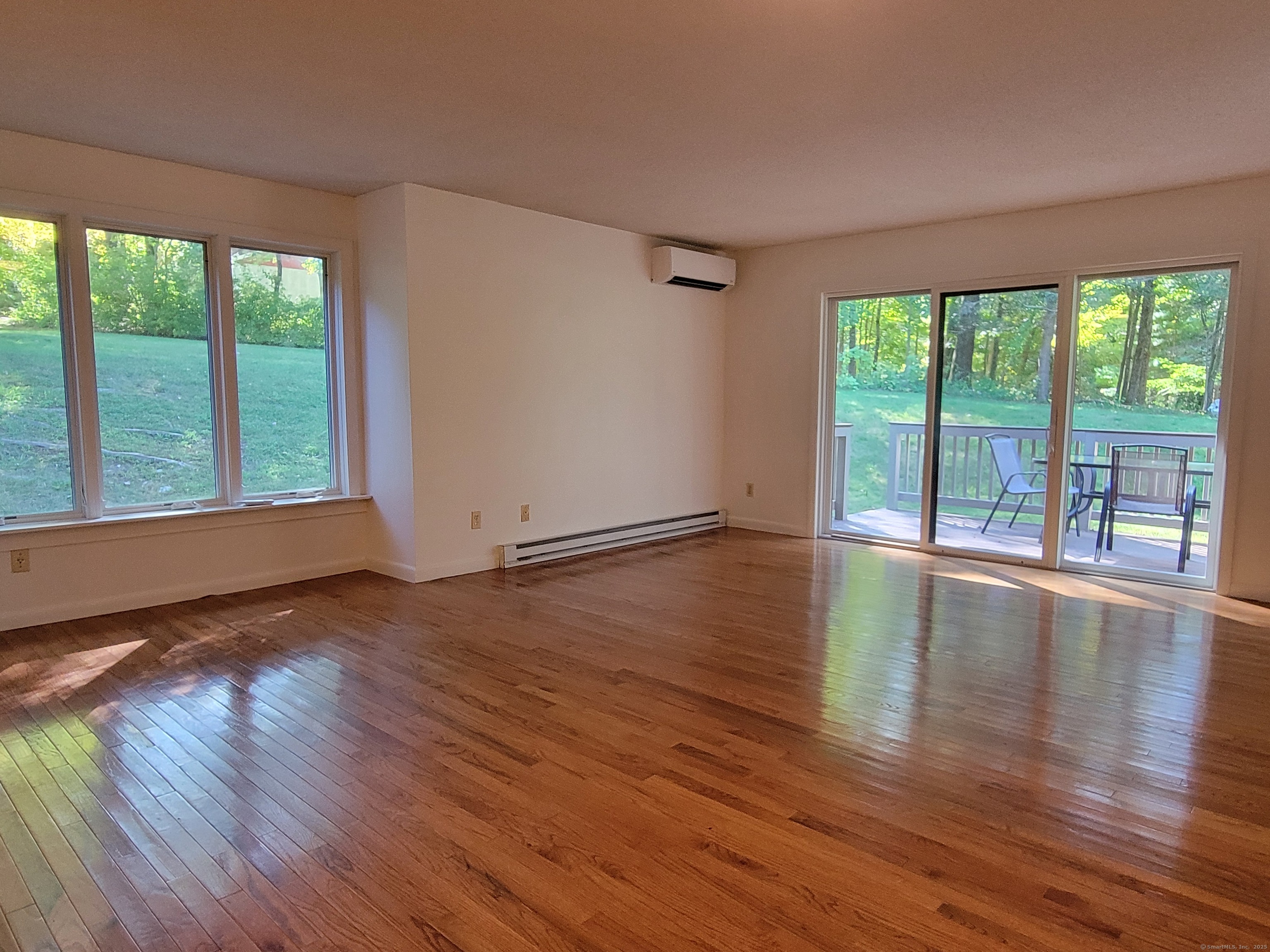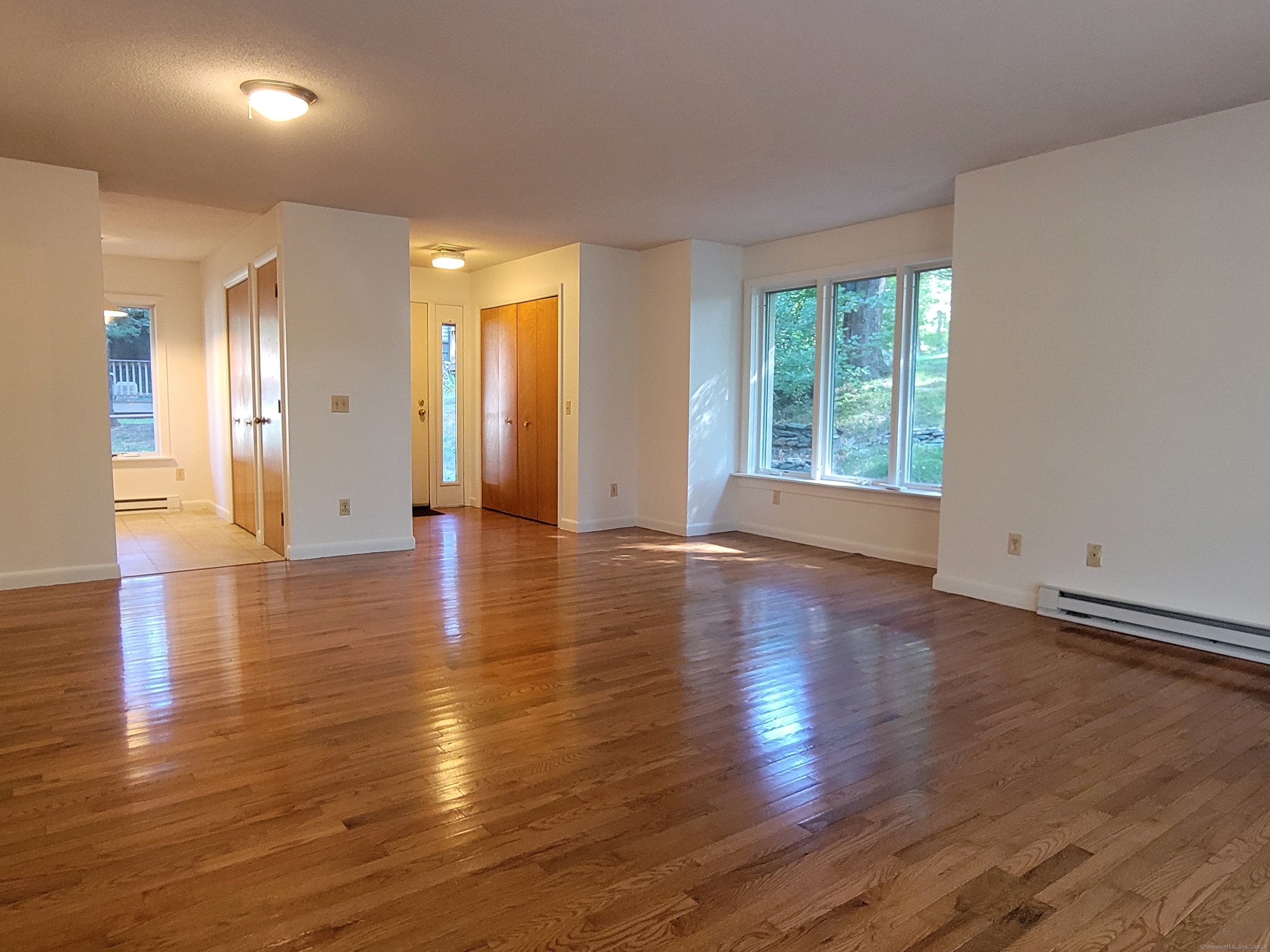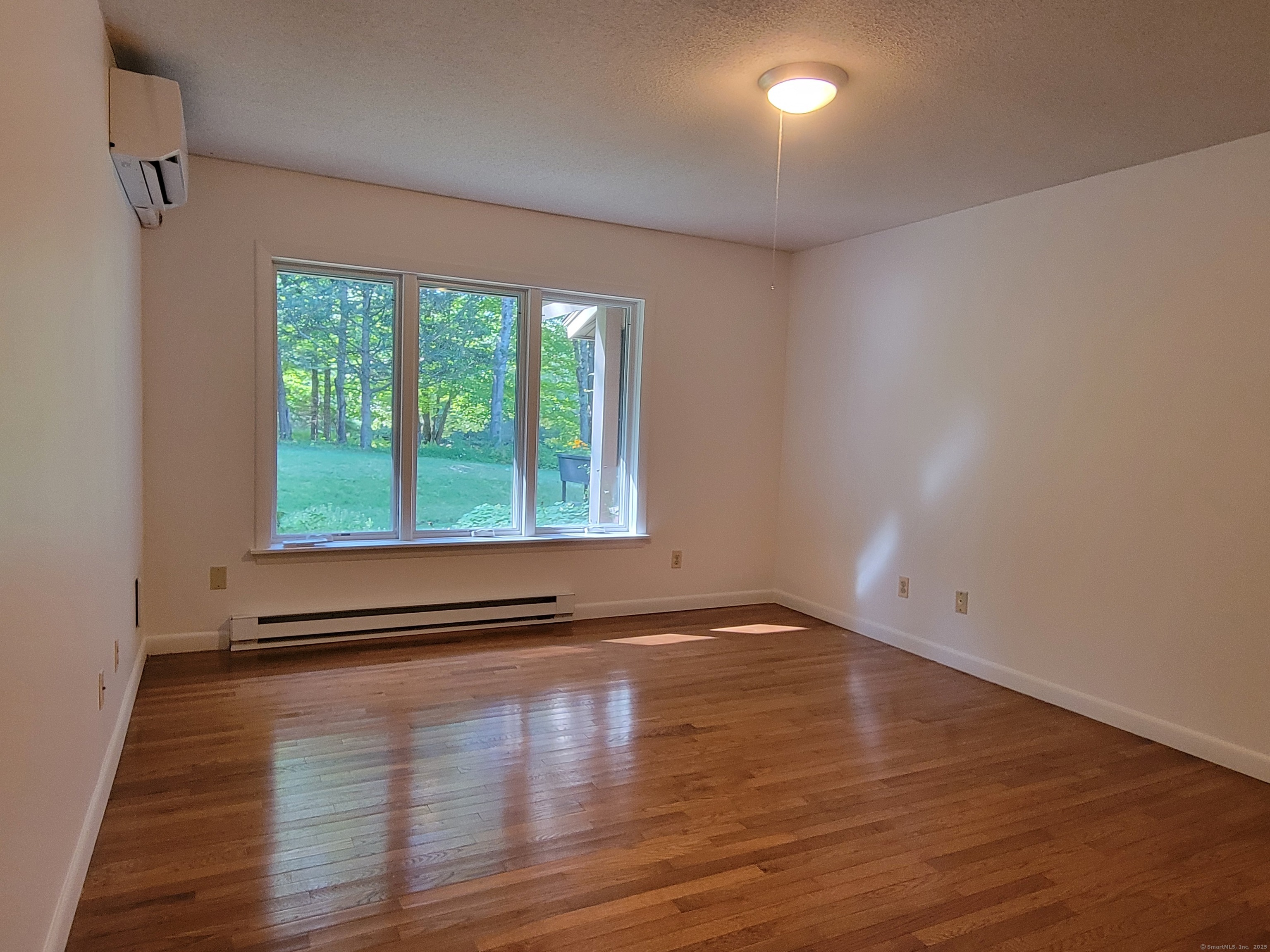 Available end-unit at Glen Ridge Cooperative, an active 55+ community conveniently located near downtown Storrs offering shopping, restaurants, and health facilities, as well the town community center and senior center. This is a single-level ranch with no basement that has 1 bedroom and 1 bath. There are hardwood floors throughout the unit. The interior was recently painted with a neutral color. There are newer windows and a triple glass sliding door to the ground level deck with composite decking and has railings for plant boxes. The spacious main living area is a combination living and dining room. The bedroom has a large closet and window facing the back yard. At the end of the short hallway is the full bath with tub/shower and linen closet. The laundry is easily accessible in a closet in the hallway. Two newer heat pump/mini-split units for heat and cooling were installed 3 years ago. This complex has a club house and outdoor patio for events. There is public transportation available. This unit has an assigned 1-car detached garage. HOA fees of $619/month include water, sewer, trash, grounds maintenance, snow removal, and on-site management, plus the property taxes of $198/month for a total monthly cost of $817. Enjoy the perks of living in a community that takes the work out of owning a home to free up more time for life's joys!