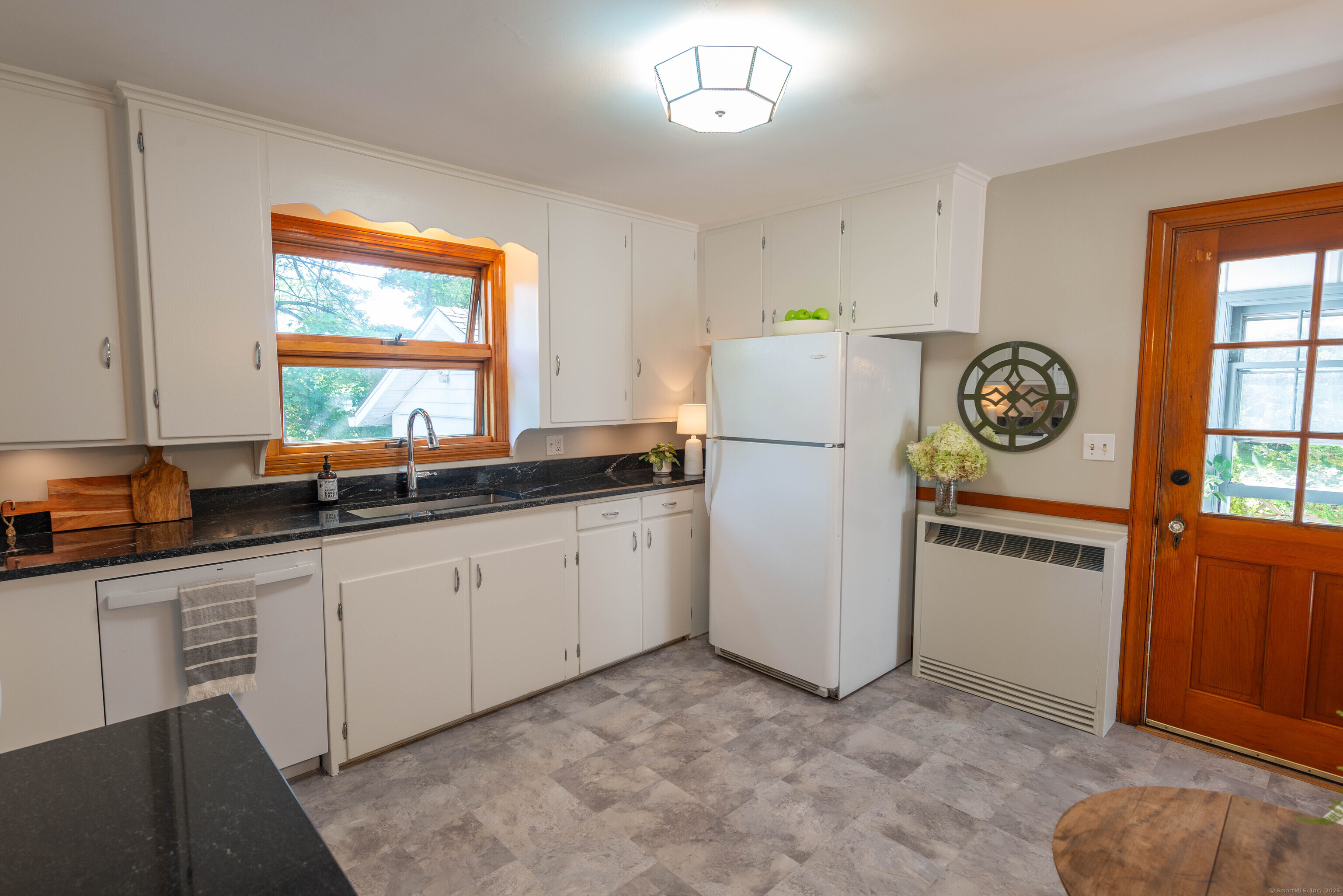 This adorable 2-3 bedroom, 1 bath Cape is filled with charm and thoughtful updates! Freshly painted throughout, the flexible floor plan offers two bedrooms plus a dining room or home office-or easily convert for a third bedroom if needed. The kitchen shines with brand-new countertops, a modern sink, newly added dishwasher, and a new microwave. The full bathroom has been completely renovated, giving the home a stylish, like-new feel. Upstairs provides 2 bedrooms with cozy nooks perfect for relaxation or work-from-home, along with ample storage and built ins. The partially finished basement offers even more potential, including a versatile room with a sink and small refrigerator, ready for your personal finishing touches. Conveniently located close to the shops and restaurants downtown, just minutes from Charlotte Hungerford Hospital, and a short drive to Litchfield Center, this Cape is the perfect blend of comfort, convenience, and move-in ready appeal.
