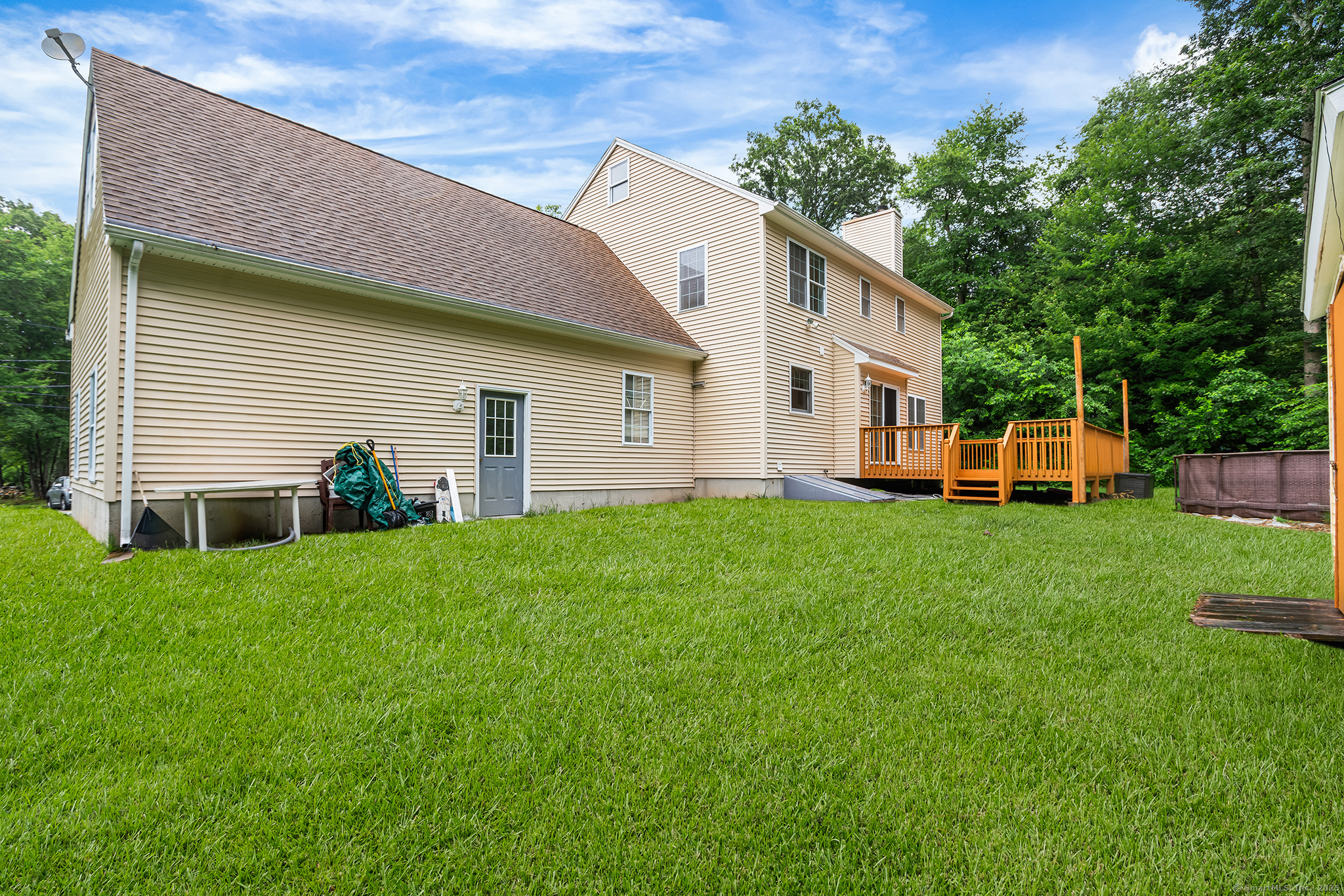 You CAN have it all! The ideal combination of space, versatility, and value all blend seamlessly in this massive, move-in ready home. This is one of the LARGEST single families to hit the market in Ledyard! A cheery farmer's porch welcomes you in to this impeccably maintained home with neutral tones and perfectly placed windows throughout. With 6+ BRs & additional flex spaces, the floorplan offers incredible options for multi-generational living, home occupation / WFH (plenty of parking), and so much more! On the main level, the front facing living & dining rooms are sunsplashed with gleaming hardwood floors. The kitchen opens to a fireplaced family room spanning the entire rear - plenty of room to build out your dream heart of the home! Hall w spacious pantry closets lead to a finished space with both front and rear entry - ideal for receiving clients or office for a home business! FULL bath rounds out 1st fl. Upstairs features 5 wonderfully sized rooms, all immaculately well-lit w hardwood floors and excellent closet space. Primary w WIC & double vanity ensuite. Hall bath also w double vanity. 2 add'l BRs in walk-up finished attic. Lower level feat new LVT flooring with space for the perfect media room, playroom, or den while still maintaining excellent storage! Expansive corner lot w large flat rear yard w XL entertaining deck & large storage shed. Attached 2 car garage, central air, FHA heat. Truly a rare opportunity to build equity in a fabulous neighborhood!